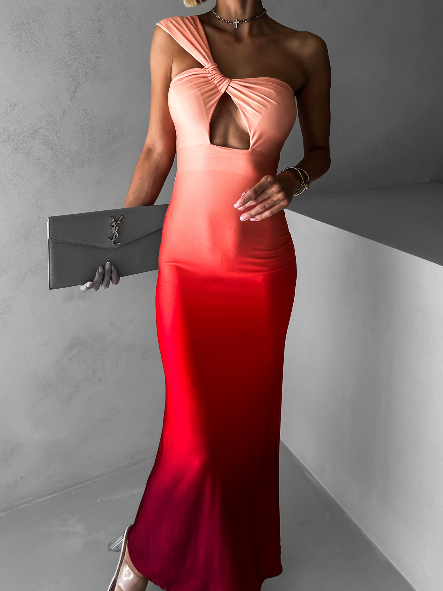Oranžové ombre šaty RITTA přes jedno rameno Velikost: ONESIZE