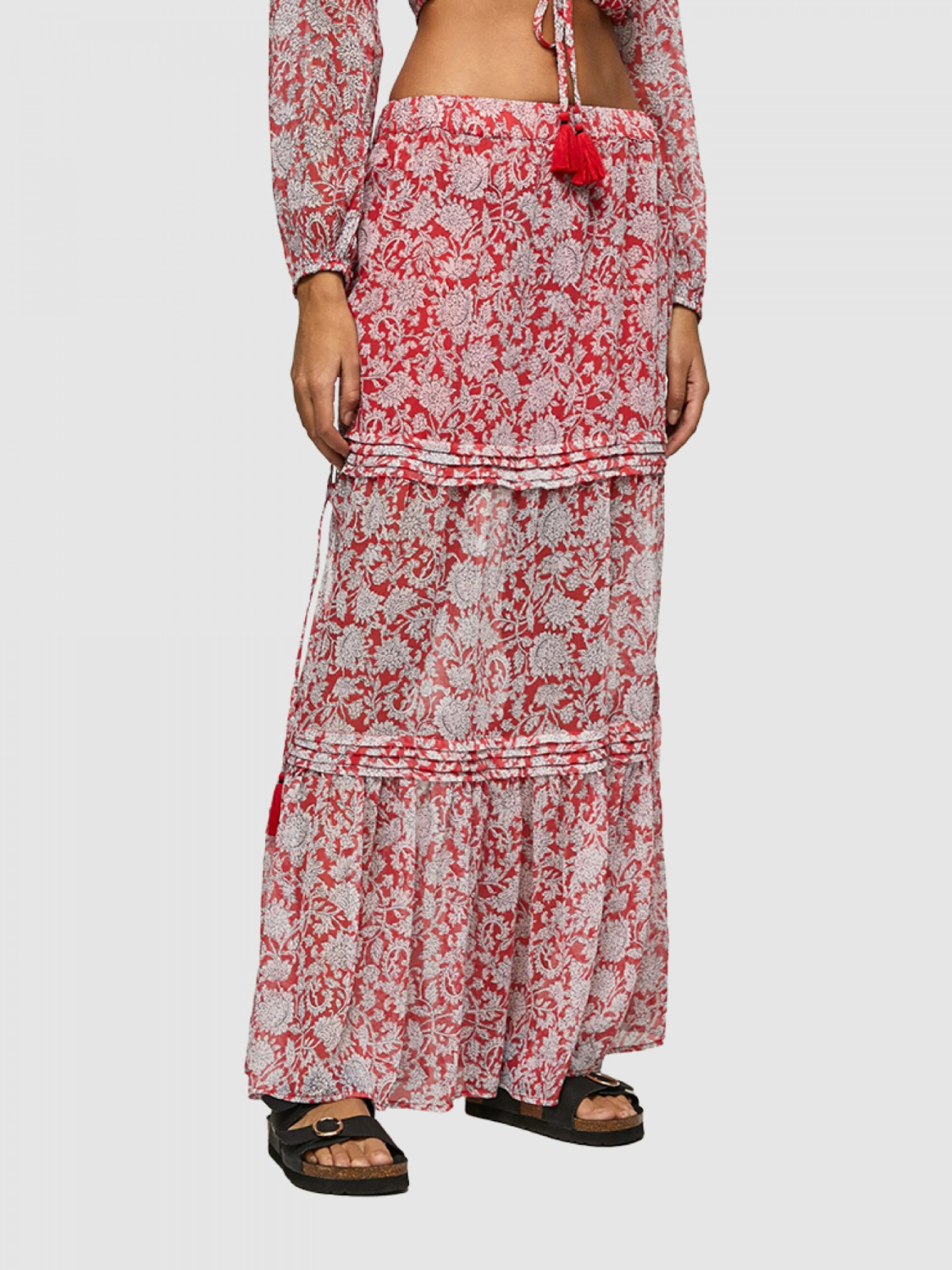Dámská červenobílá vzorovaná dlouhá sukně od Pepe Jeans.Materiál:100% polyesterStřih:Regular Fit