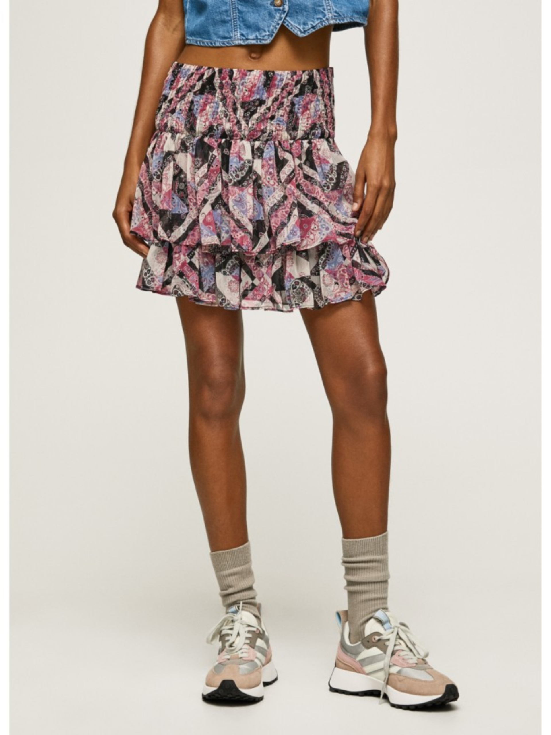 dámská vzorovaná volánová sukně Pipa od Pepe Jeans.Sukně má zapínání na zip.Materiál:100% polyester