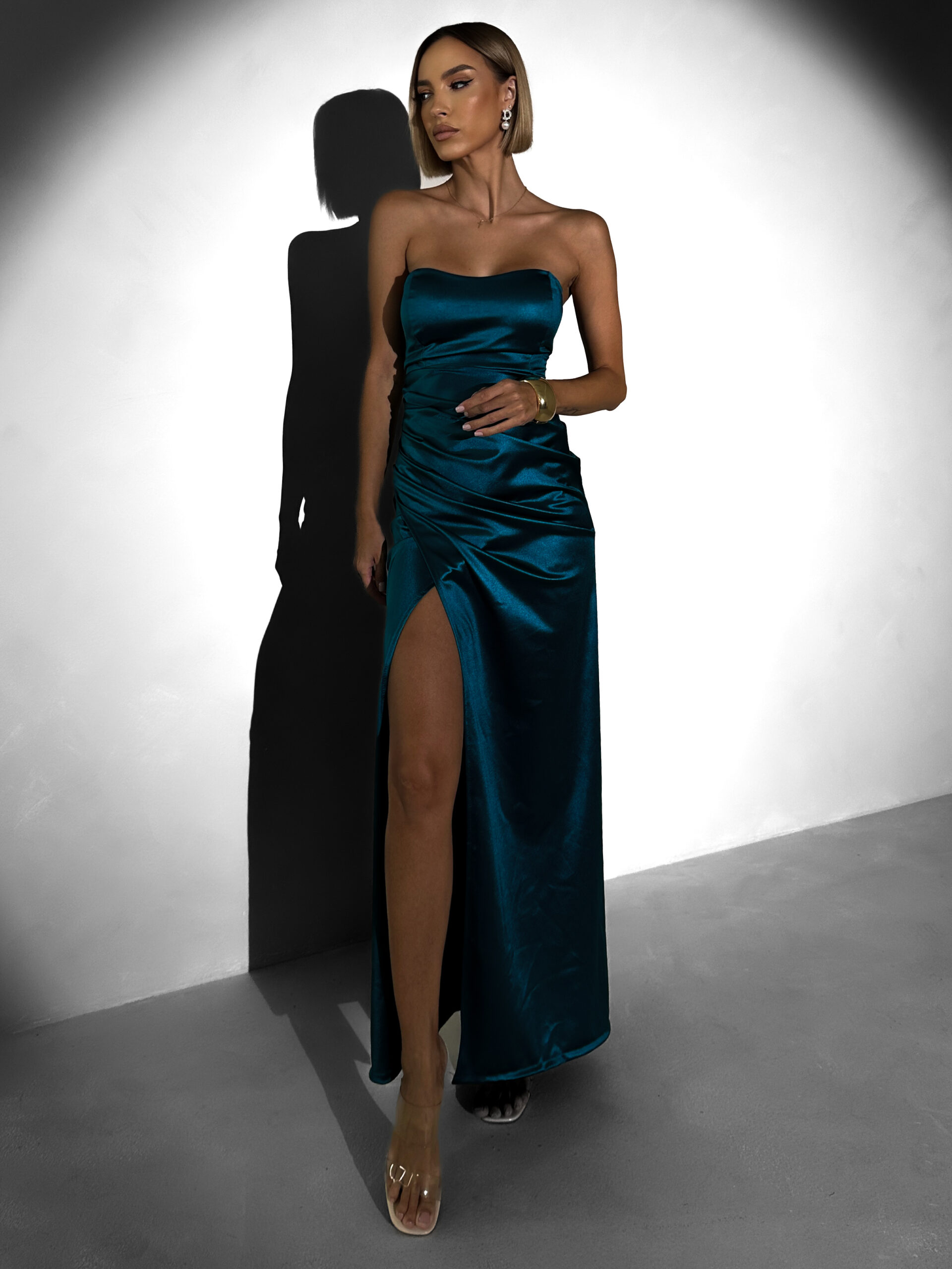 Petrolejové společenské korzetové dlouhé šaty KARLOT Velikost: ONESIZE