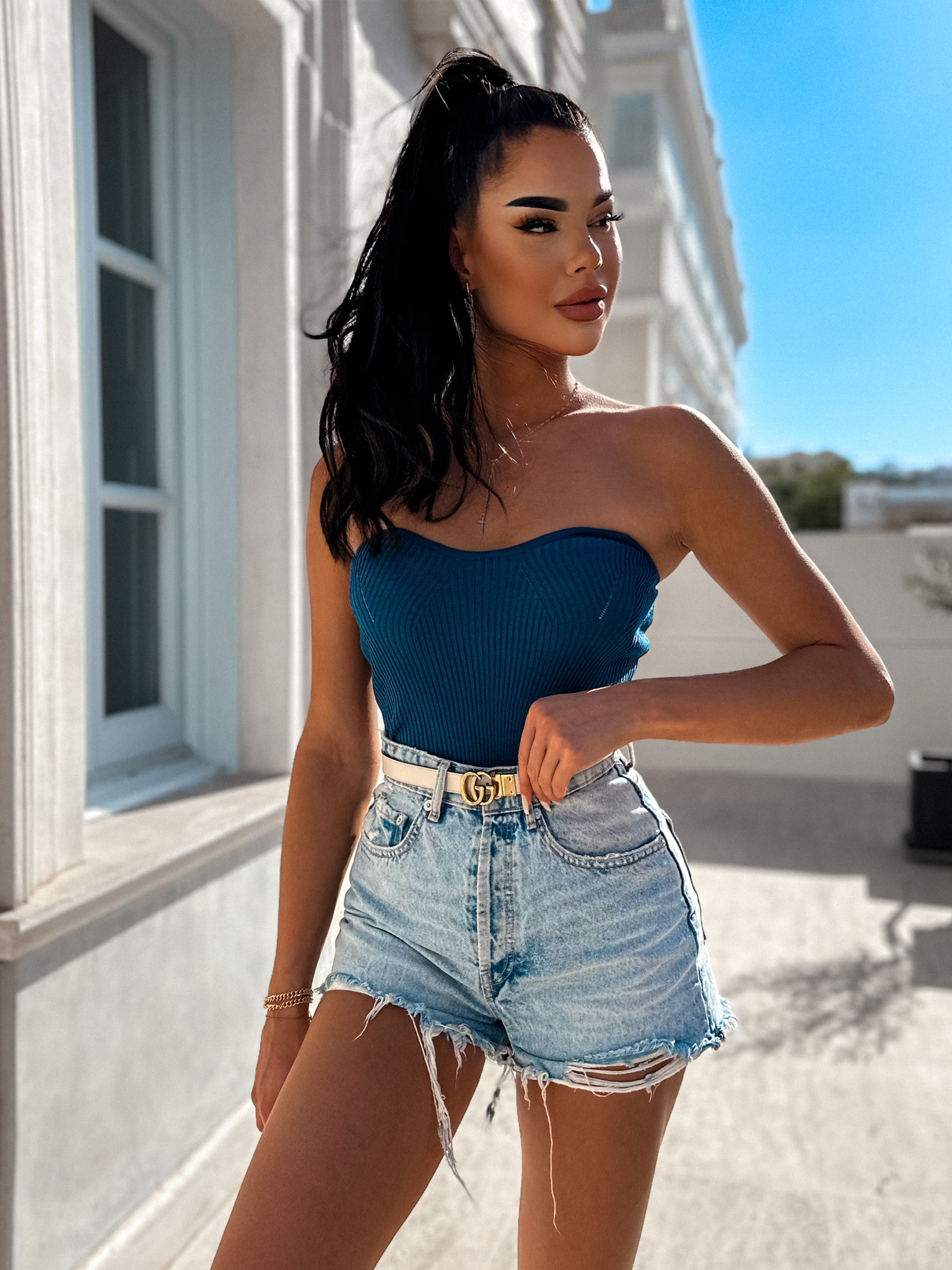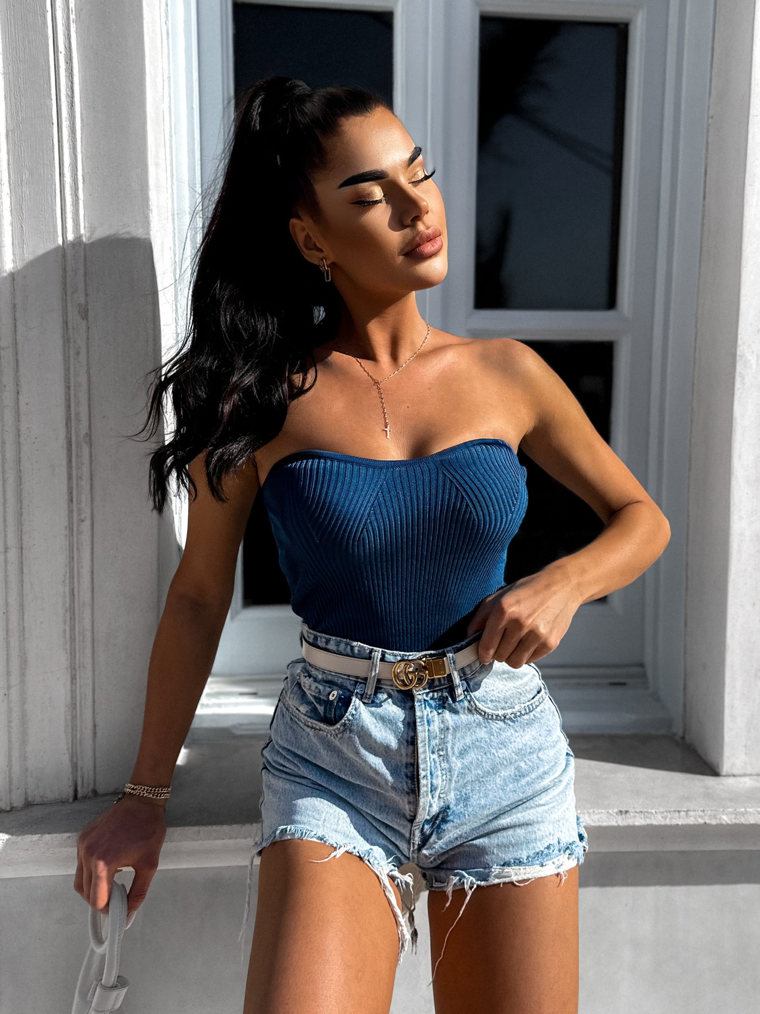 Petrolejový žebrovaný top KARPANY Velikost: M/L
