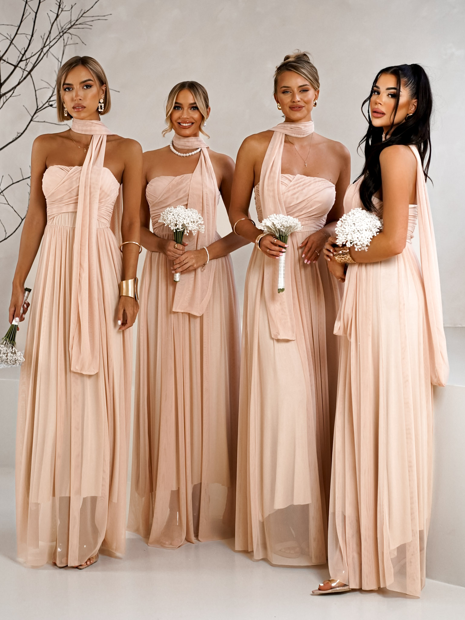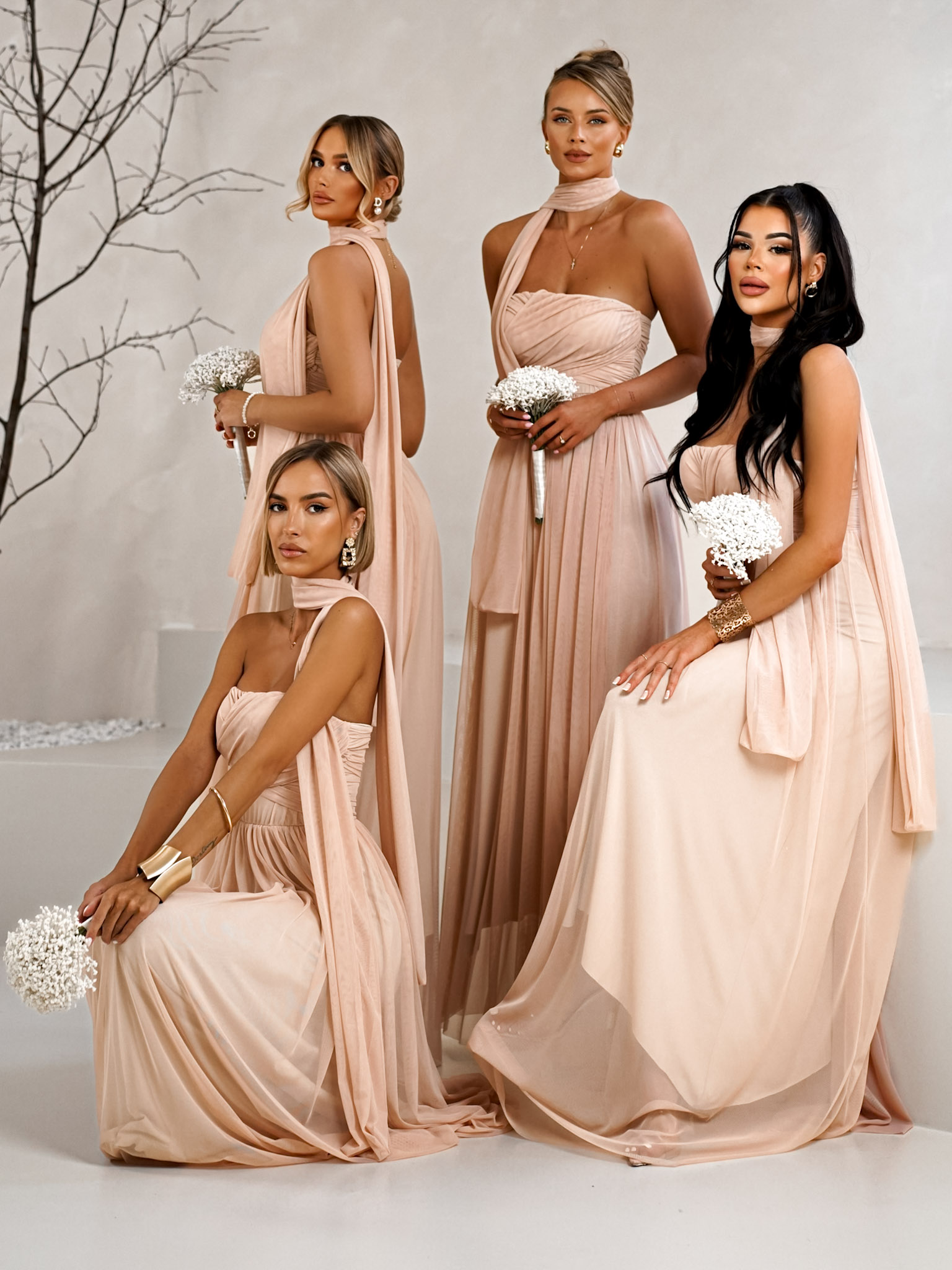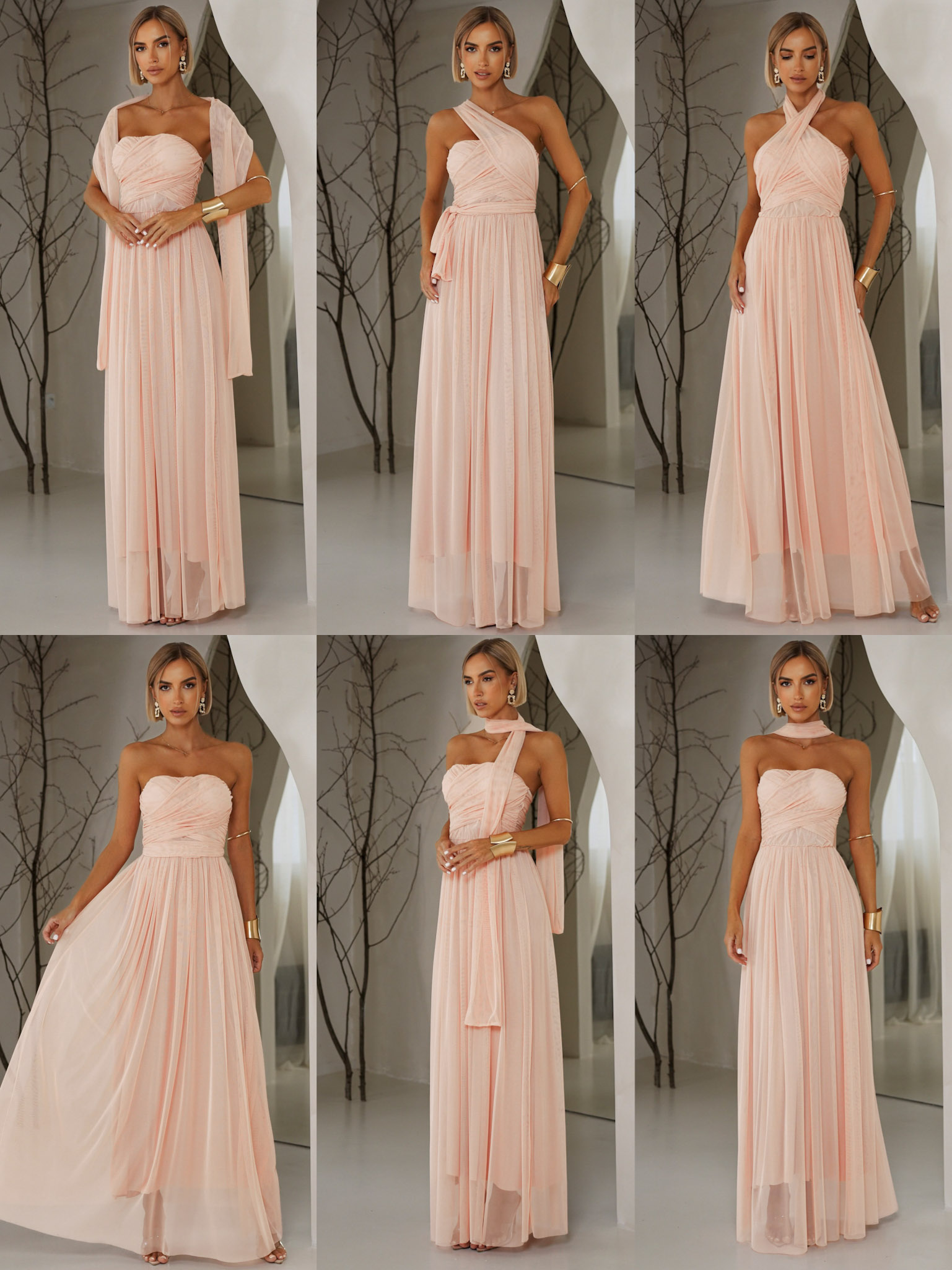 Pudrové tylové šaty BOLEMIR pro družičky s vlečkou Velikost: ONESIZE