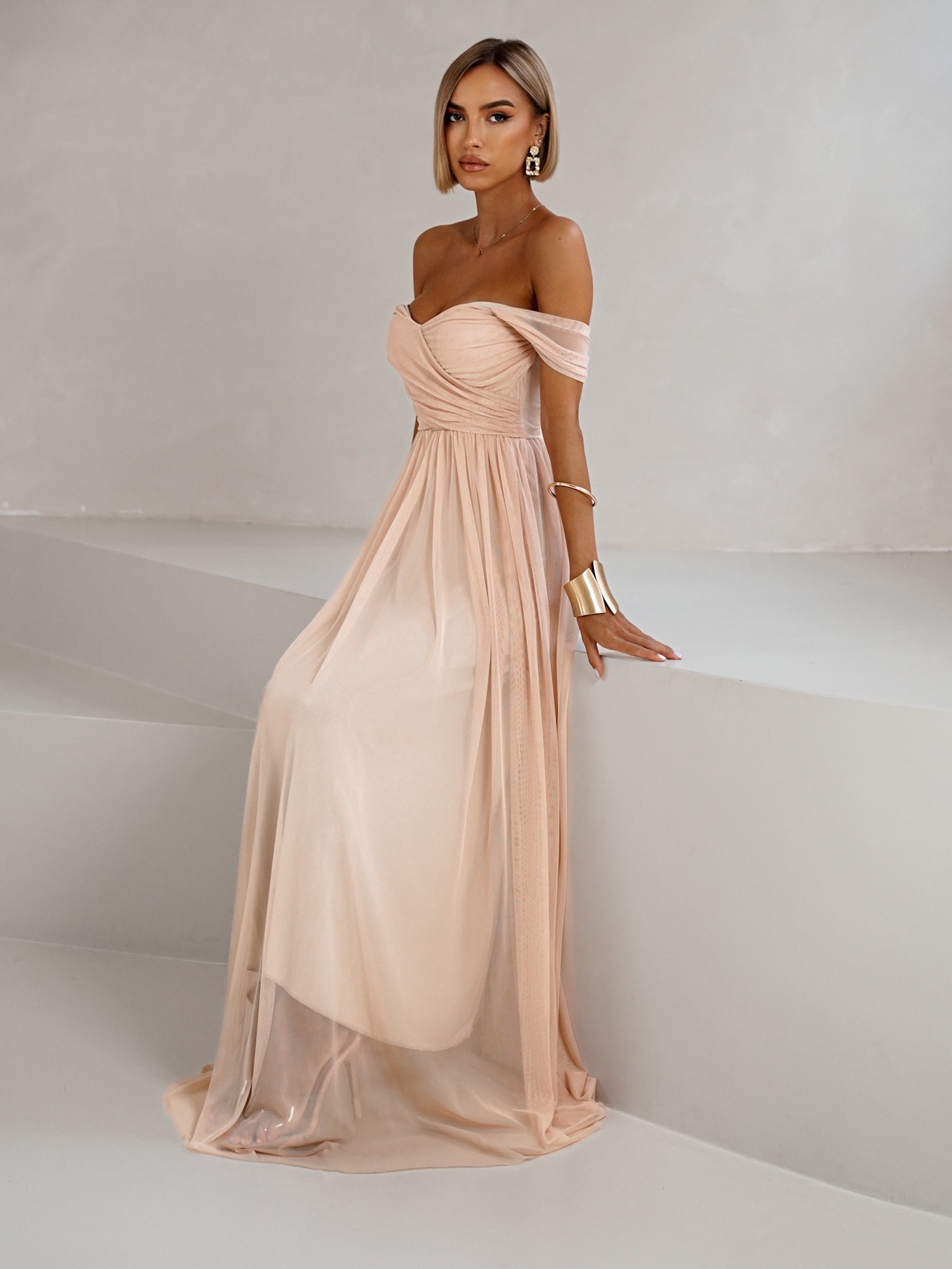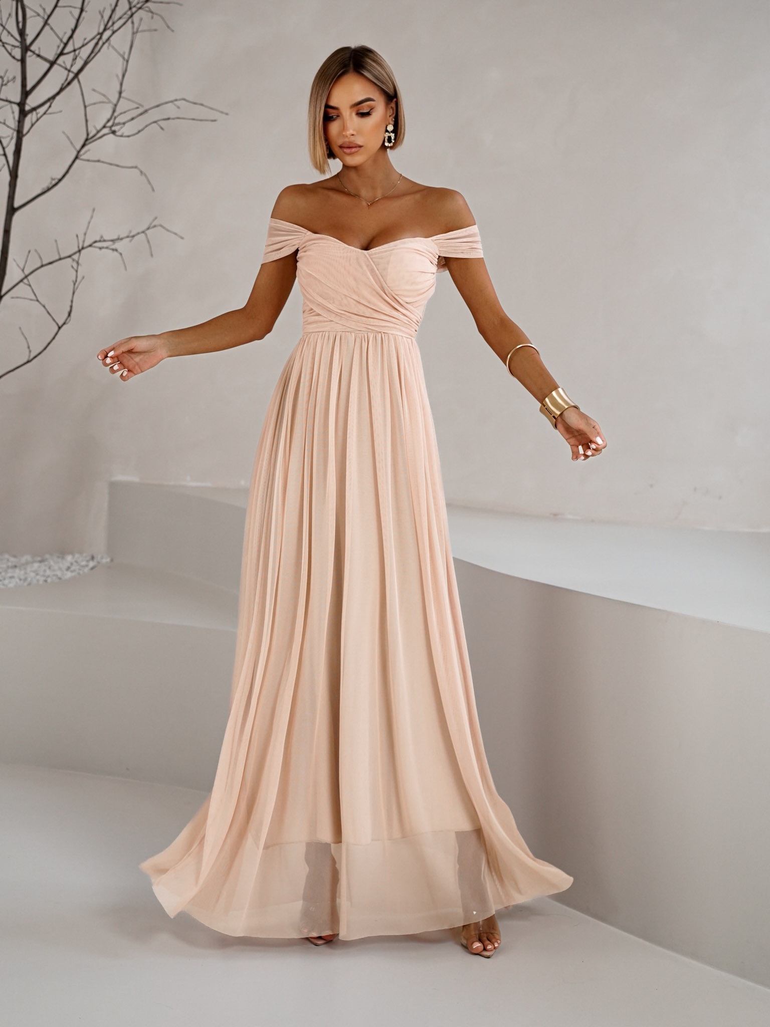 Pudrové tylové společenské šaty BOSCO Velikost: ONESIZE