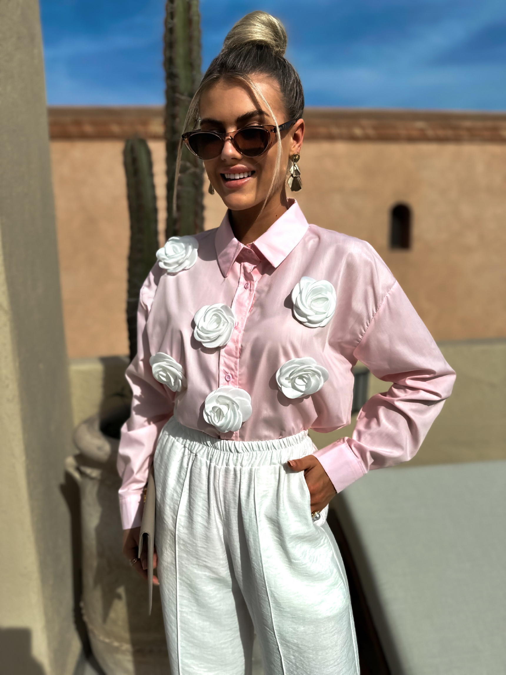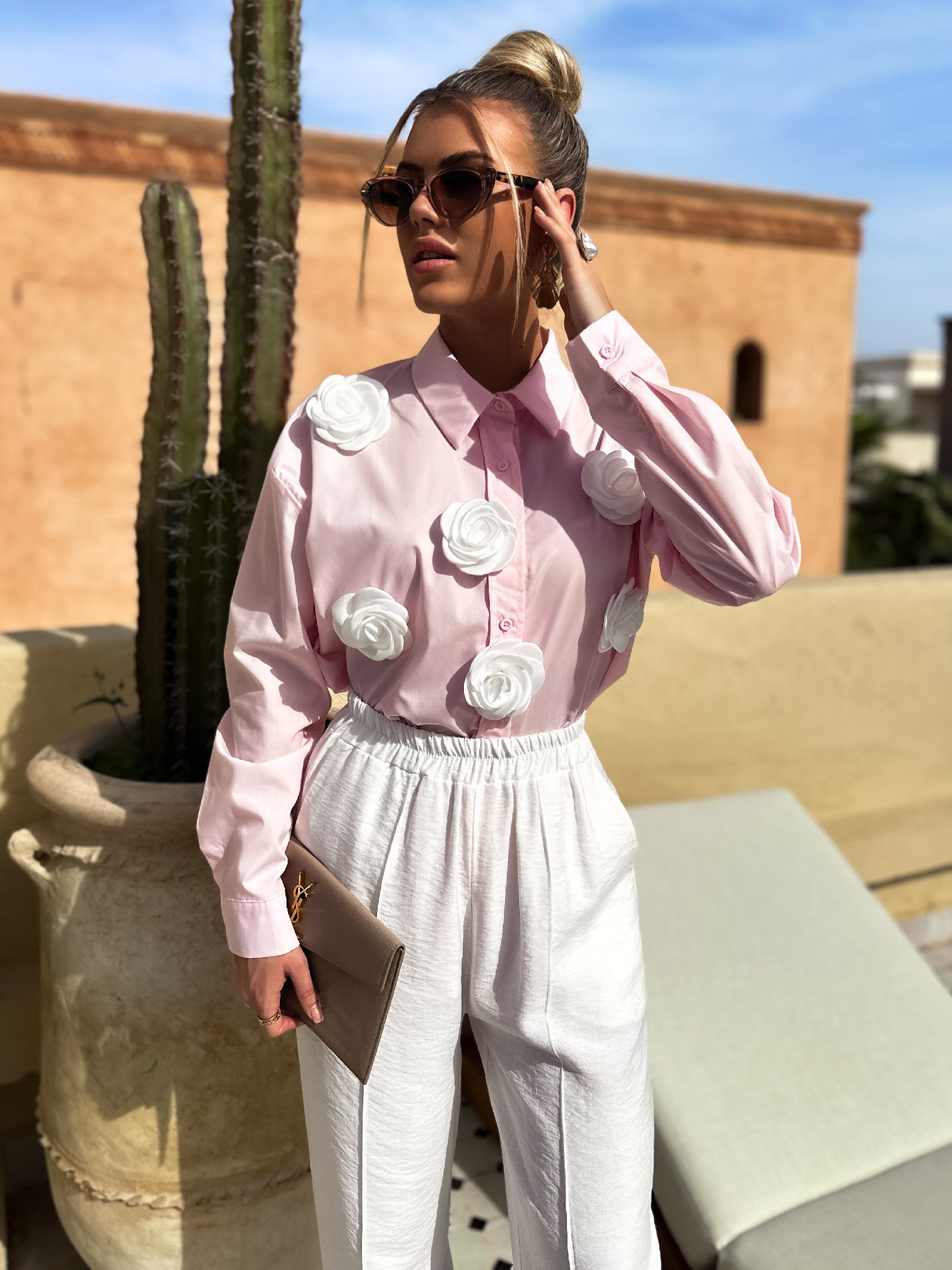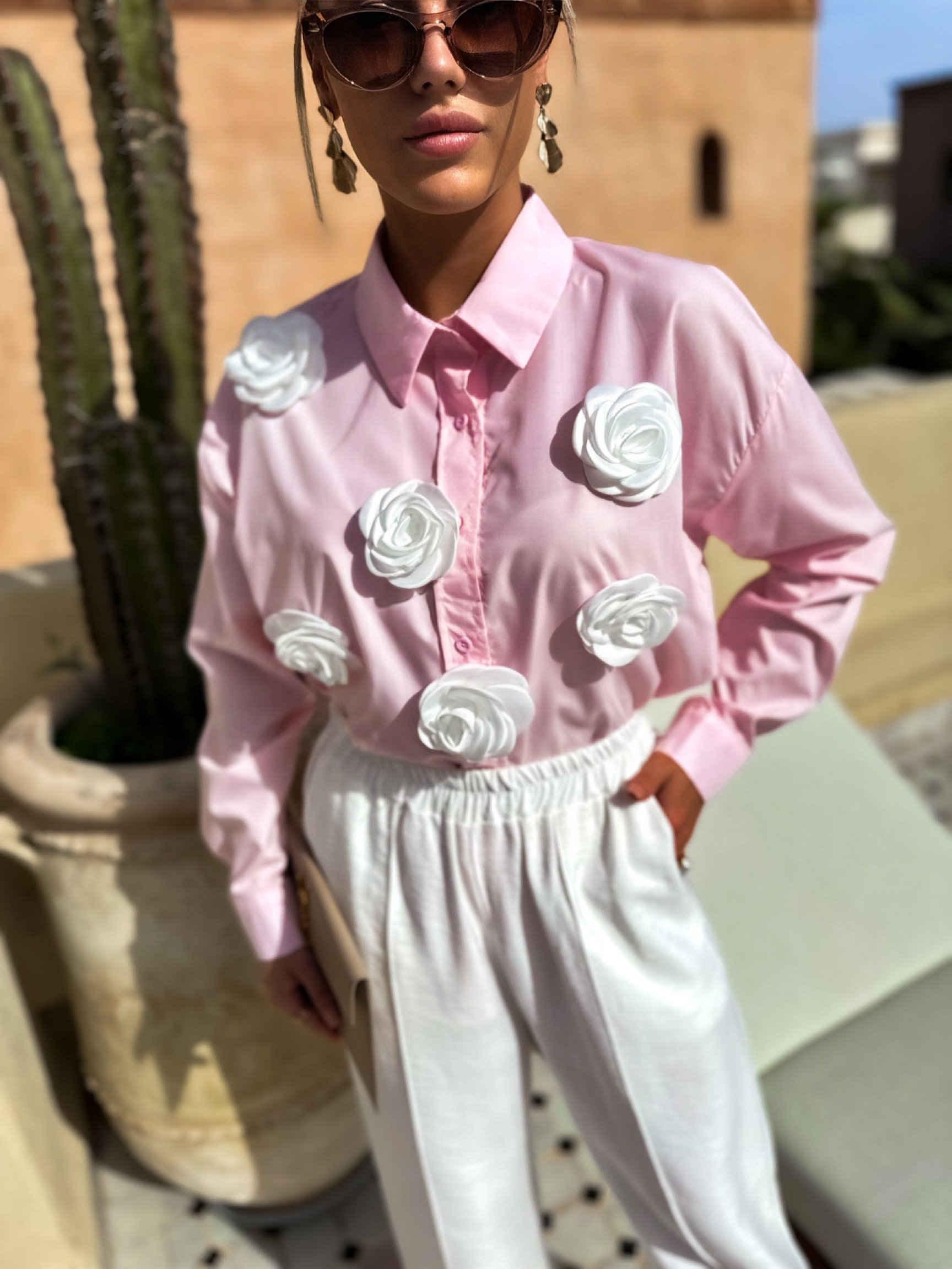 Růžová stylová košile BRUCES s 3D květinami Velikost: S/M