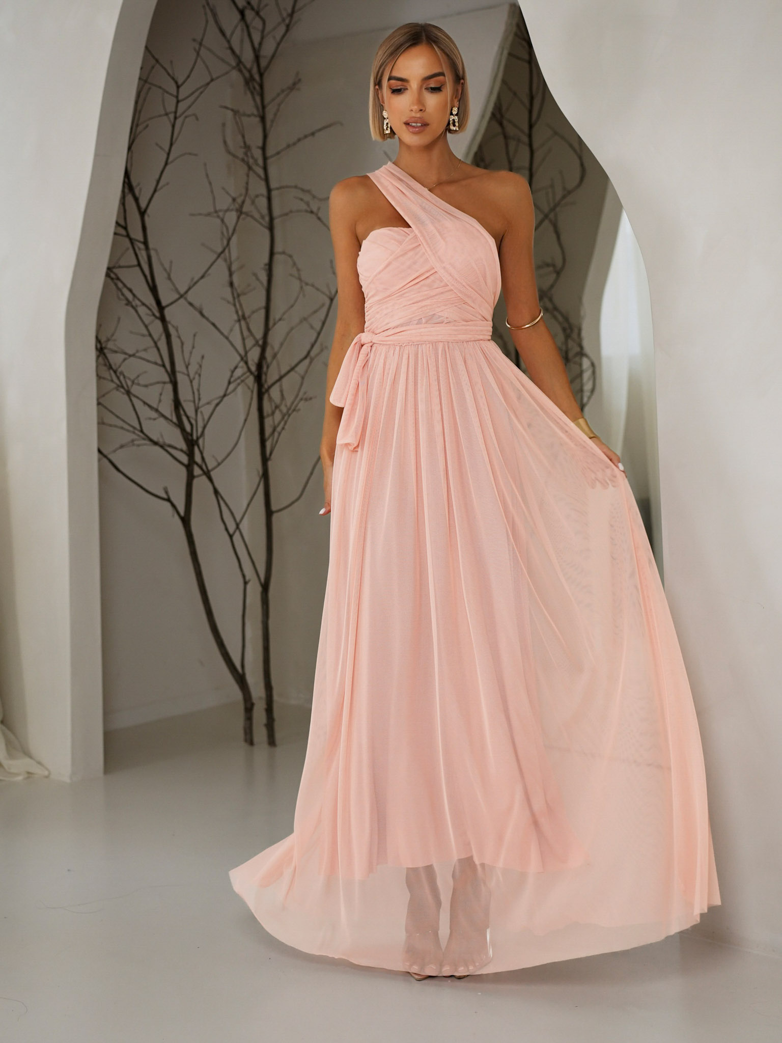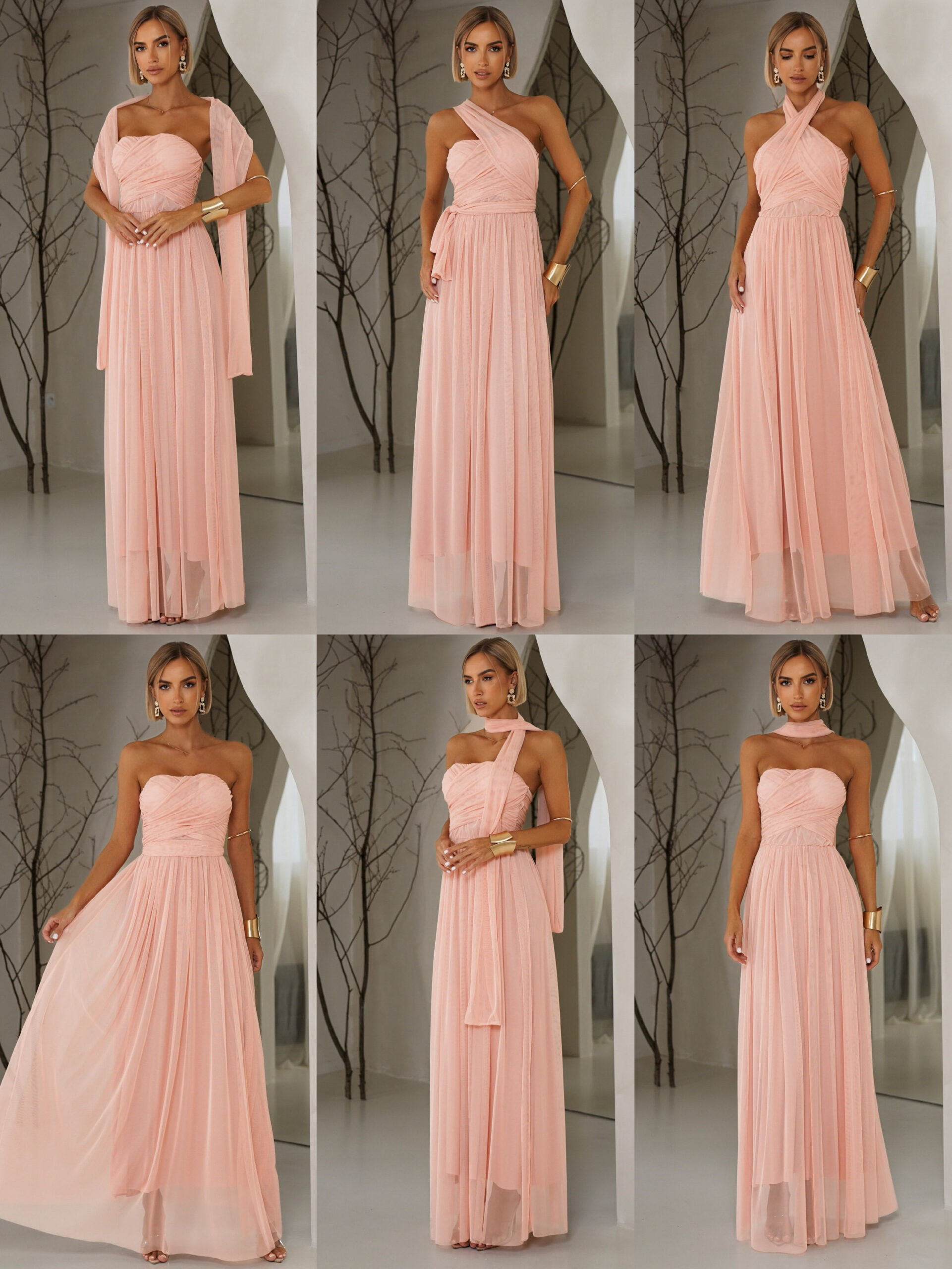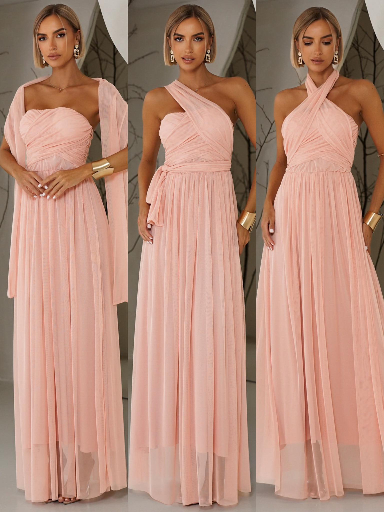 Růžové tylové dlouhé šaty BOLEMIR s vlečkou Velikost: ONESIZE