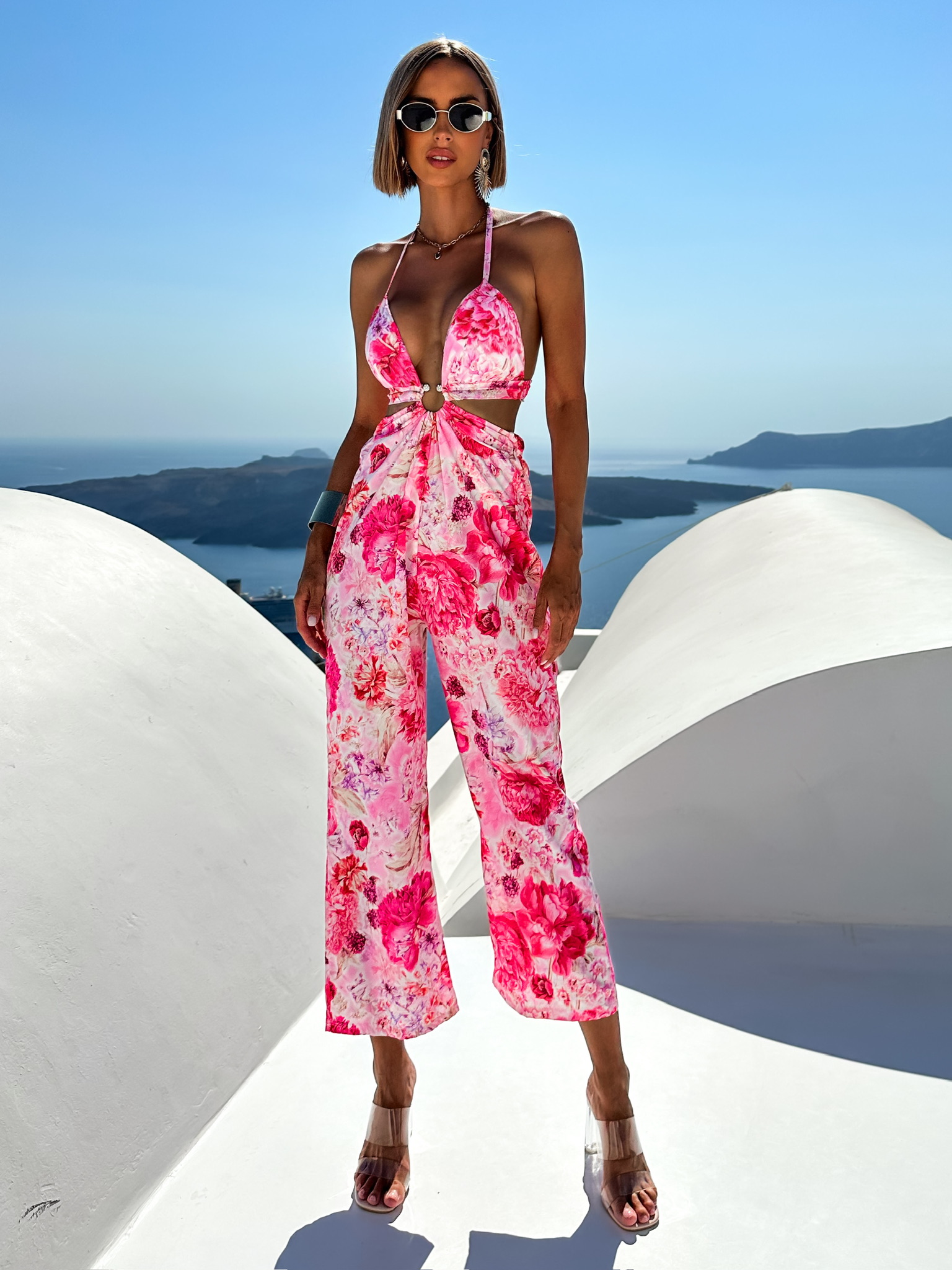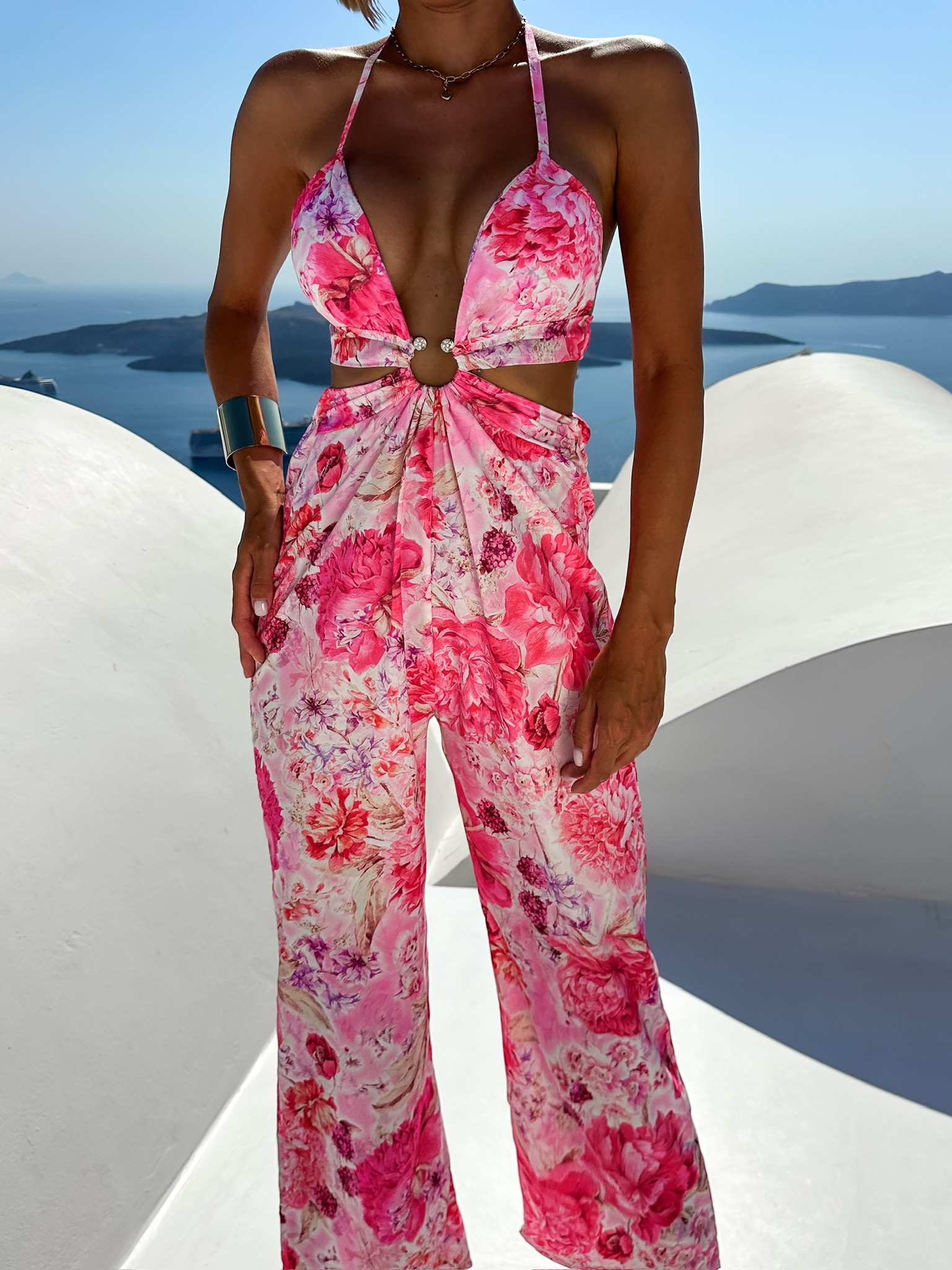 Růžový květovaný overal UJINA s průstřihy Velikost: ONESIZE