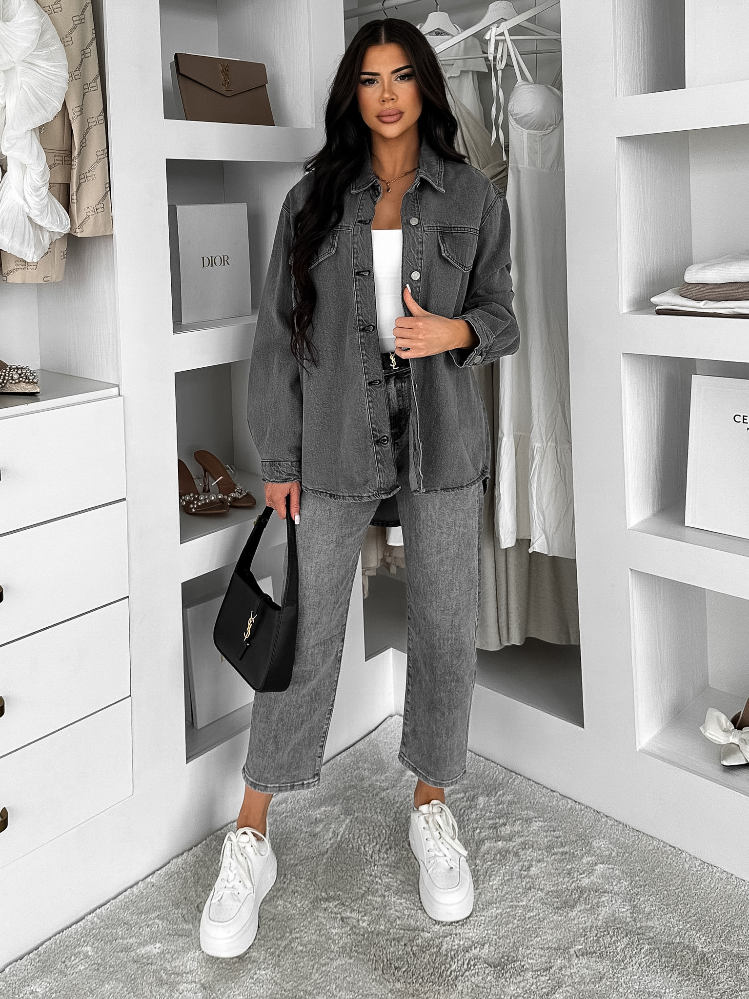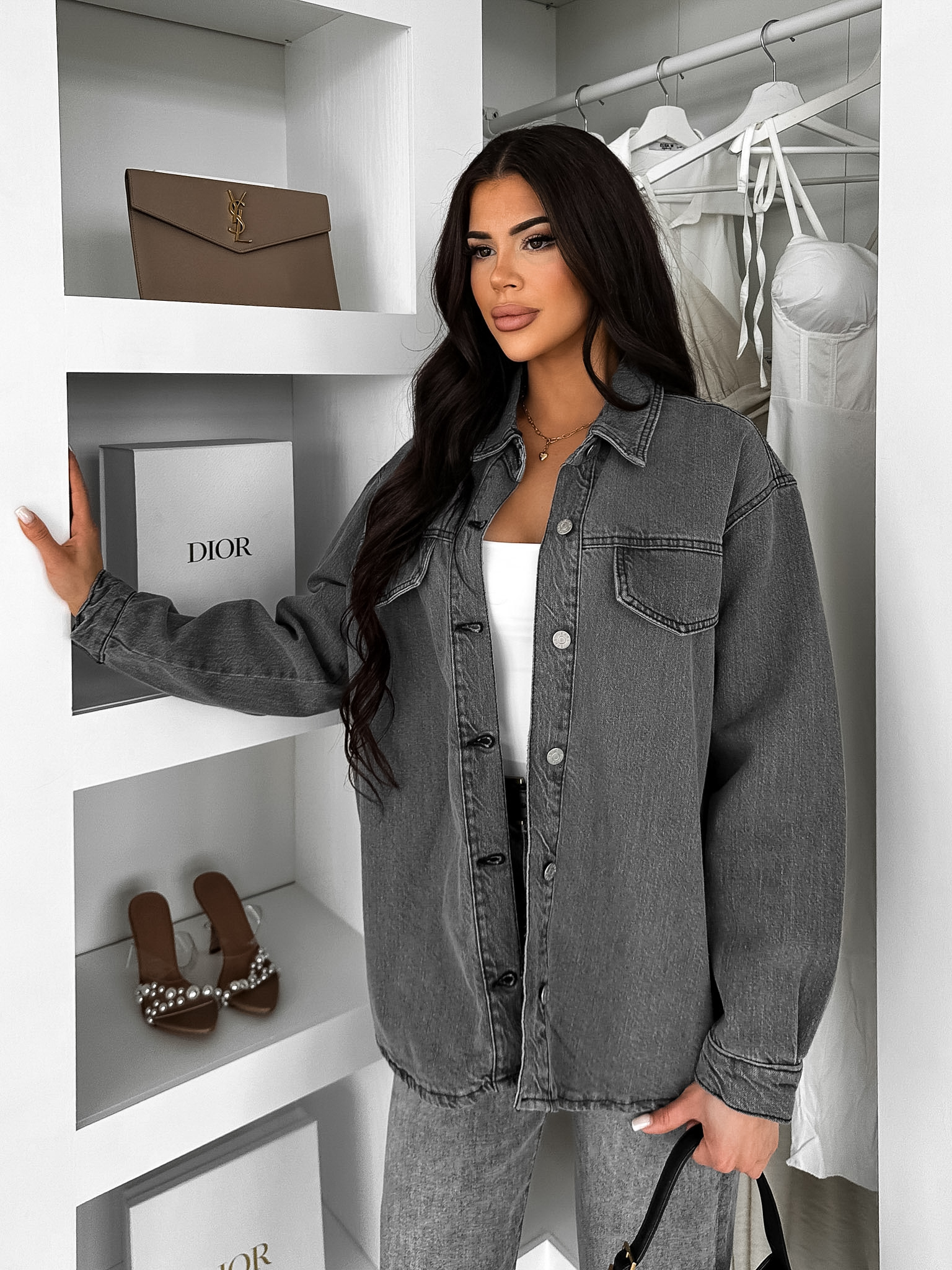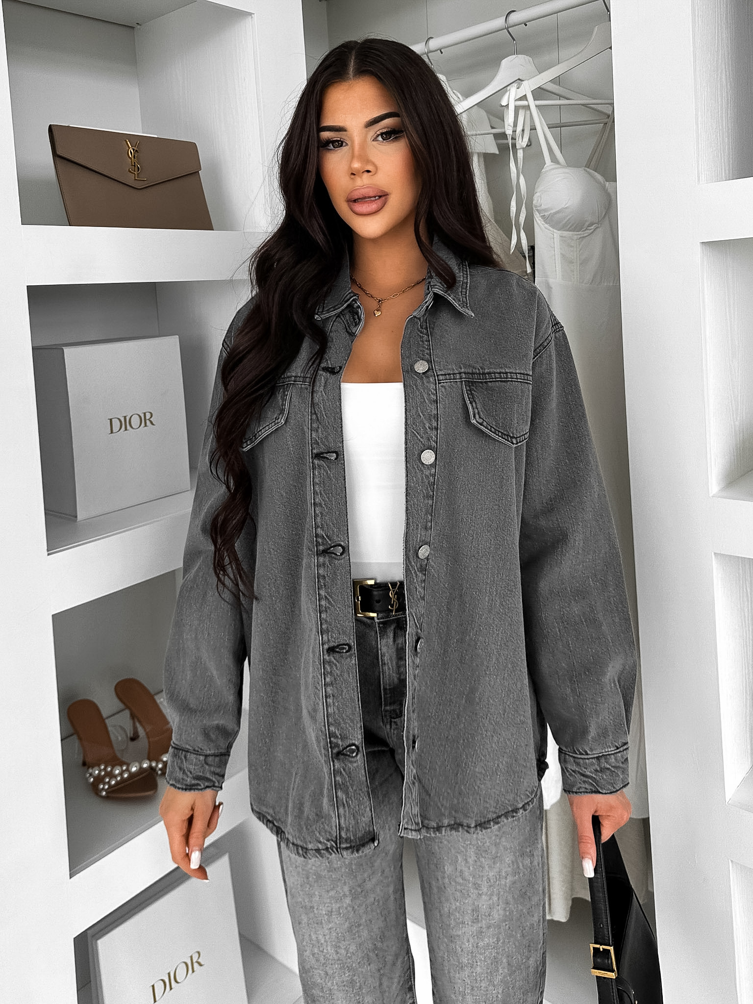 Šedá džínová denim oversize košile ELORIA Velikost: ONESIZE