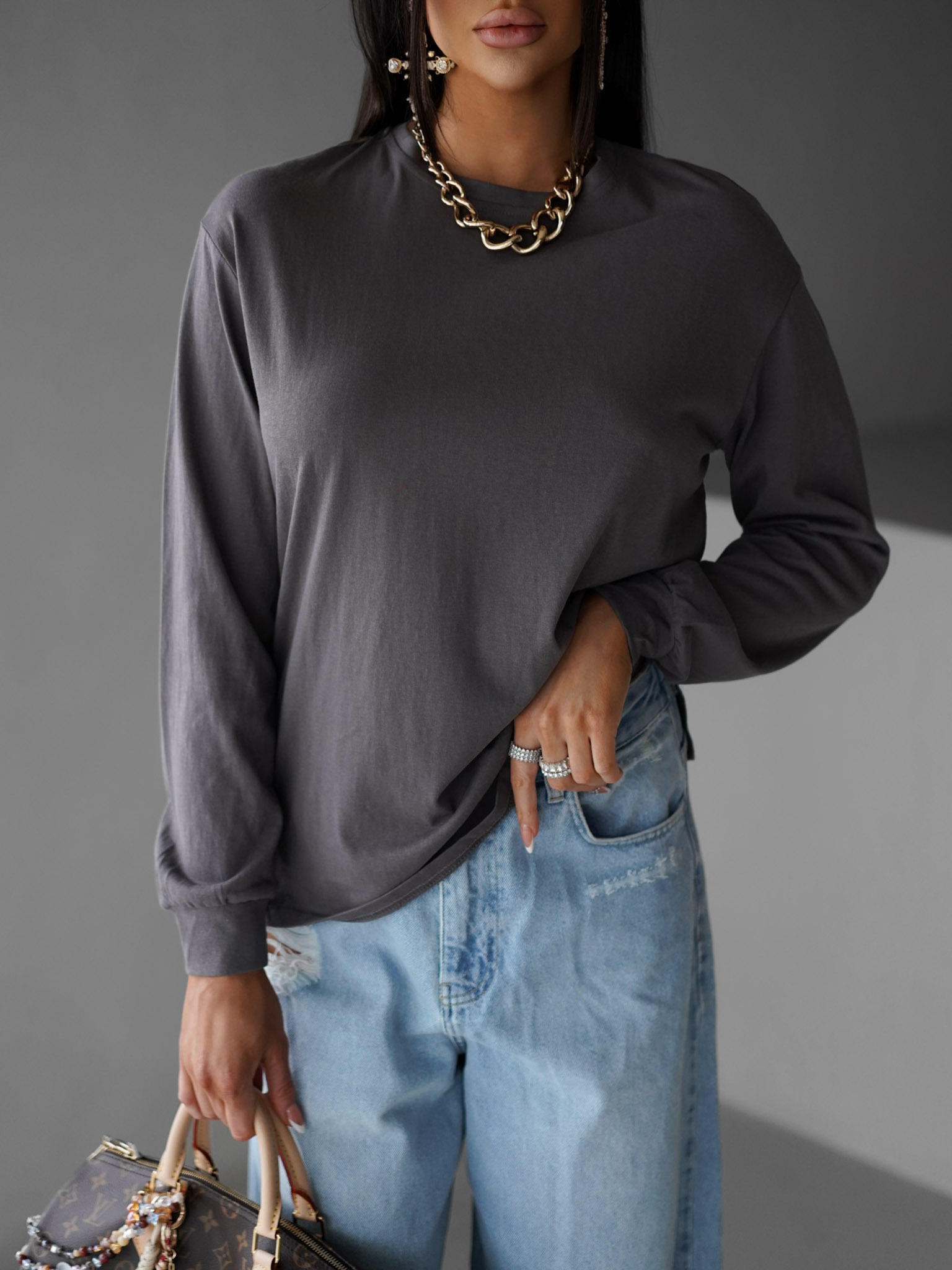 Šedé basic bavlněné triko CENKA Velikost: ONESIZE