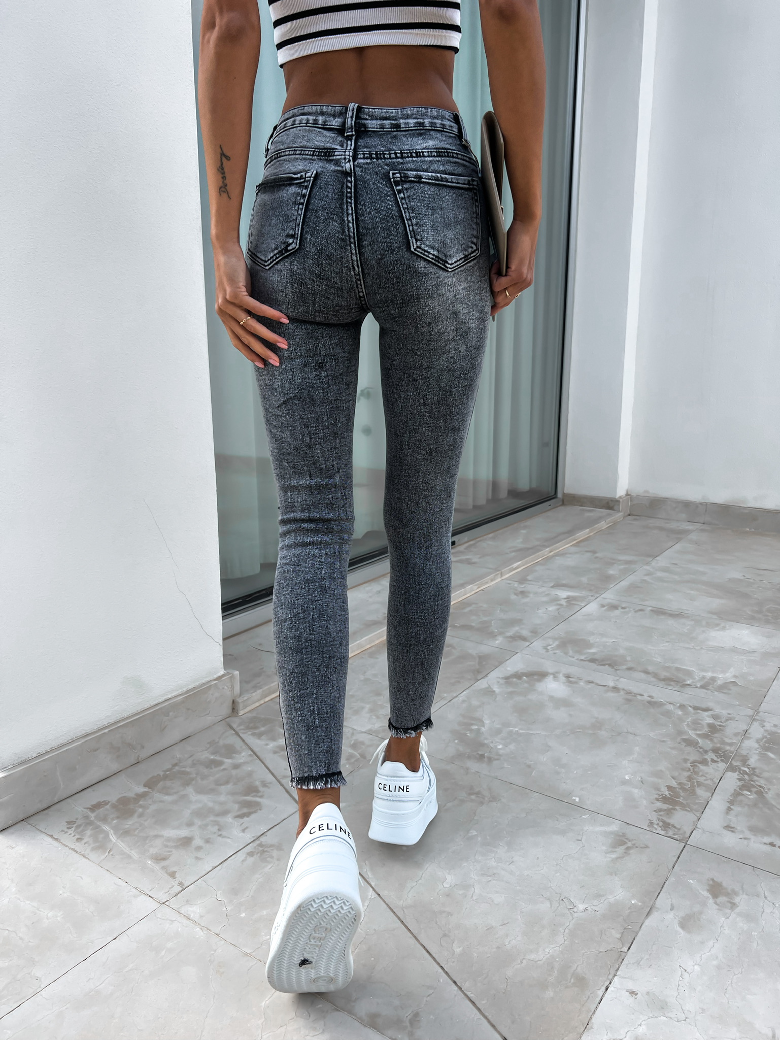 Šedé denim džíny LIDIE s roztrženými nohavicemi Velikost: XS