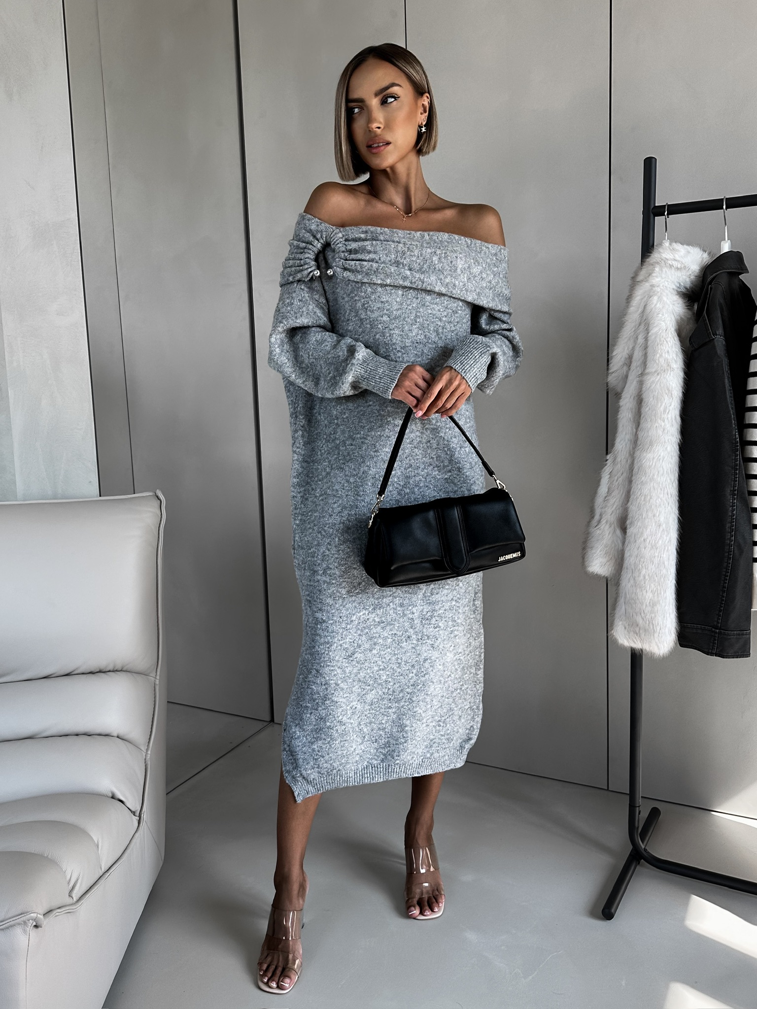 Šedé dlouhé svetrové šaty MANEL Velikost: ONESIZE