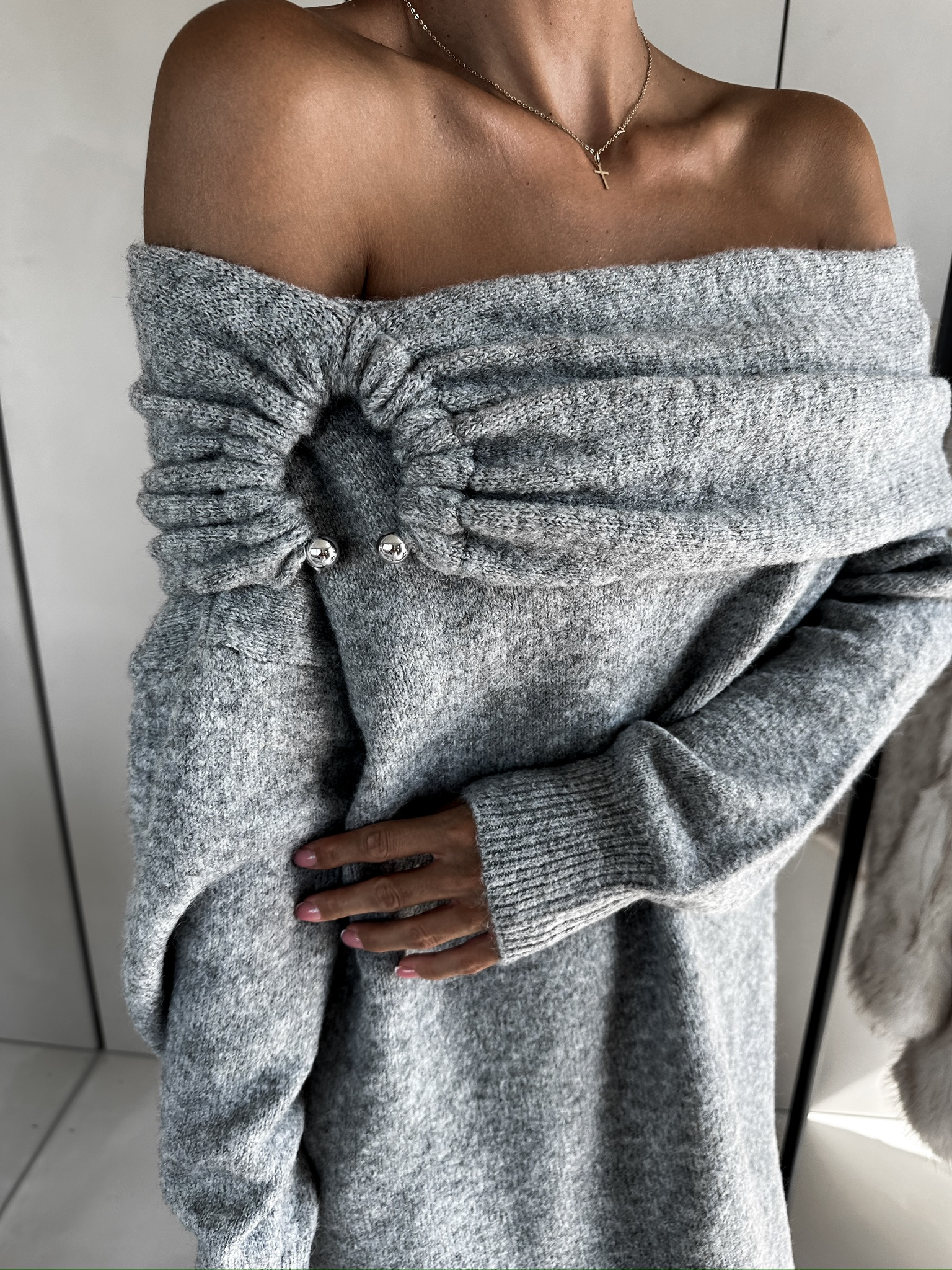 Šedé dlouhé svetrové šaty MANEL Velikost: ONESIZE - Obrázek 3