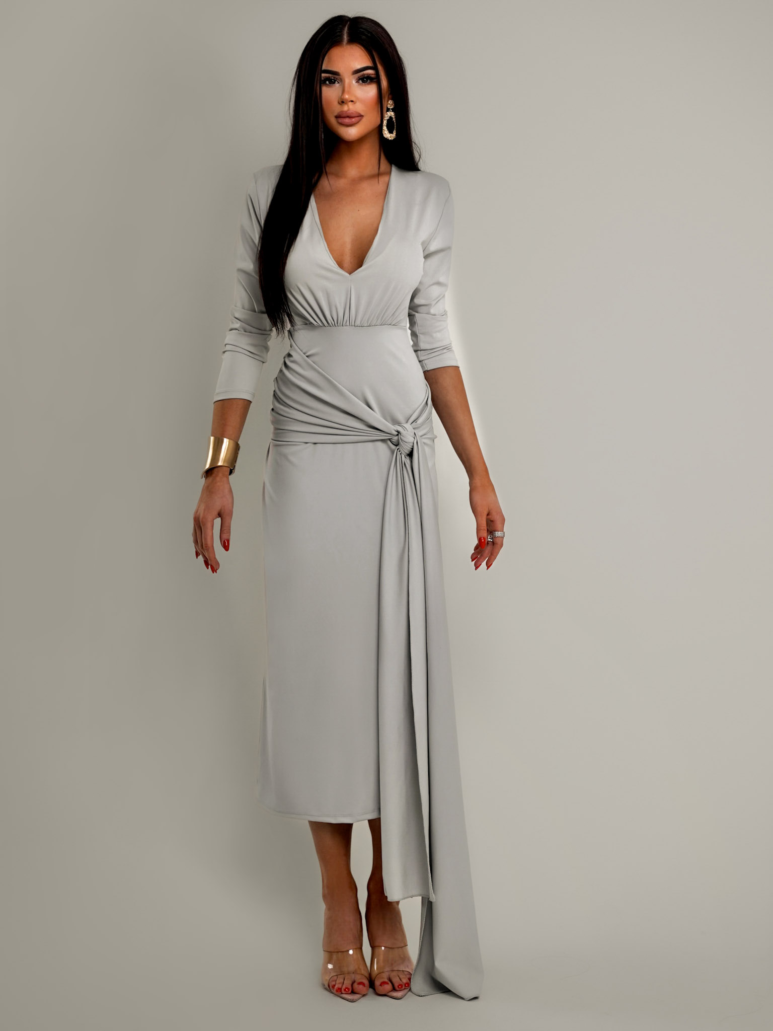 Šedé elegantní šaty AUTIS se zavazováním Velikost: ONESIZE