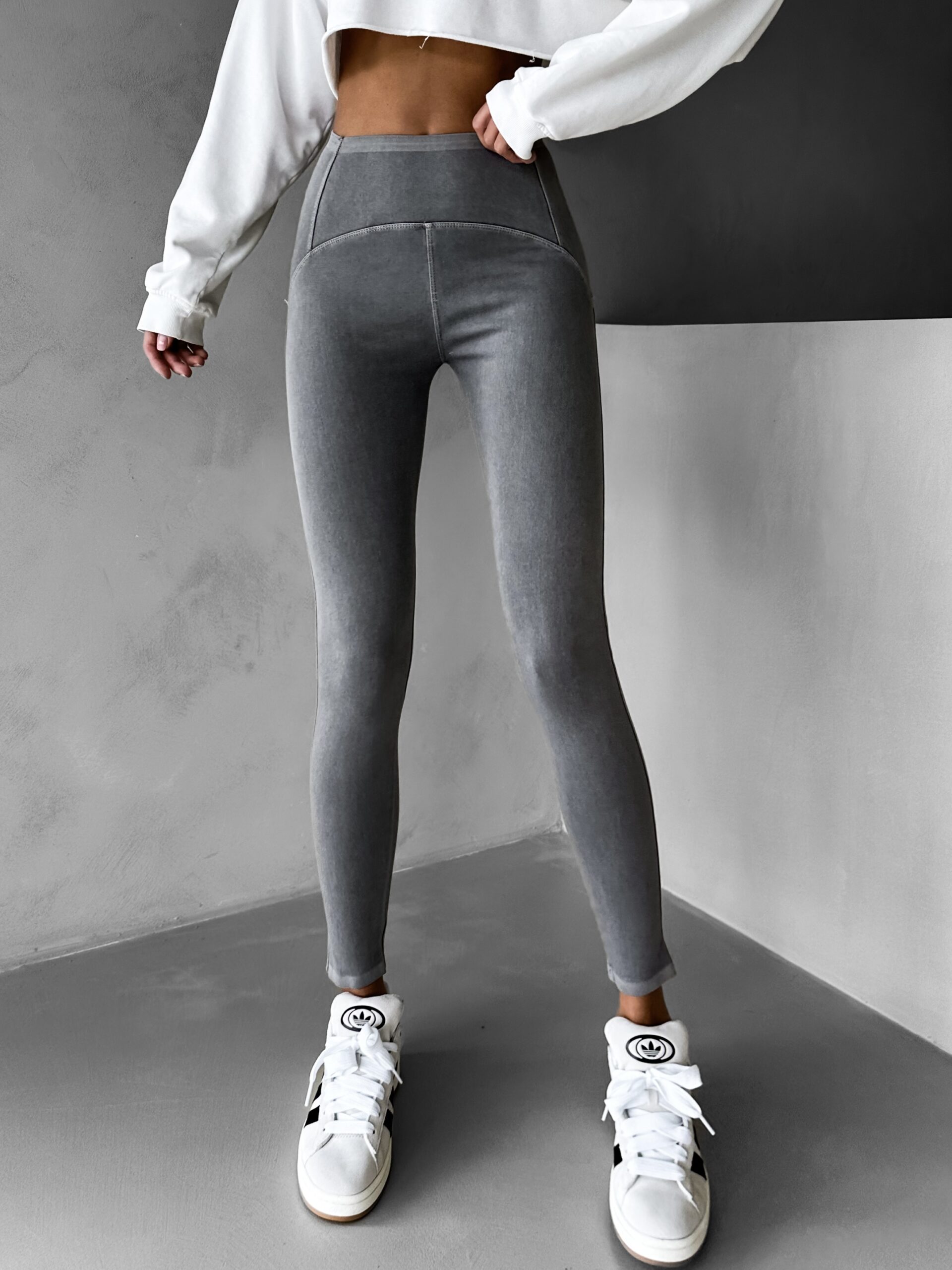 Šedé push up tvarující legíny TEOMAN Velikost: XL