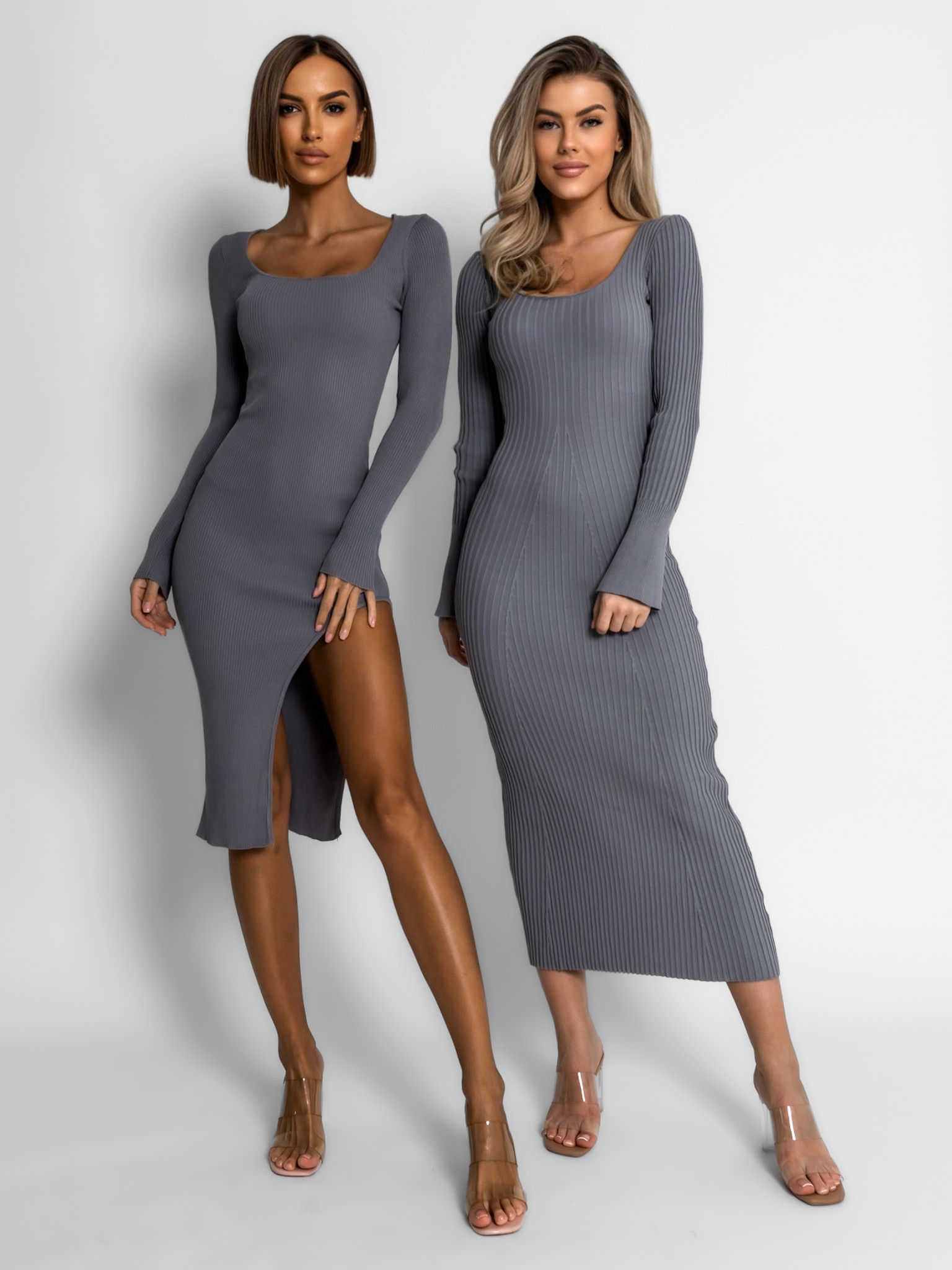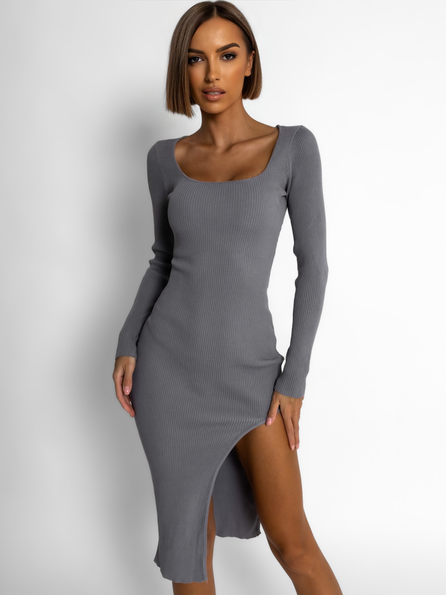 Šedé šaty MOHEGAN s rozparkem Velikost: M/L