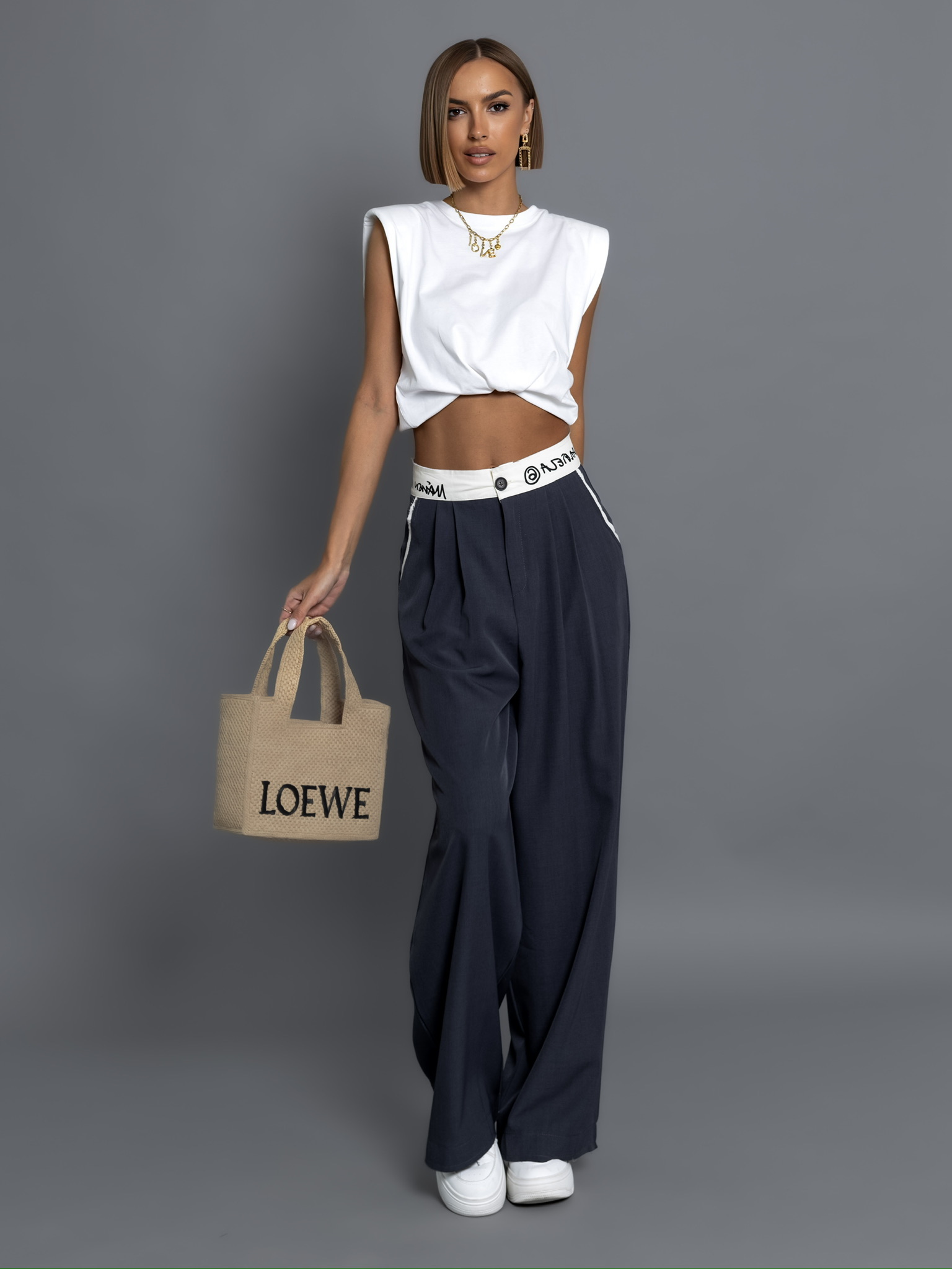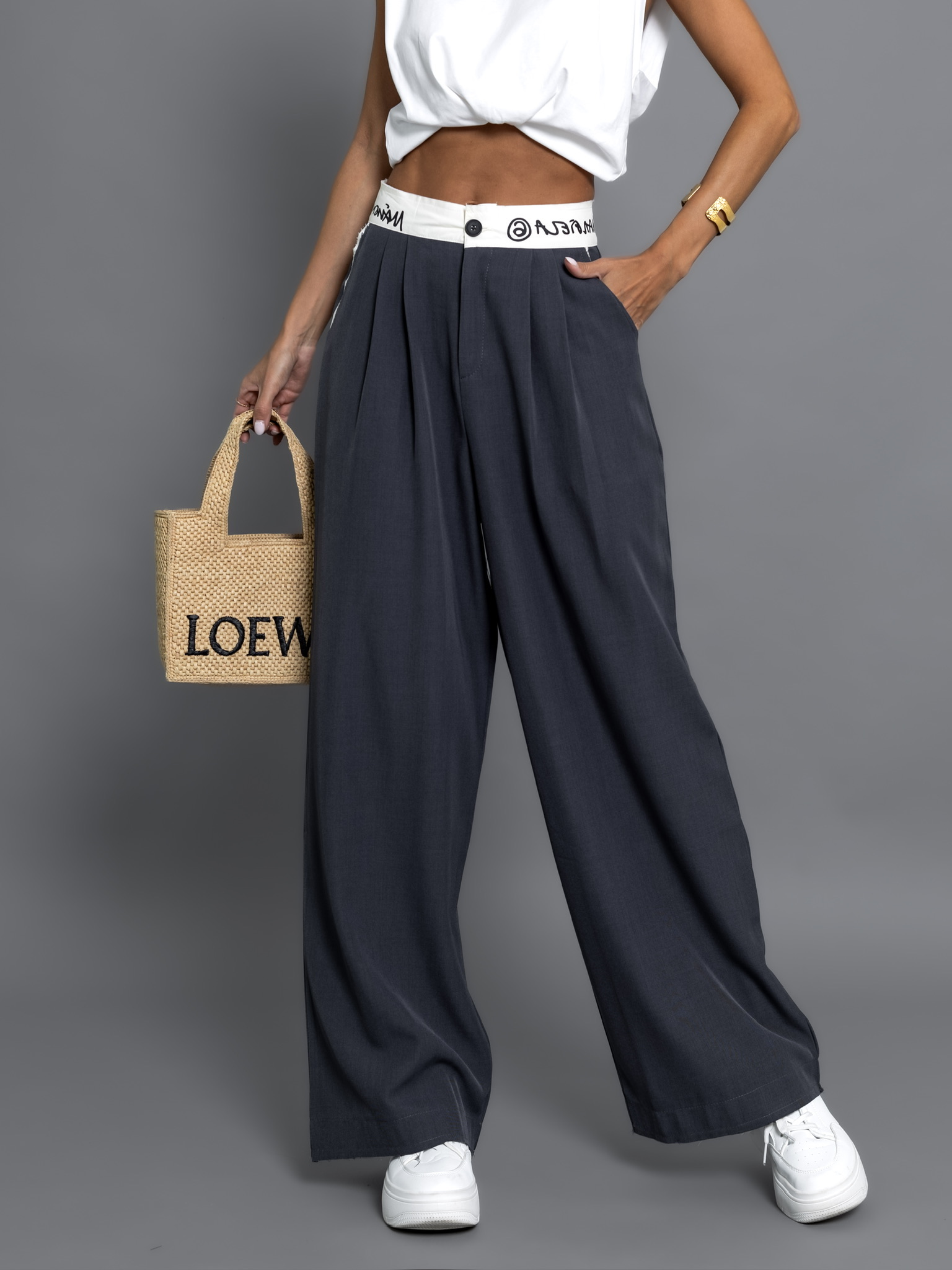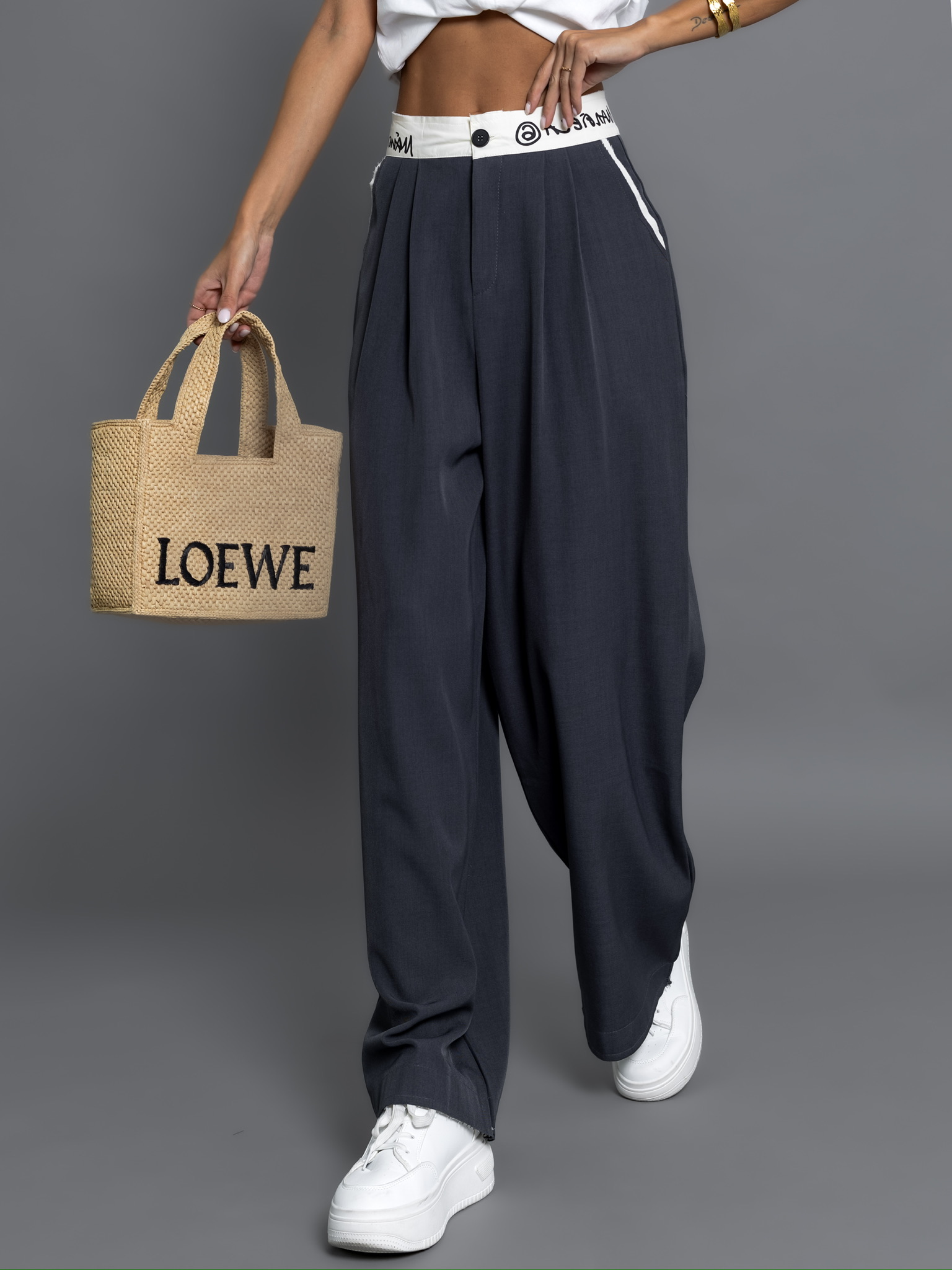 Šedé široké kalhoty RODARICK s gumou v pase Velikost: L
