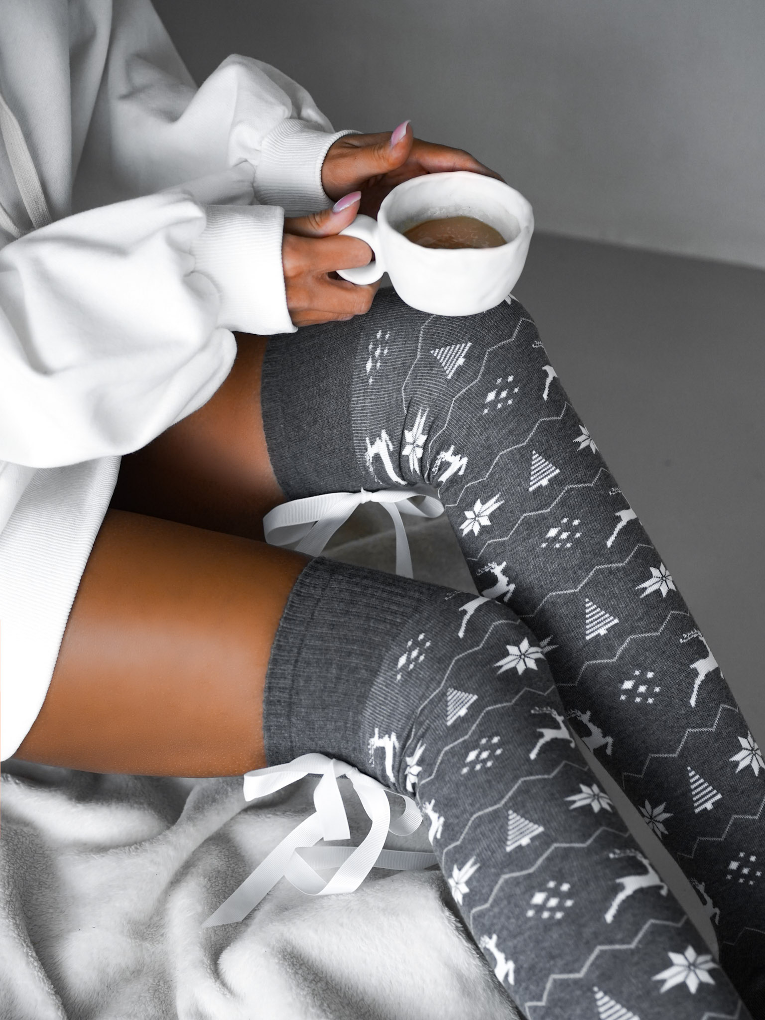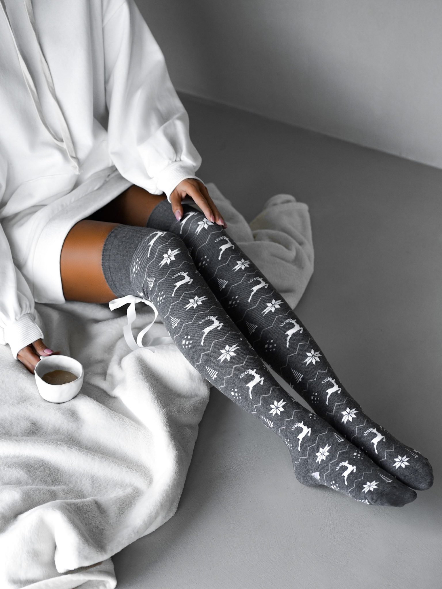 Šedé vánoční nadkolenky SLINTER s mašlí Velikost: ONESIZE