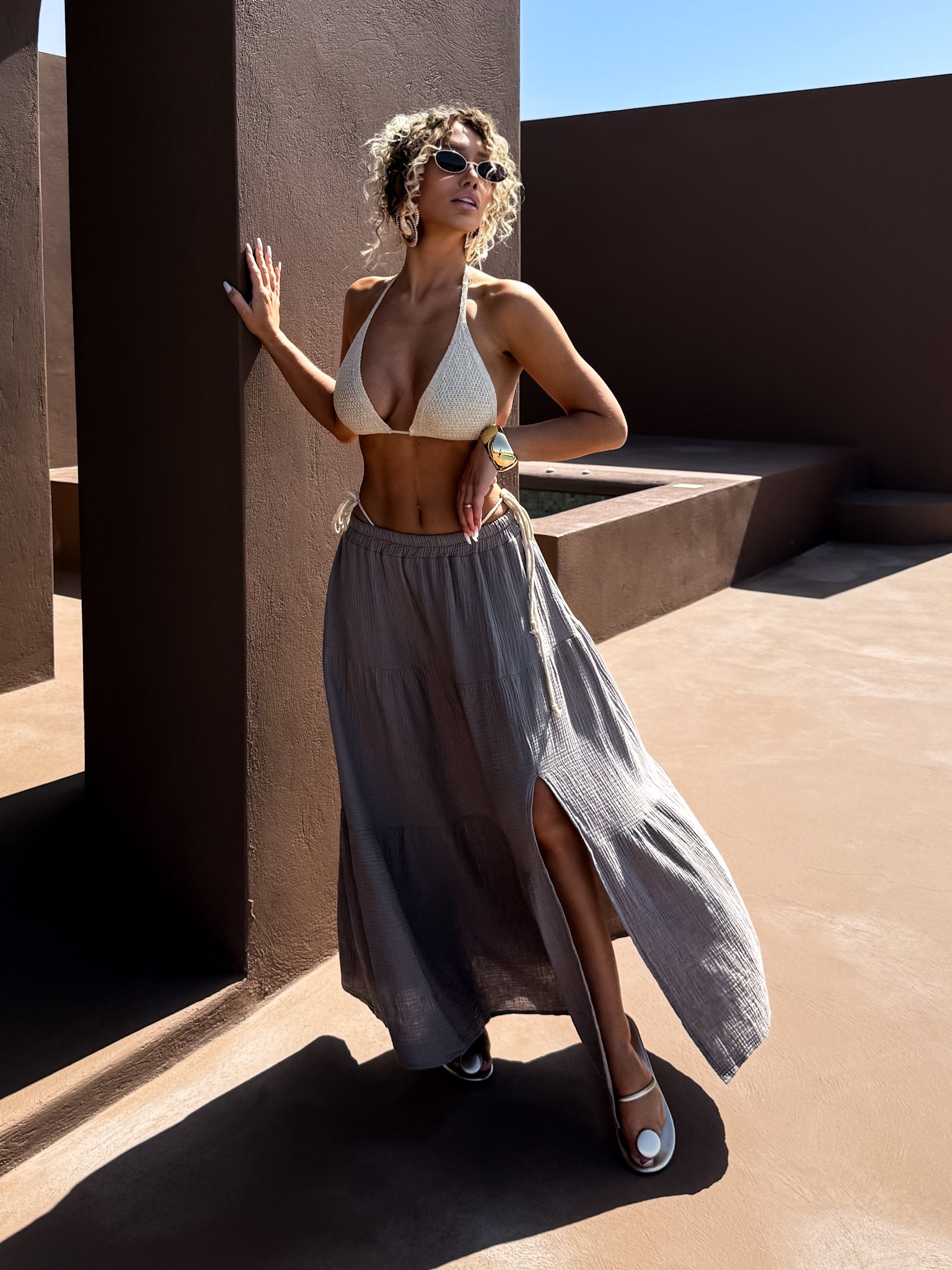 Šedohnědá mušelínová dlouhá sukně HAURALA Velikost: ONESIZE