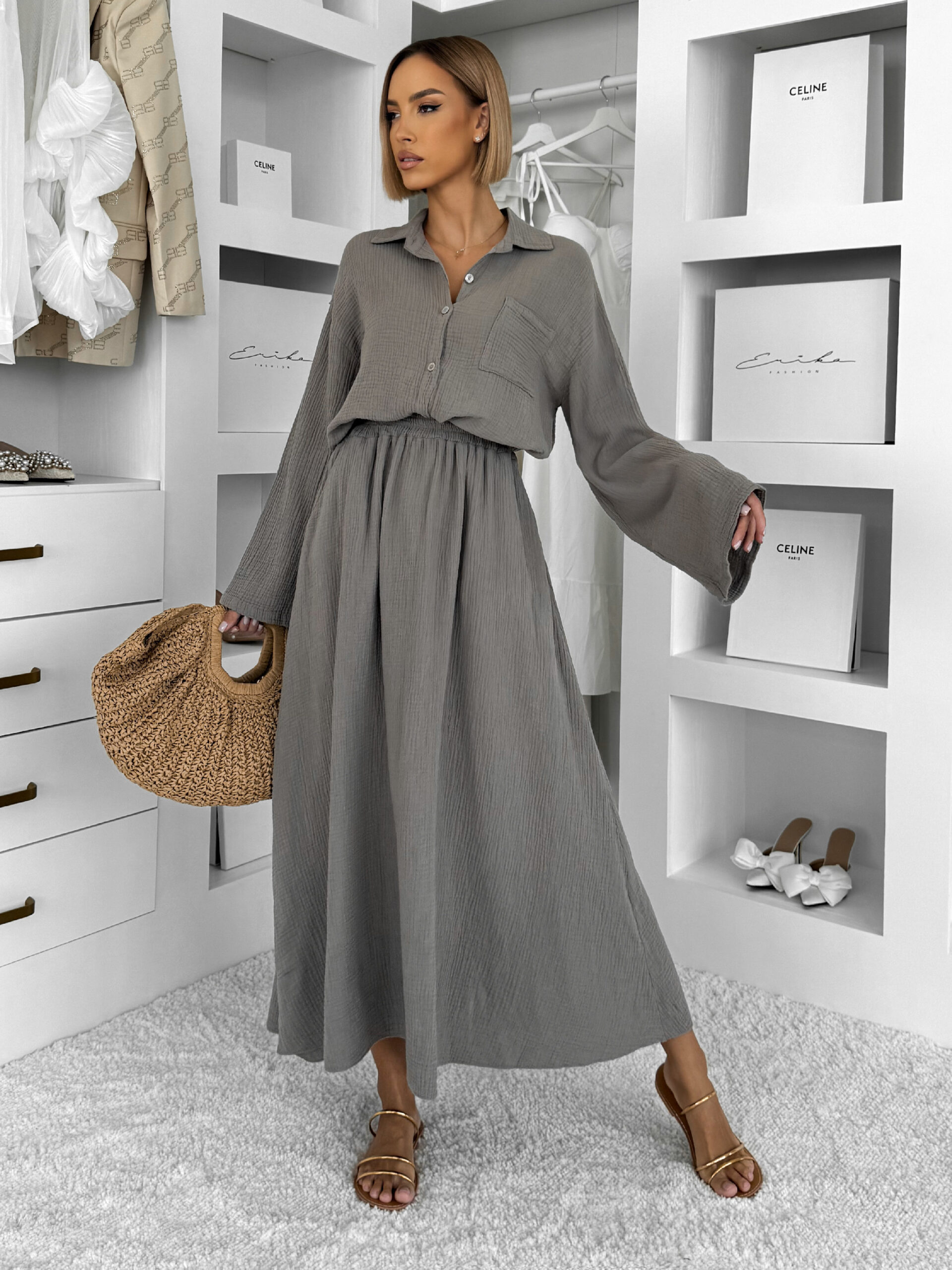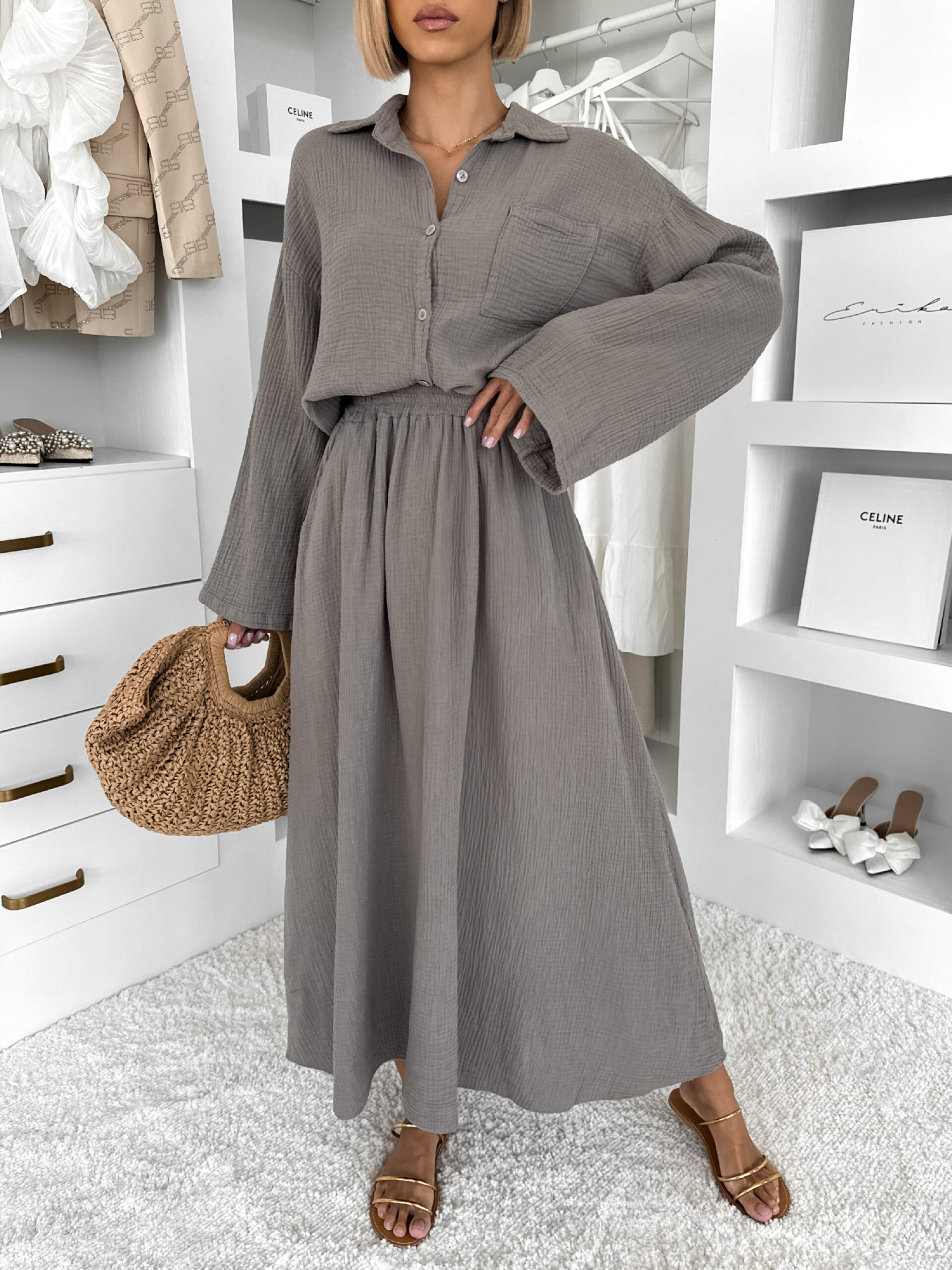 Šedohnědý mušelínový komplet BELIANE se sukní Velikost: ONESIZE