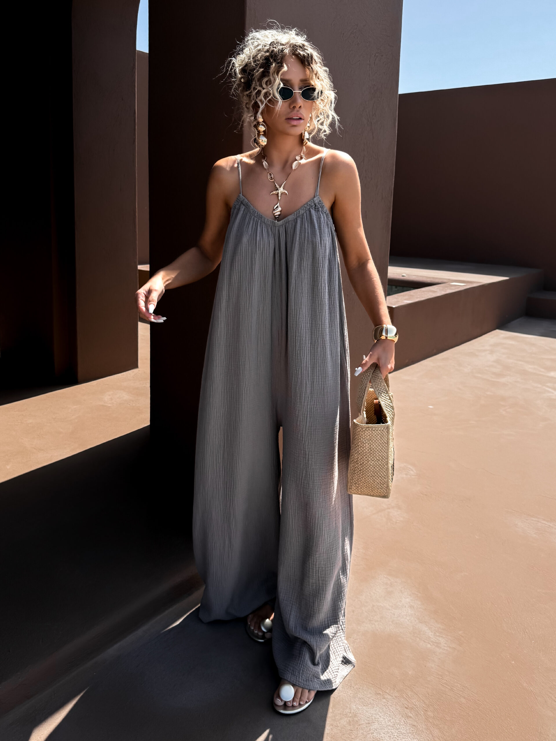 Šedohnědý mušelínový maxi overal ZEVANDER Velikost: ONESIZE