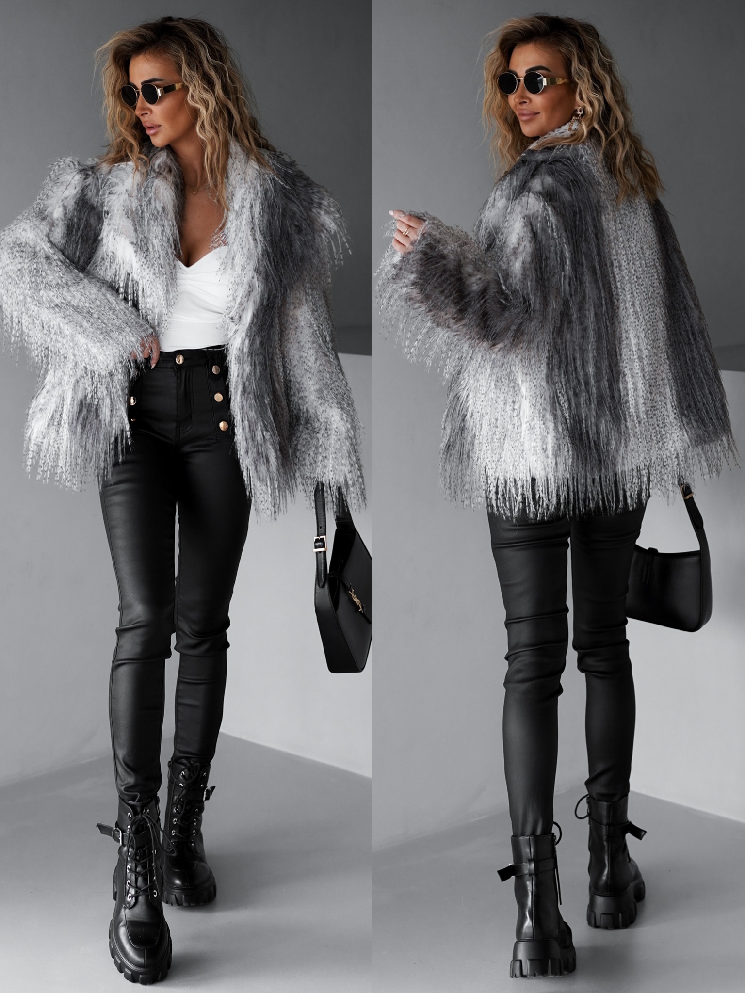 Šedý faux fur kožešinový kabátek BRUNA se žíháním Velikost: ONESIZE