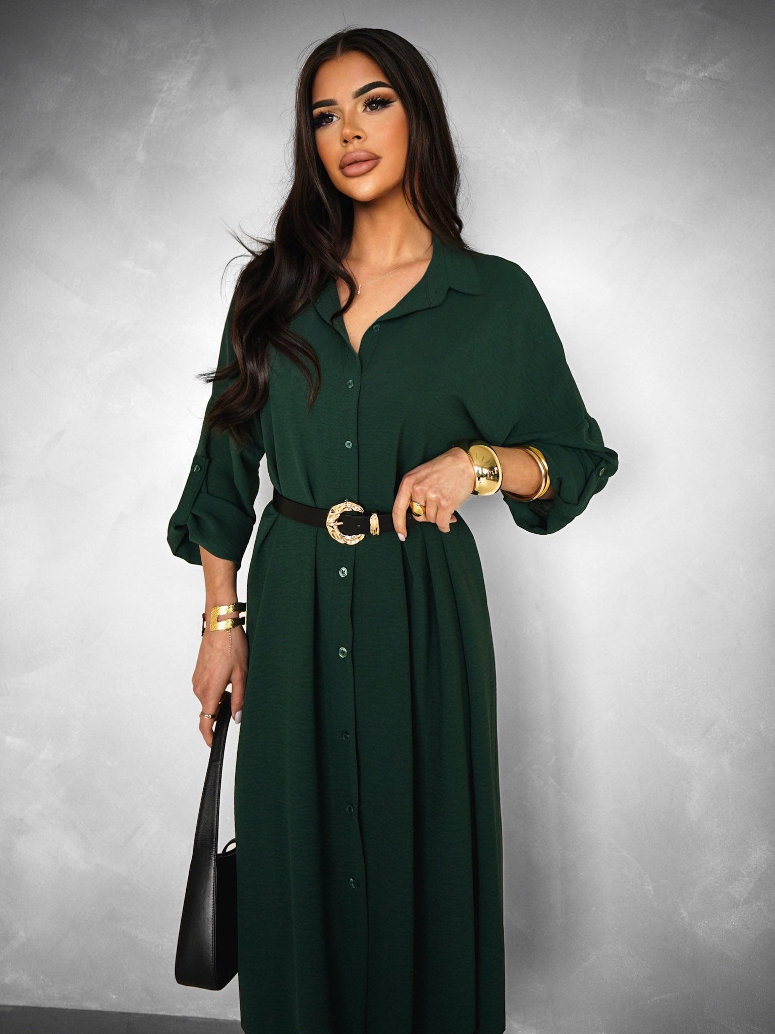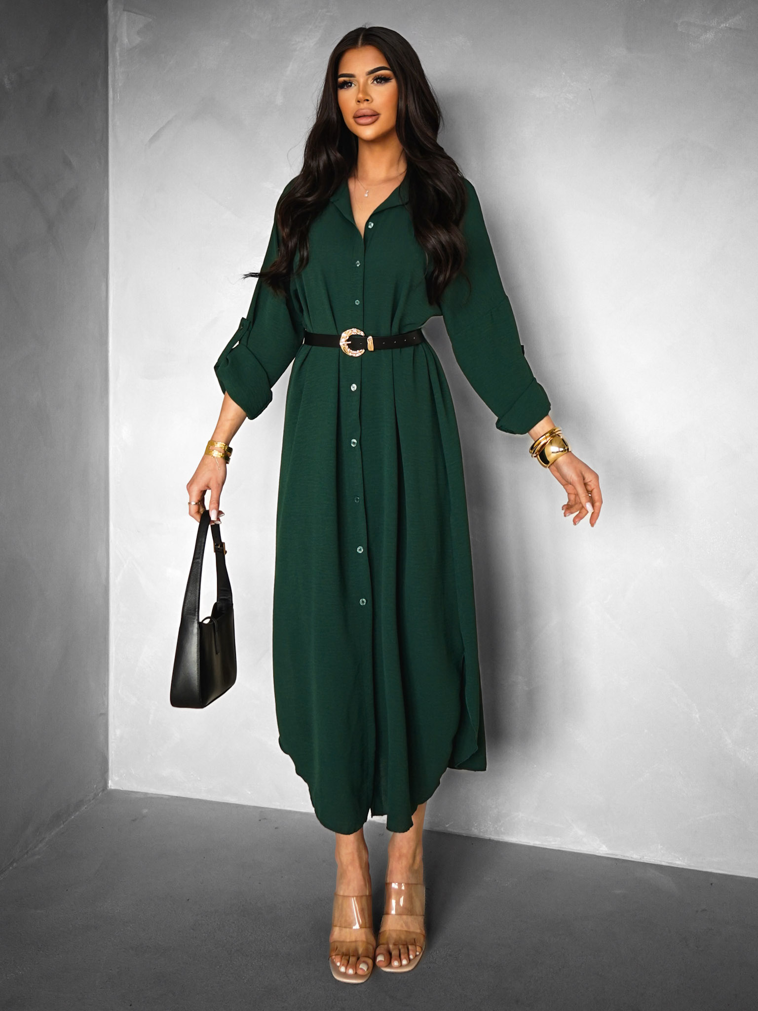 Smaragdové dlouhé košilové šaty NESSY Velikost: ONESIZE