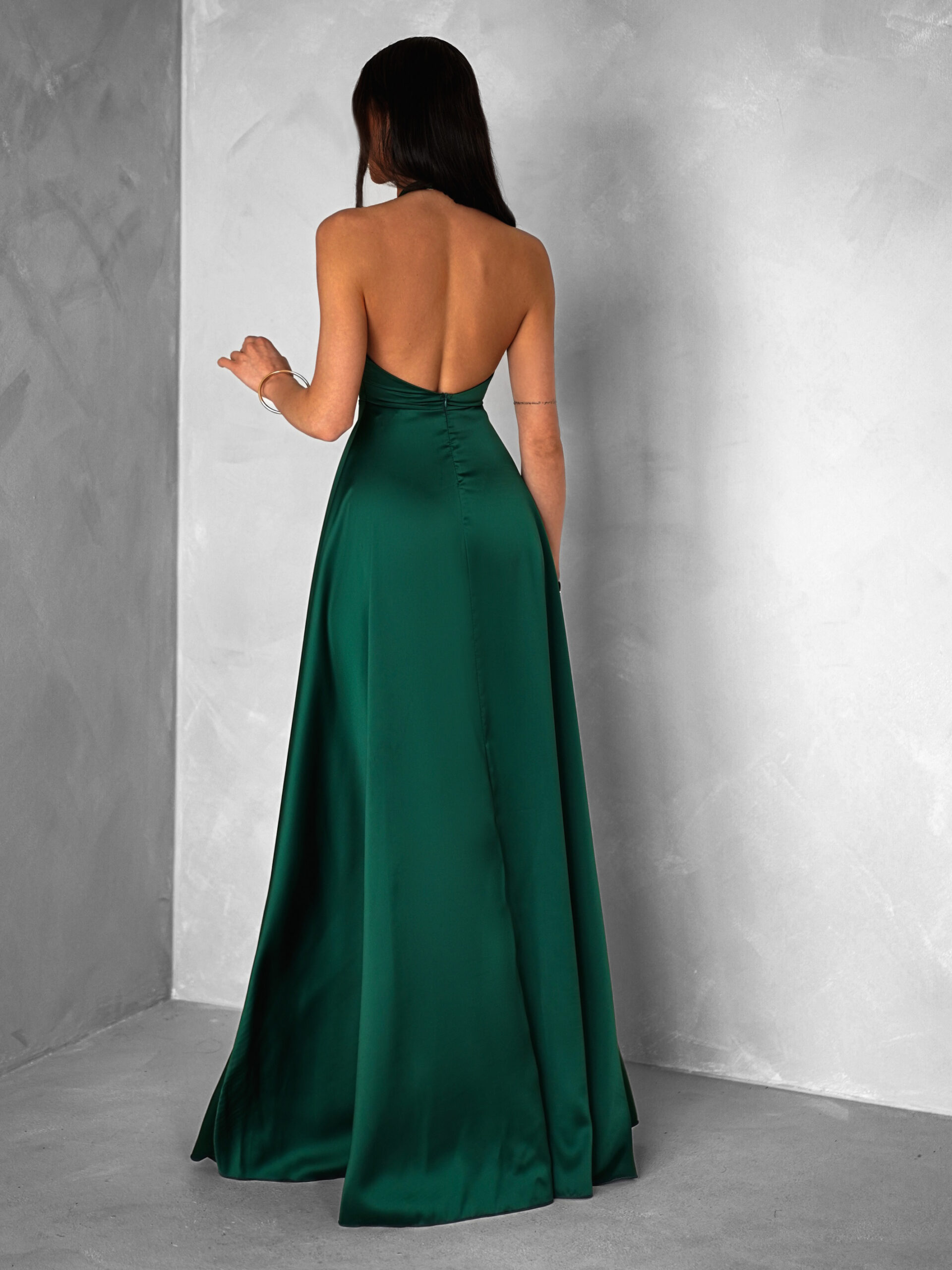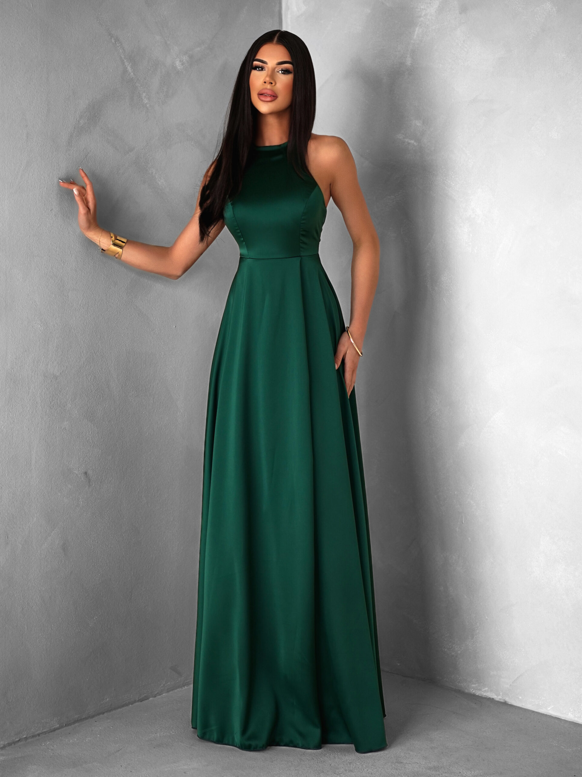 Smaragdové dlouhé saténové šaty HAMBUR Velikost: ONESIZE