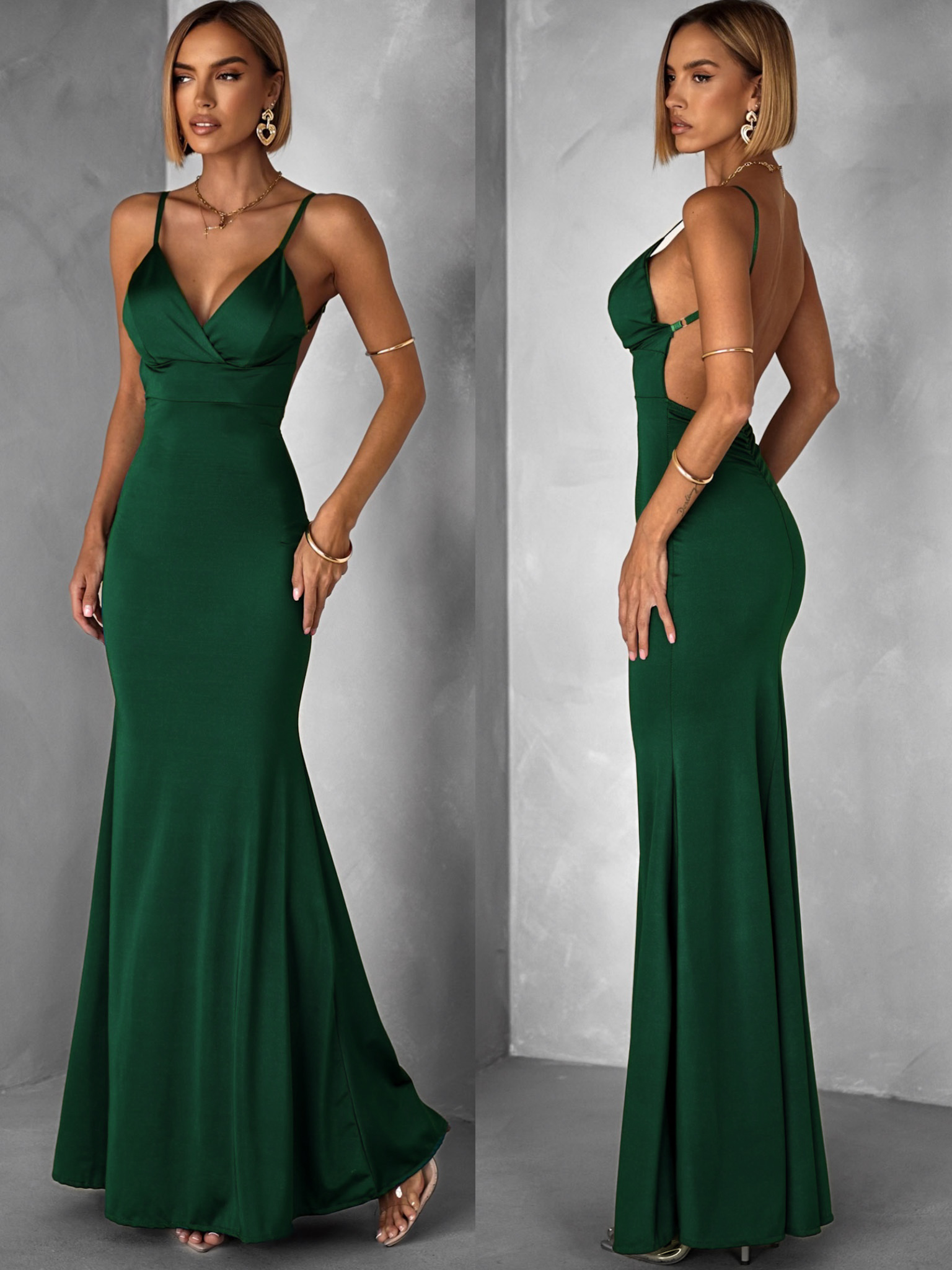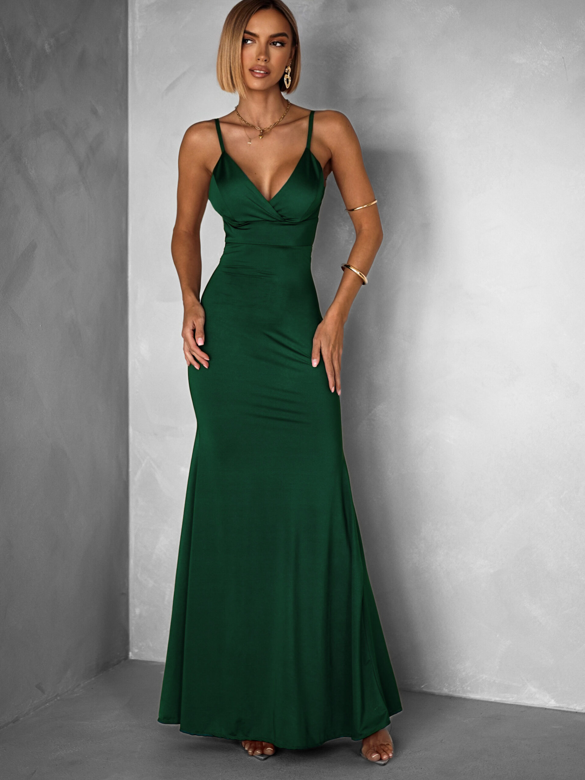 Smaragdové dlouhé saténové šaty MARSELLE Velikost: ONESIZE