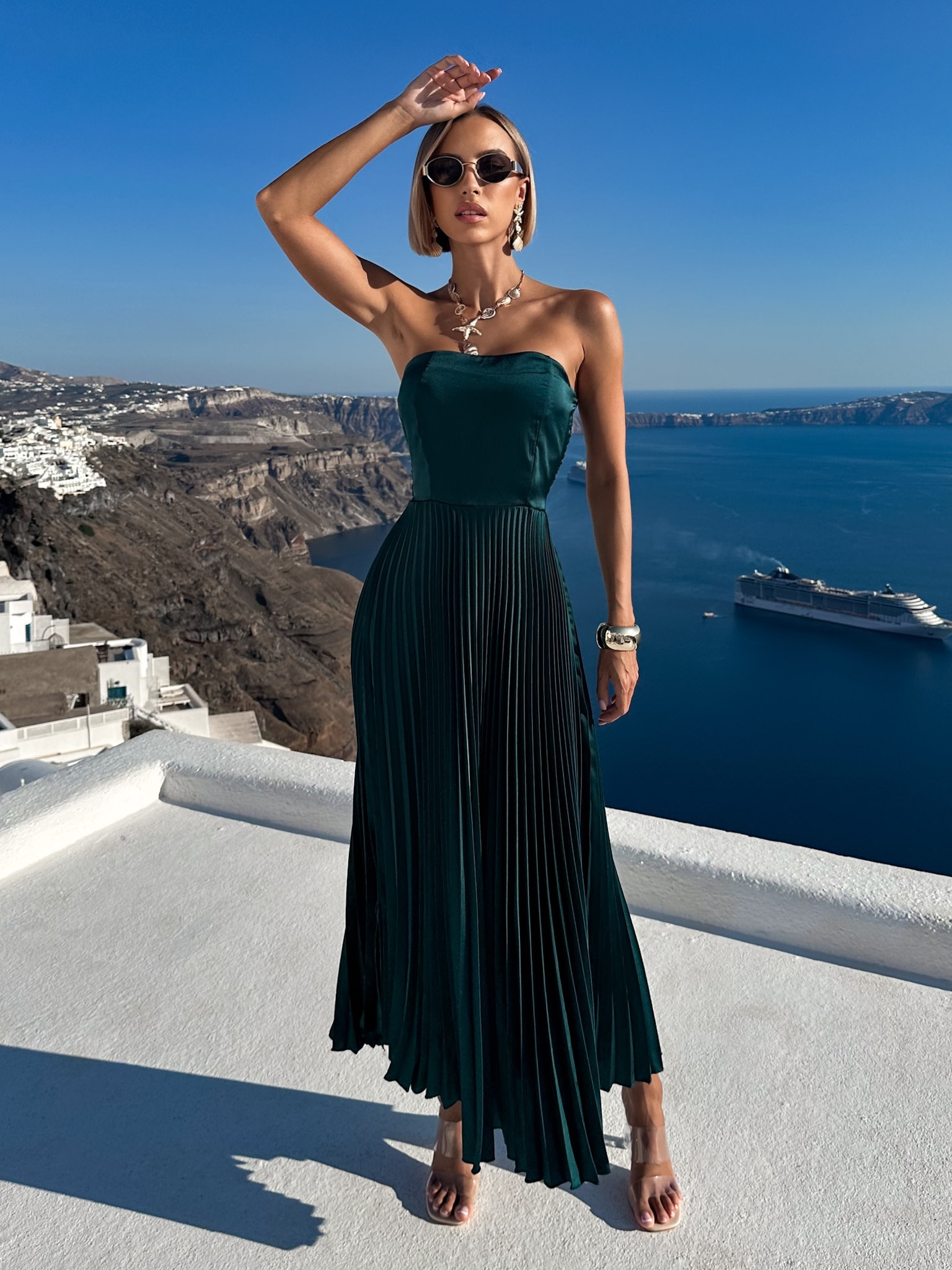 Smaragdové letní plisované šaty CAPRIE bez ramínek Velikost: ONESIZE