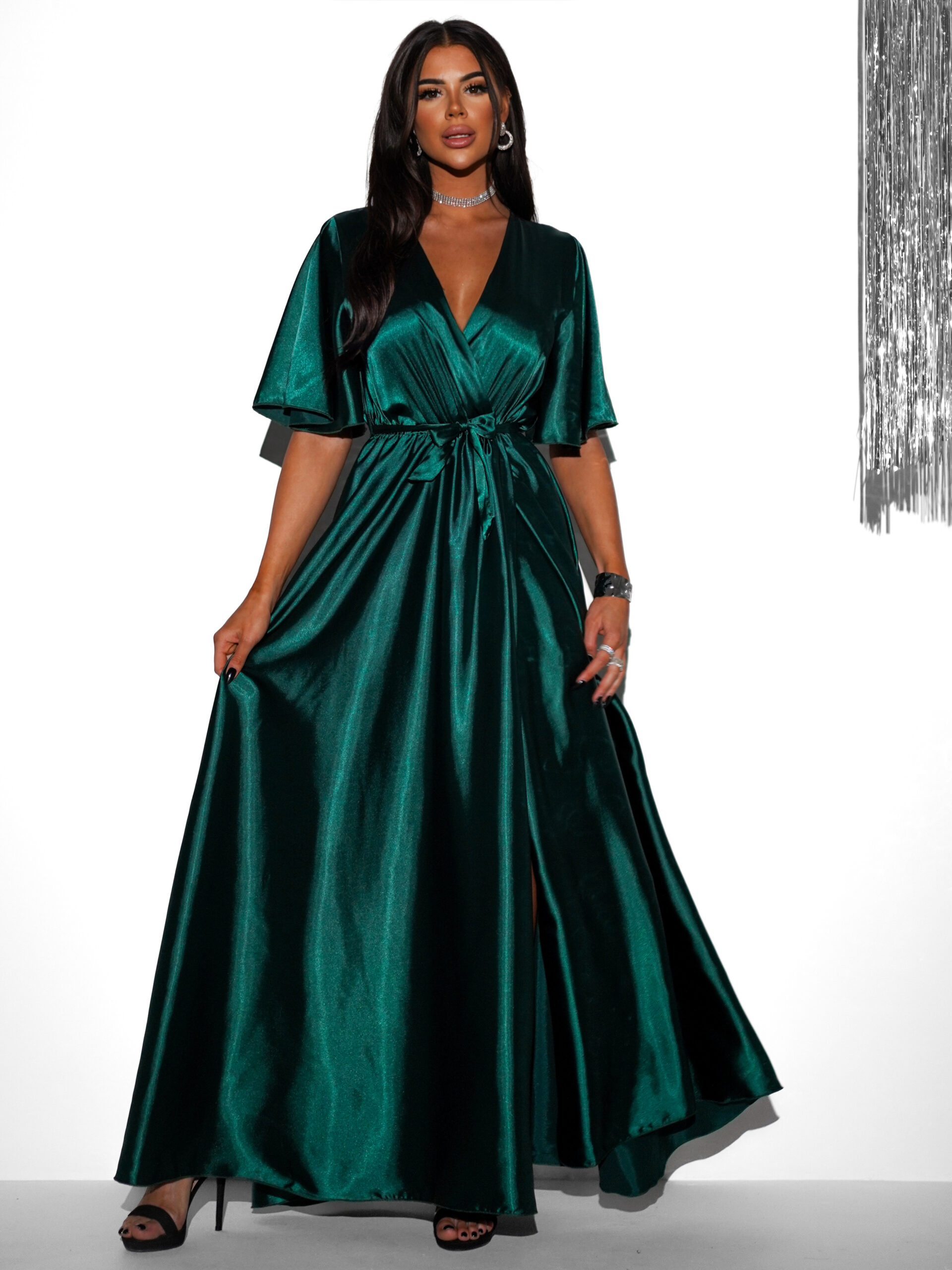 Smaragdové saténové dlouhé šaty GO HOME s výstřihem Velikost: ONESIZE