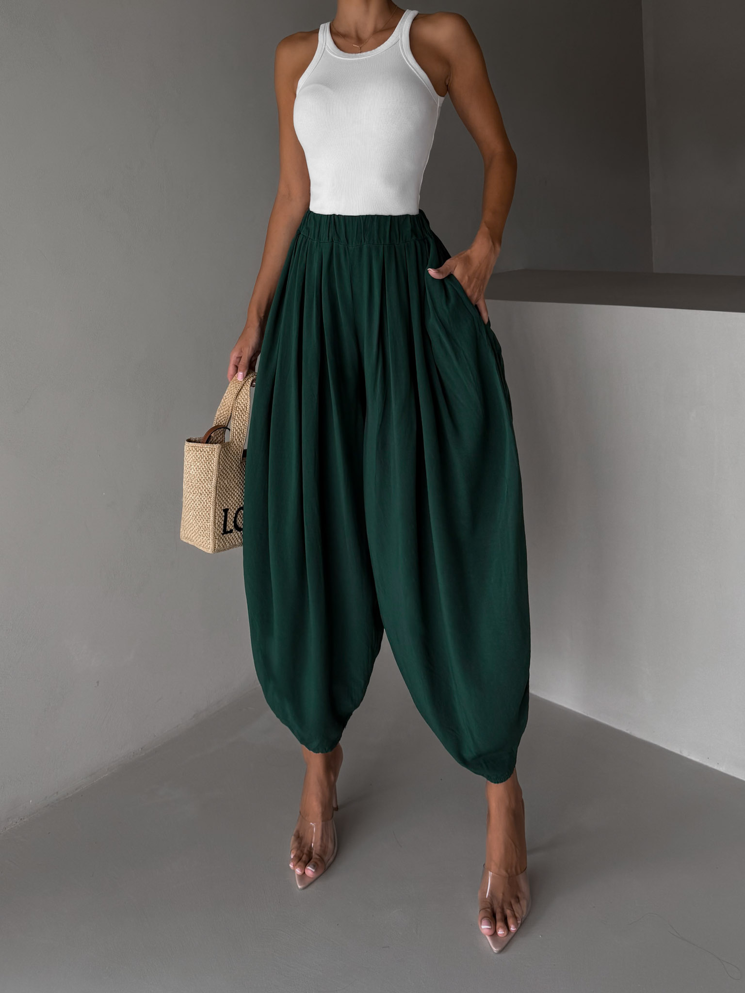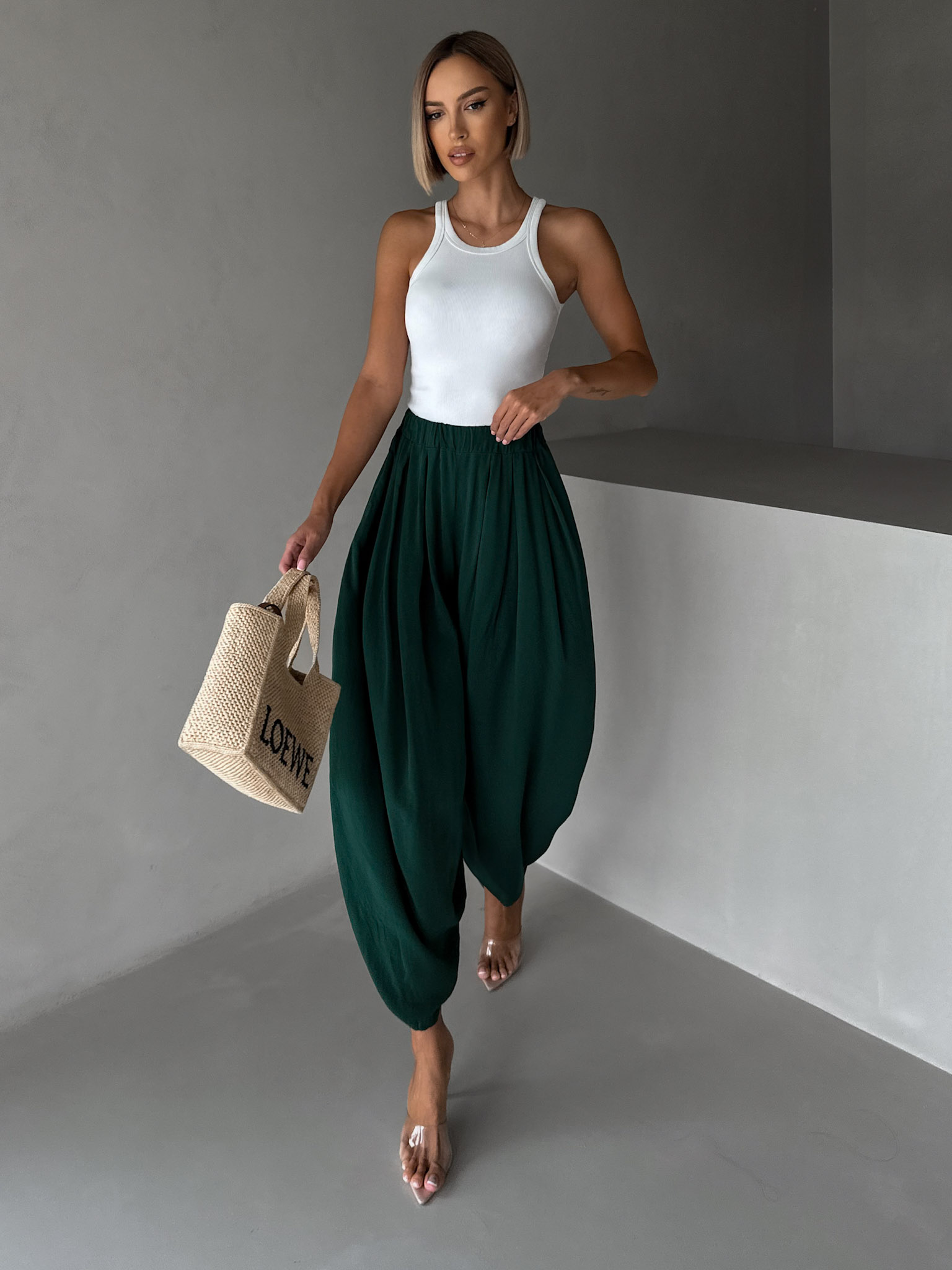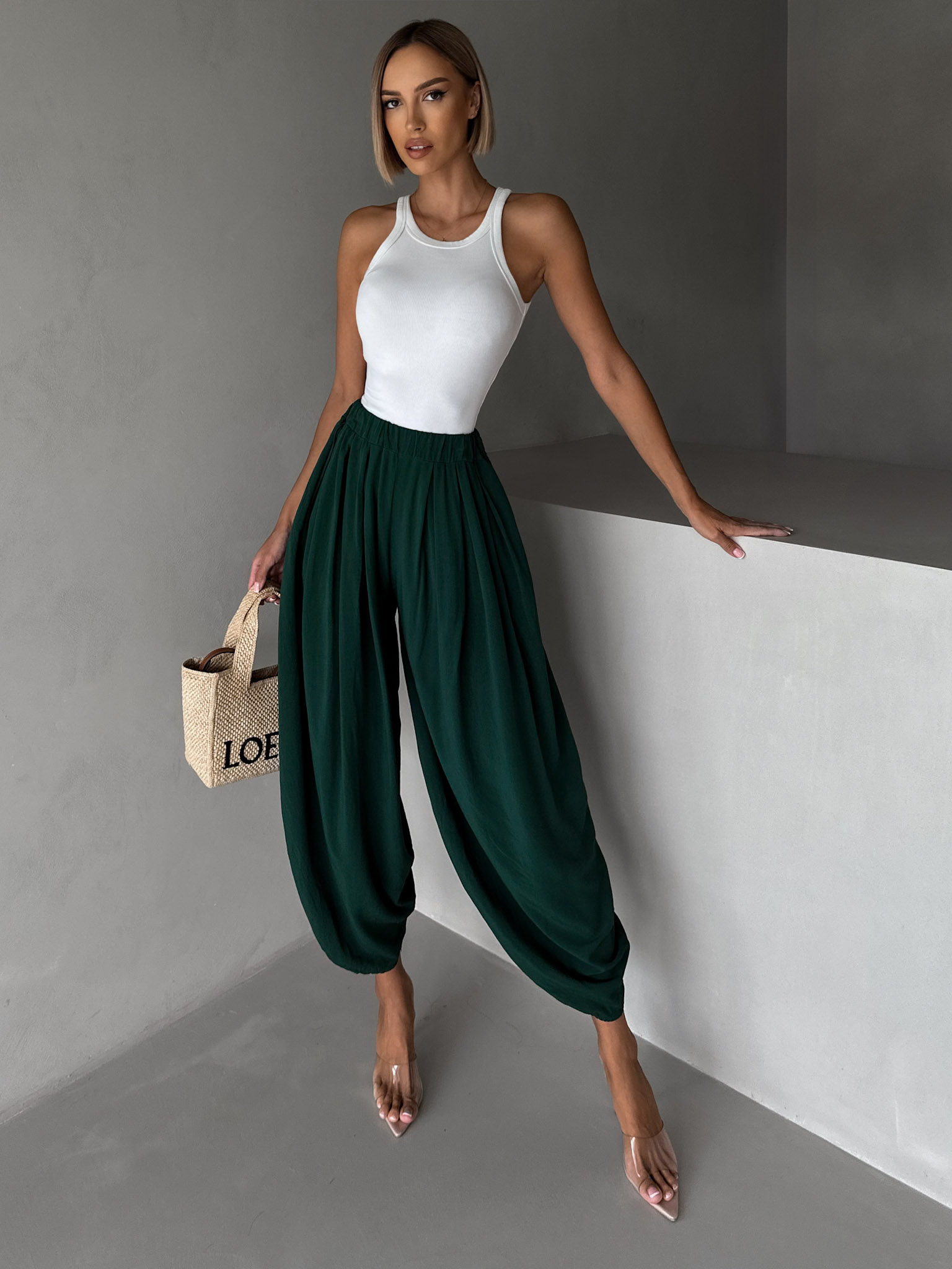 Smaragdové široké harémové vzdušné kalhoty MYRAEL Velikost: ONESIZE