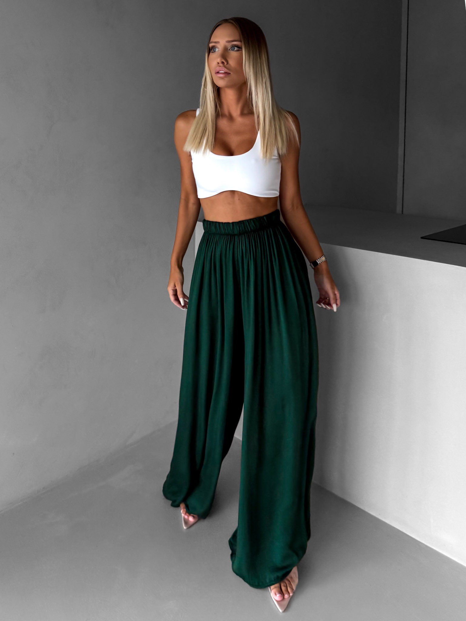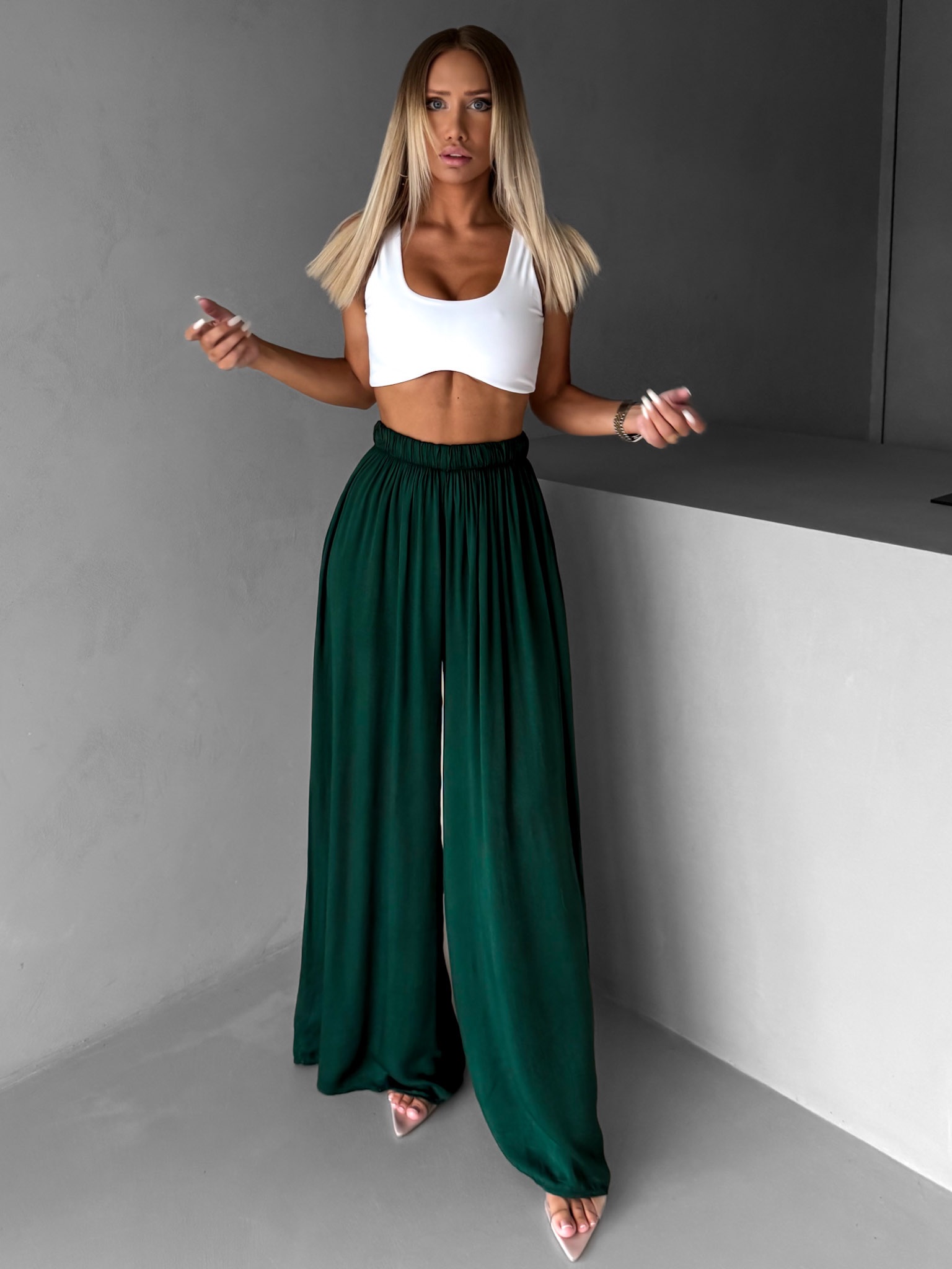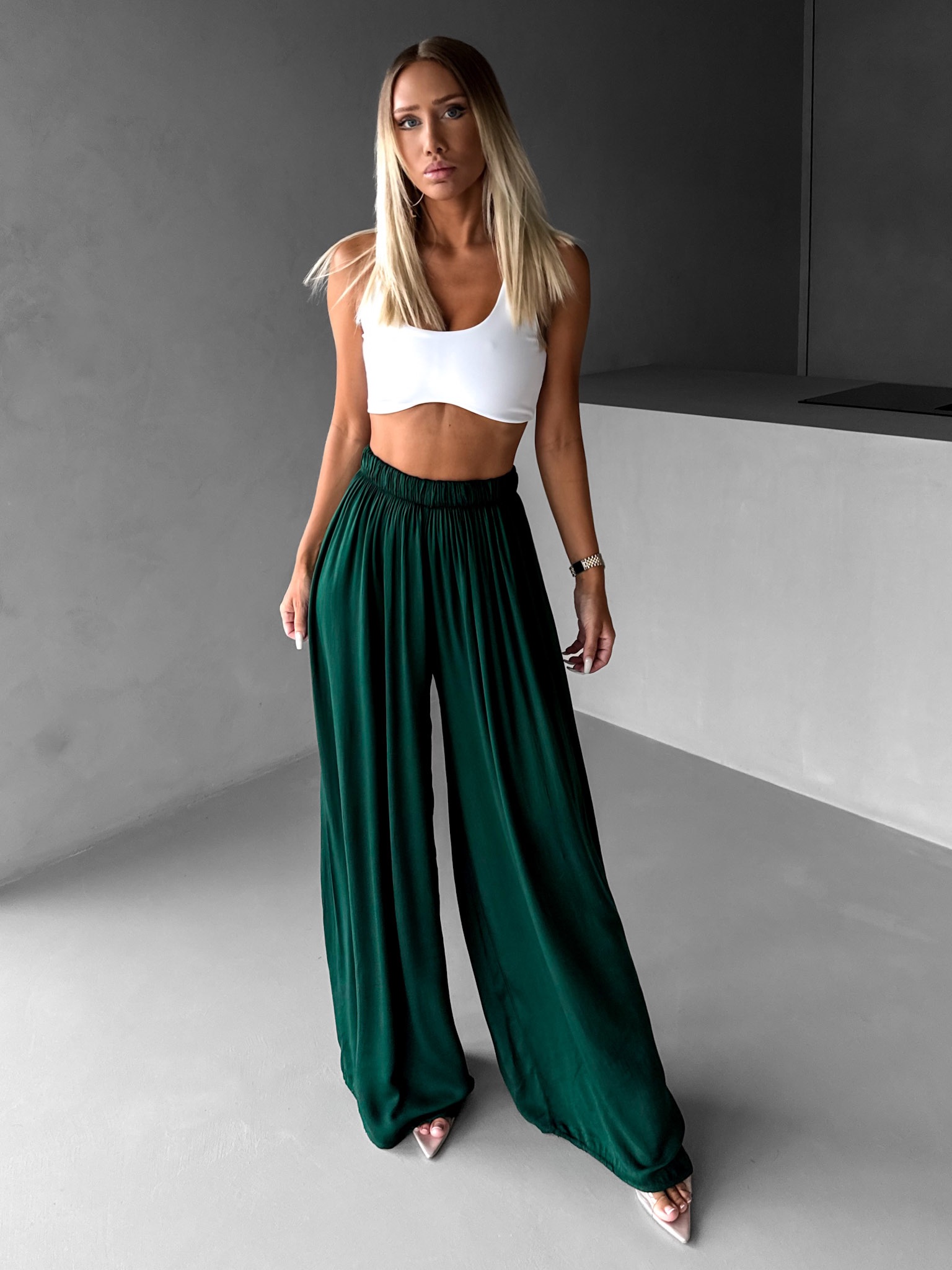 Smaragdové široké volné dlouhé kalhoty OLVIRA Velikost: Prodloužená délka
