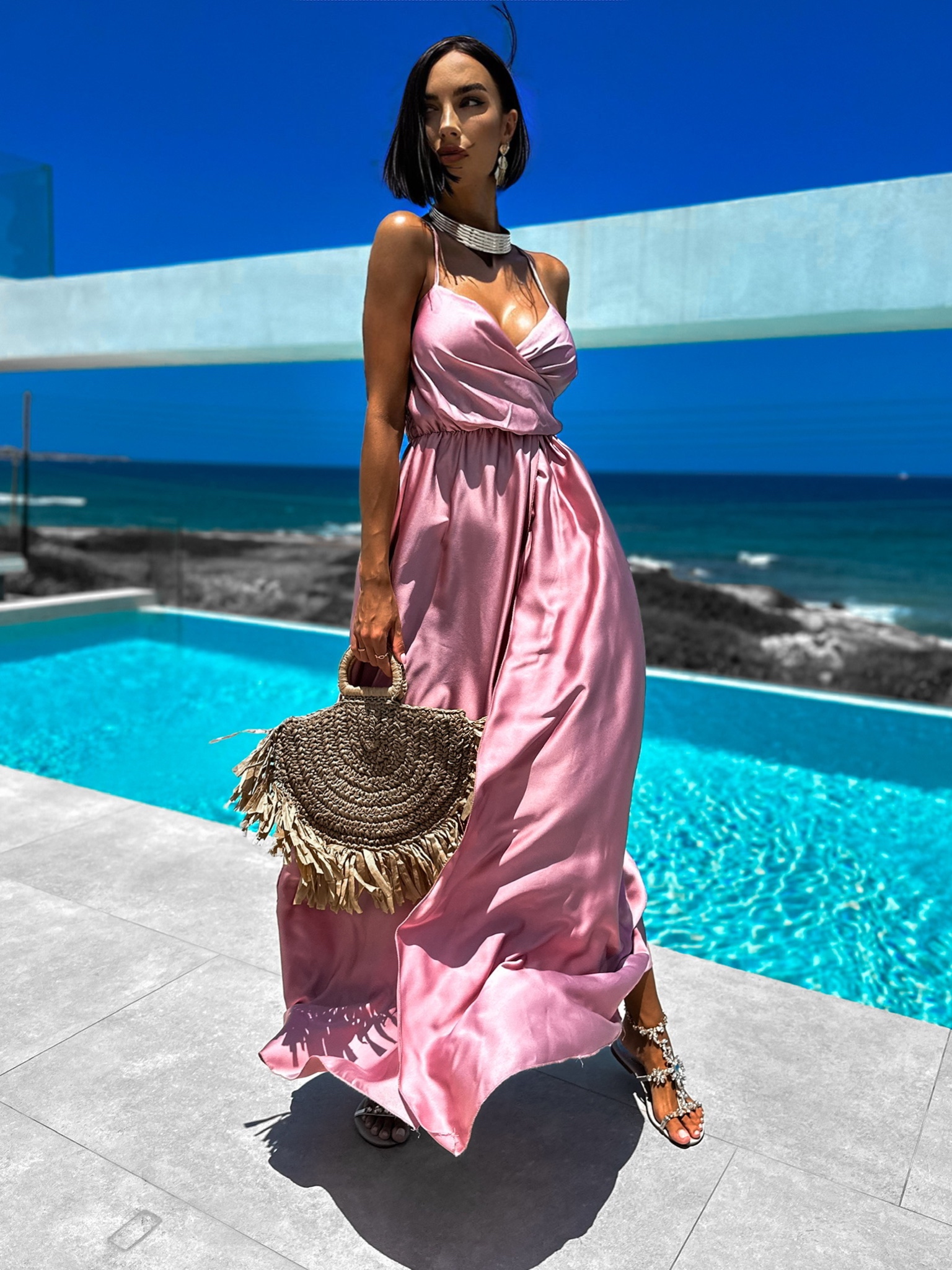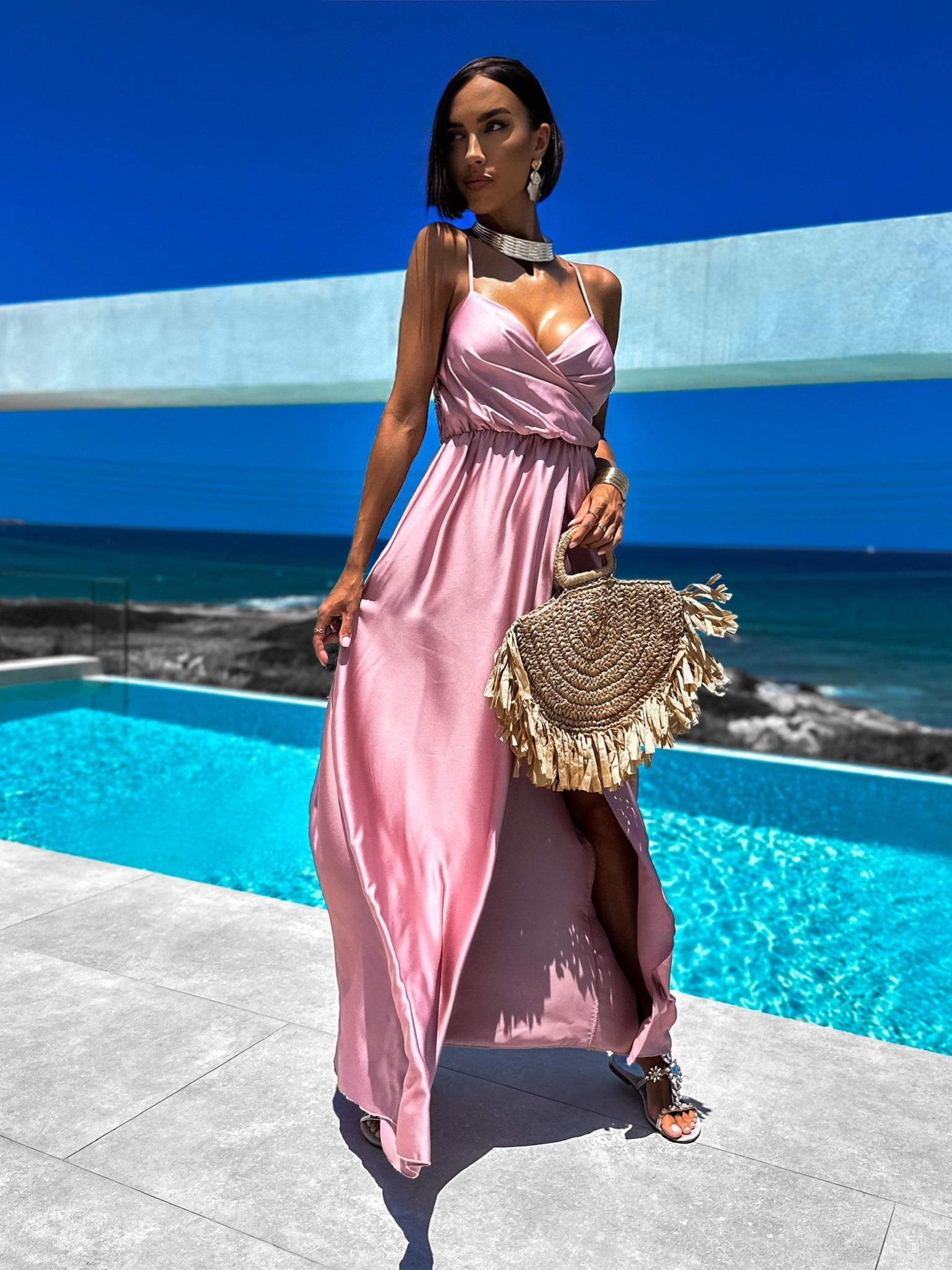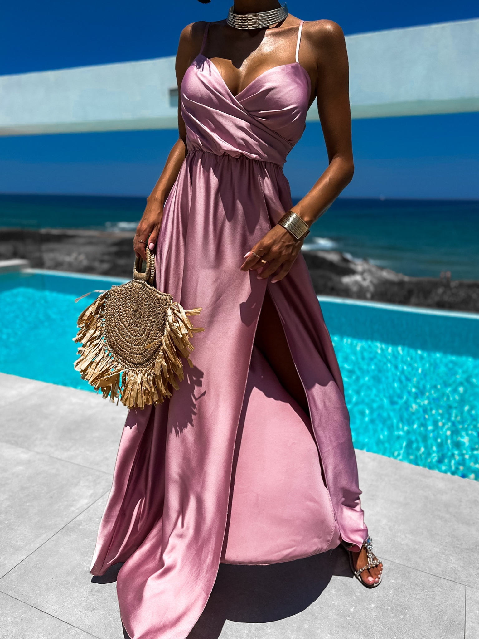Starorůžové elegantní šaty PATILLA s rozparkem Velikost: ONESIZE