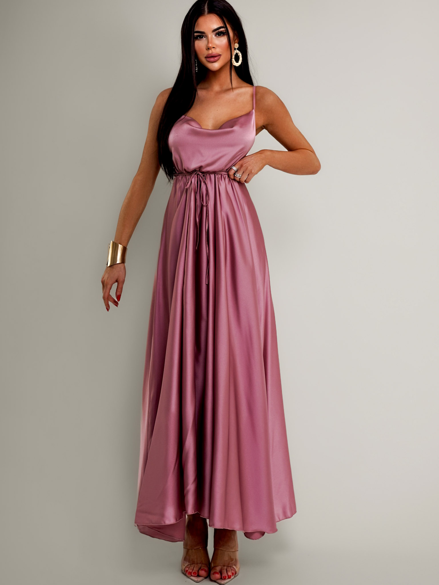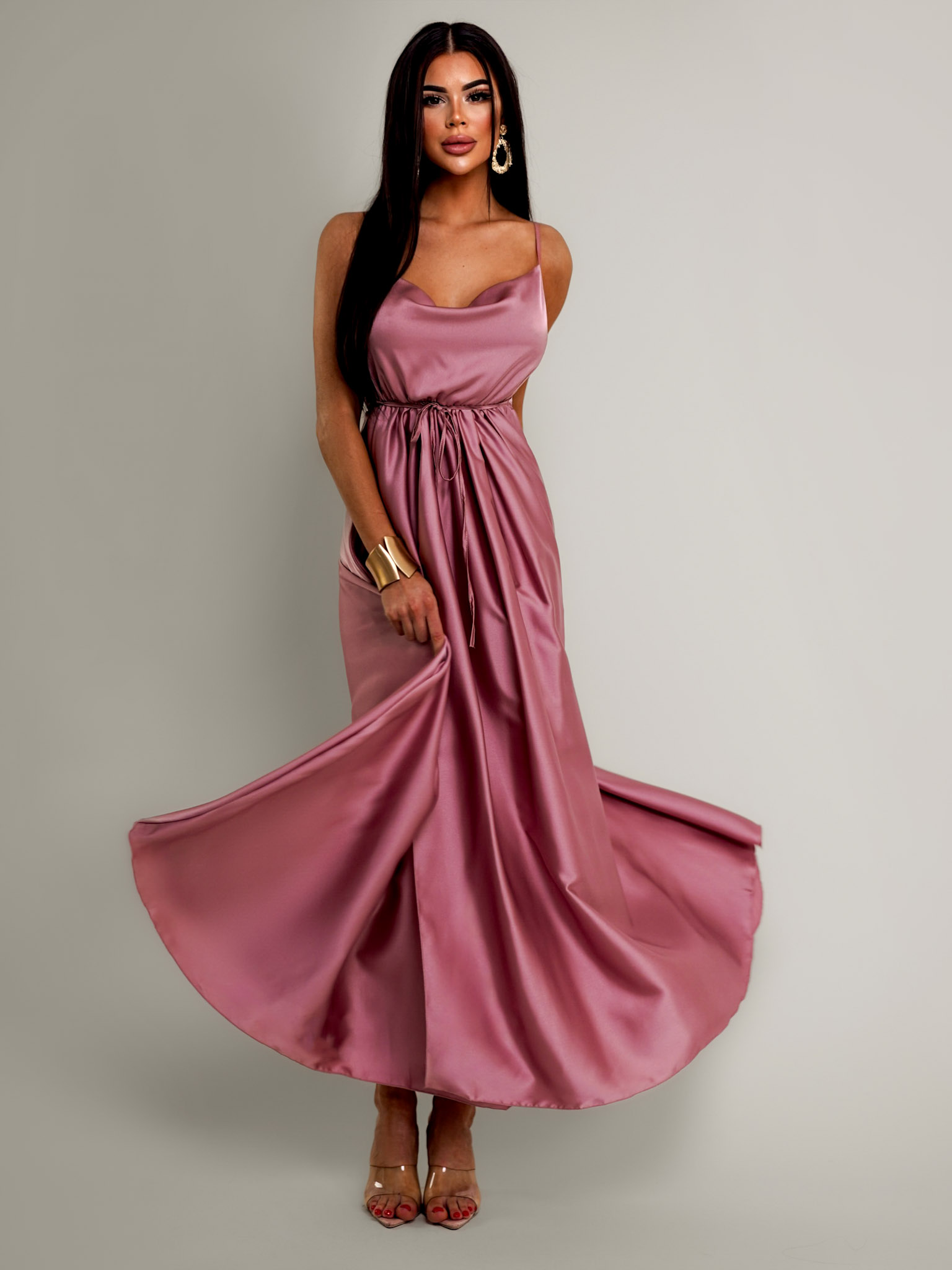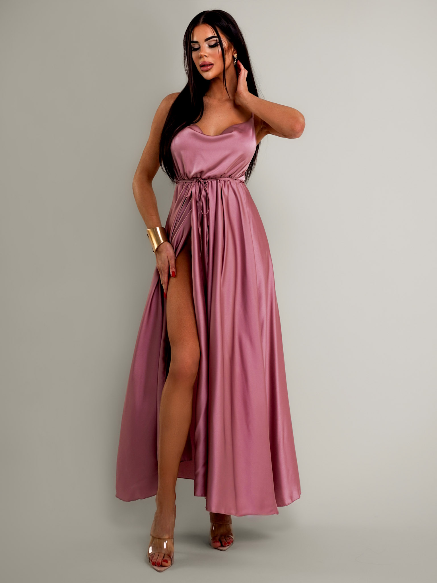 Starorůžové lesklé elegantní šaty YASMINE s rozparkem Velikost: ONESIZE