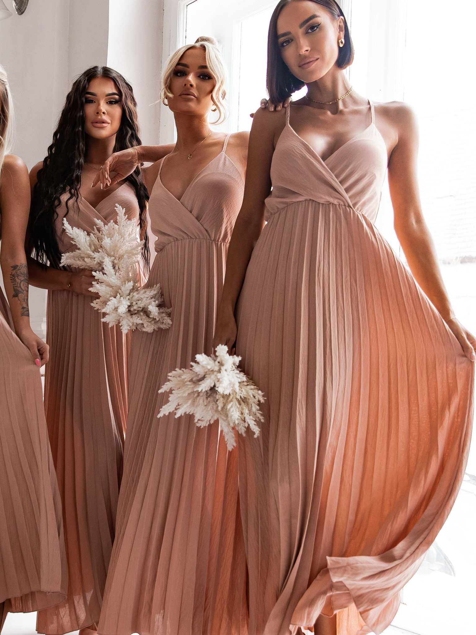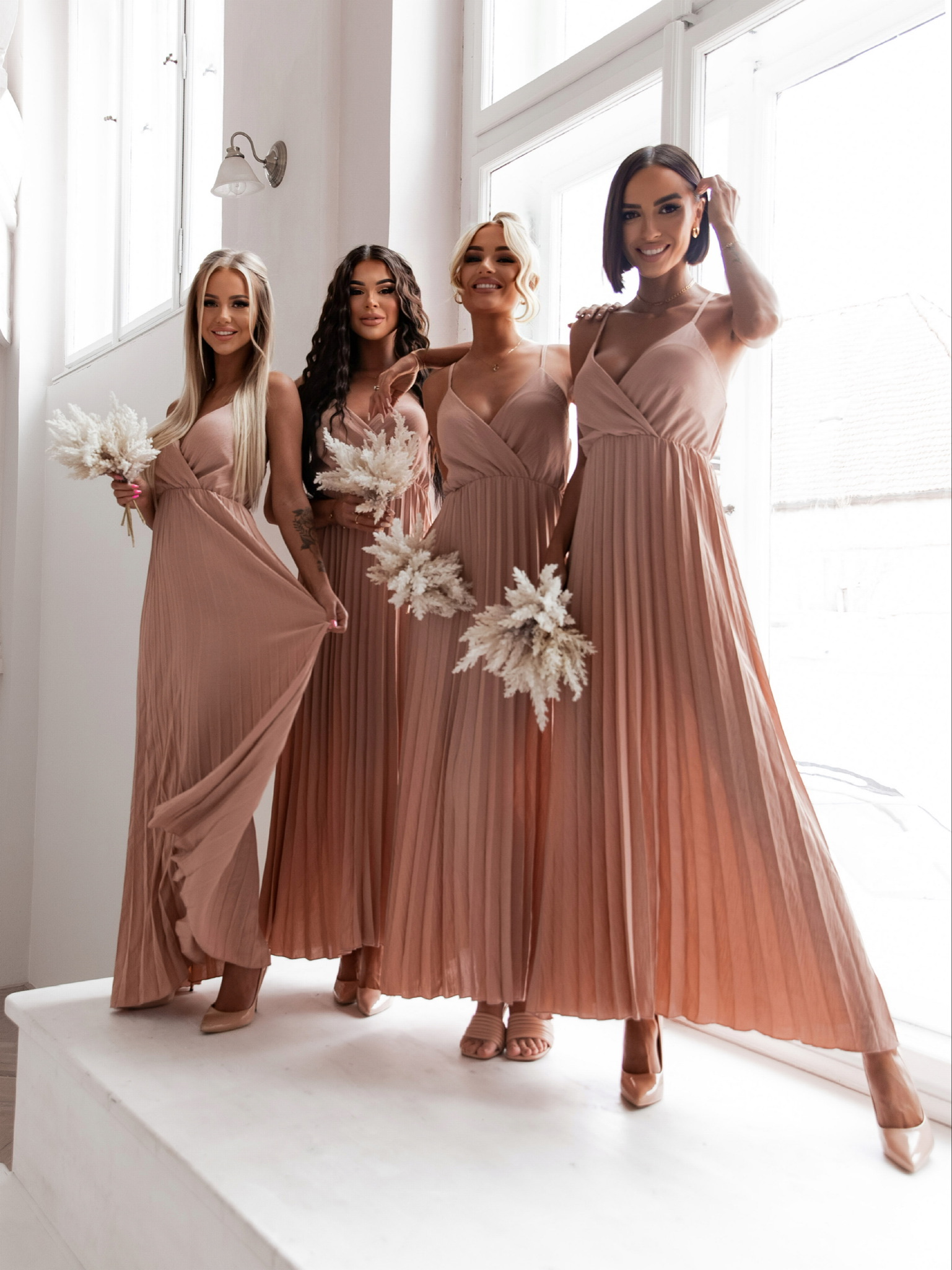 Šaty Sunshine jsou dokonalým příkladem elegance. Skládaná sukně dodává šatům dramatický vzhled a působí impozantně, zatímco ramínka zajišťují pohodlné nošení. Tyto šaty jsou ideální volbou nejen pro družičky, ale také na ples nebo letní dovolenou.