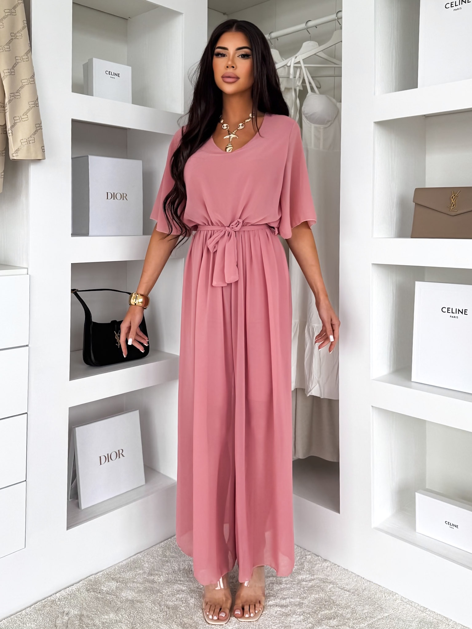 Starorůžový elegantní dlouhý společenský overal LEIRIA Velikost: ONESIZE