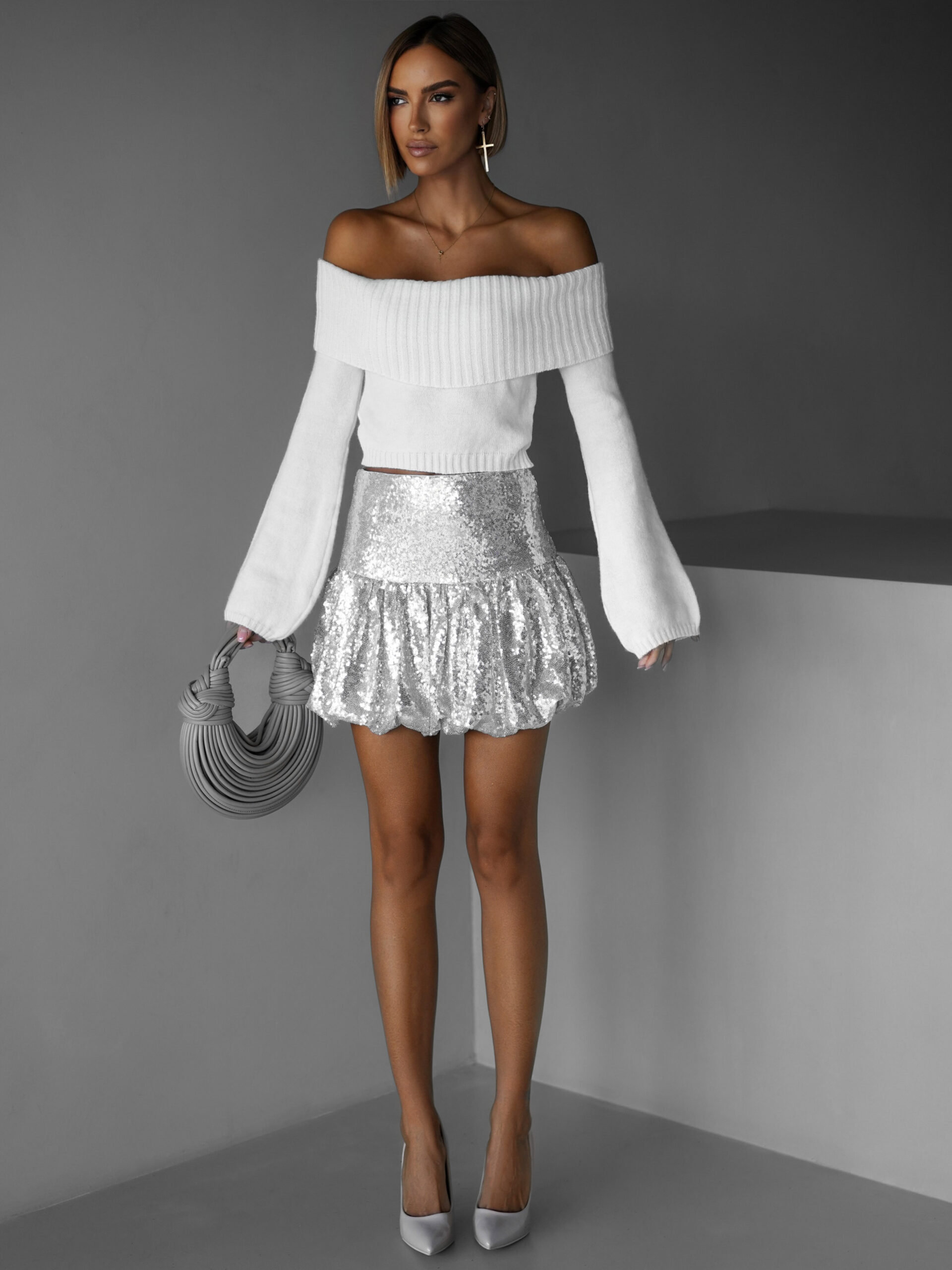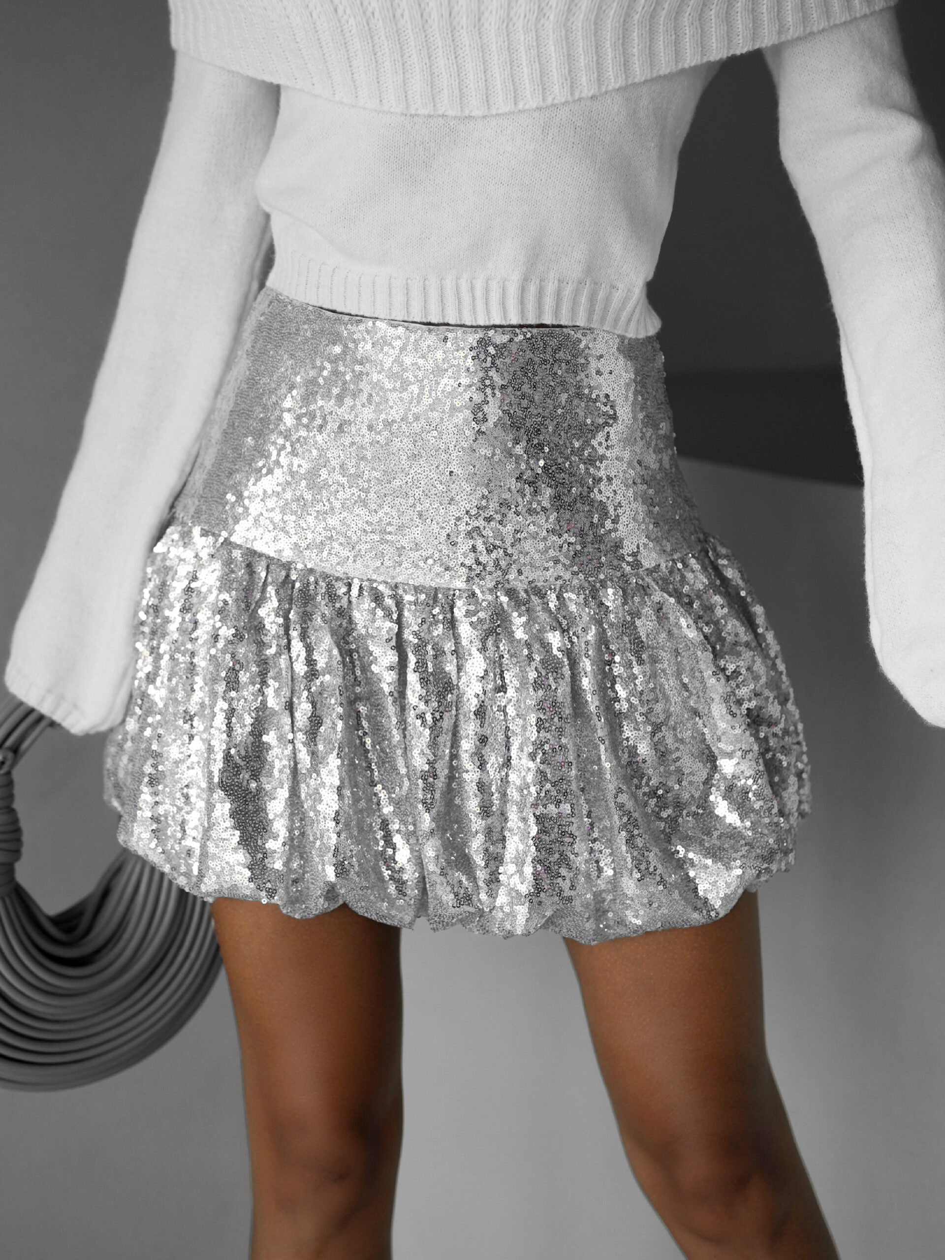 Stříbrná balónová flitrovaná sukně BRIGITTE Velikost: L