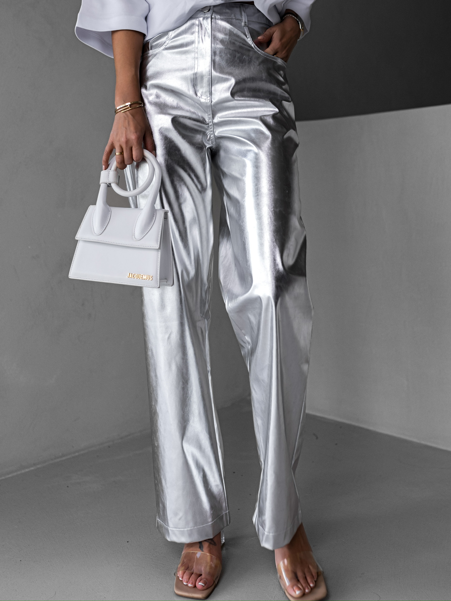 Stříbrné široké metalické kalhoty EMPU Velikost: S