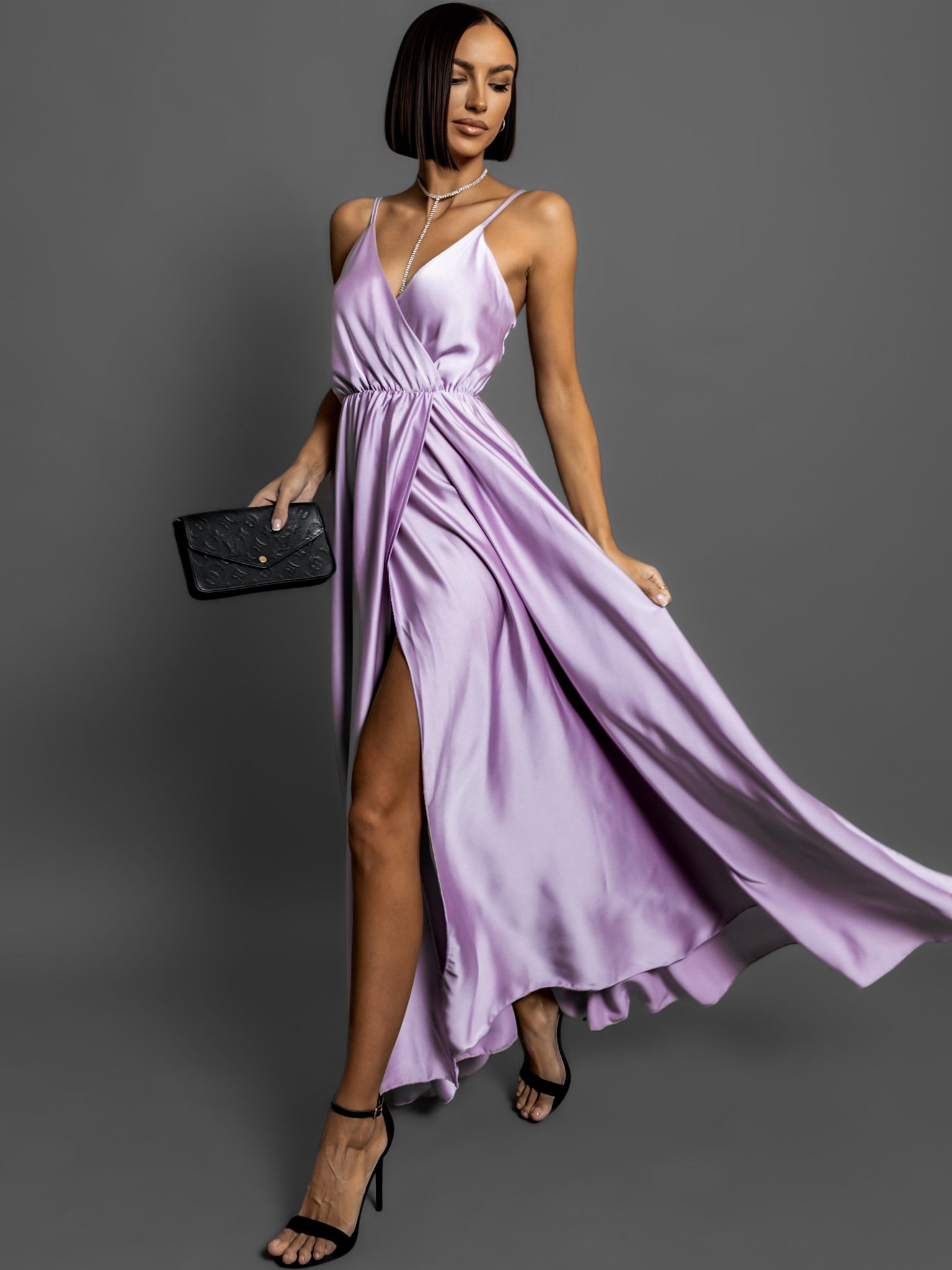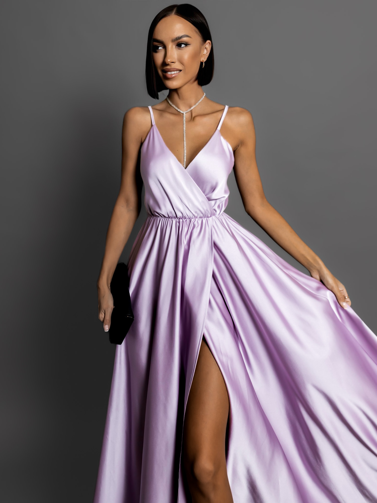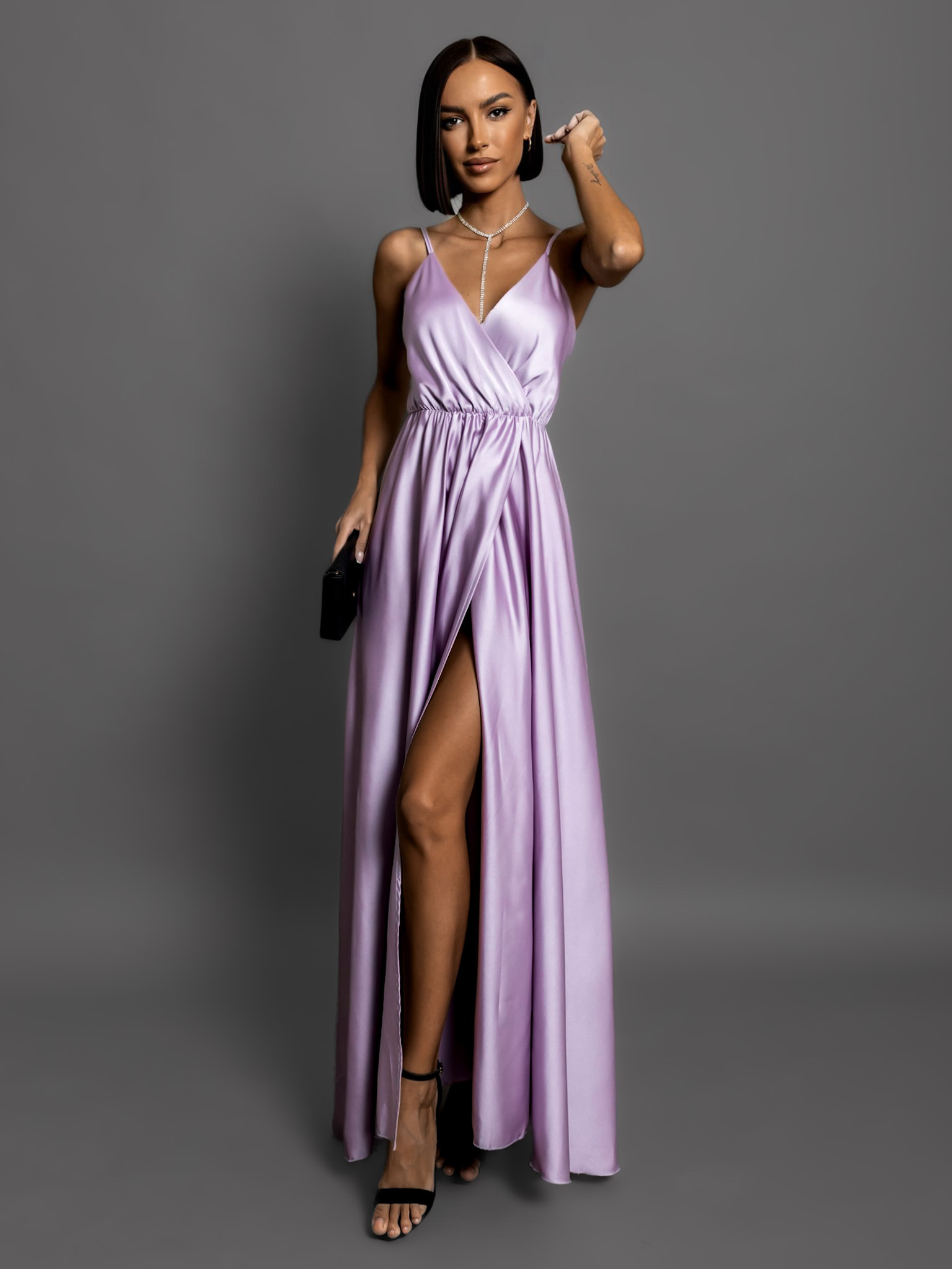 Světle fialové dlouhé saténové šaty PERFECTLY Velikost: ONESIZE