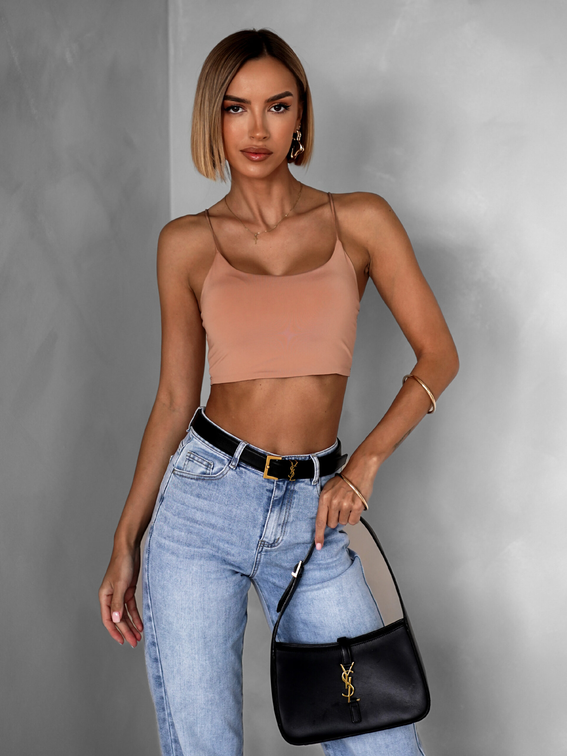 Světle hnědý basic krátké tílko ARRAXE na ramínka Velikost: ONESIZE