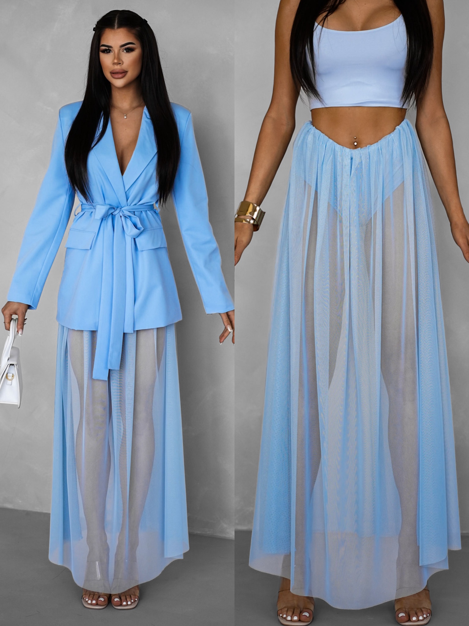 Světle modrá tylová transparentní sukně HARRYOL Velikost: ONESIZE