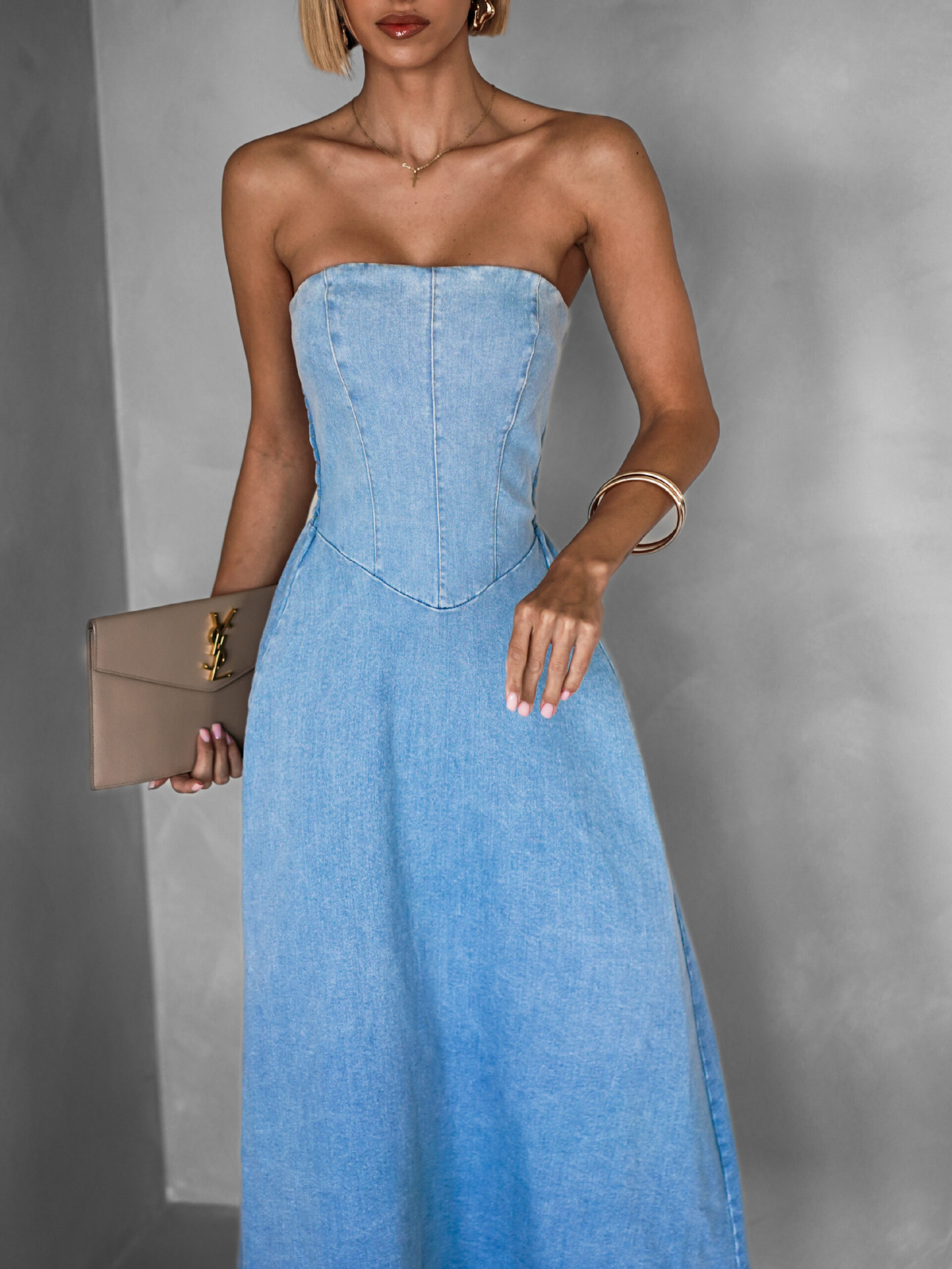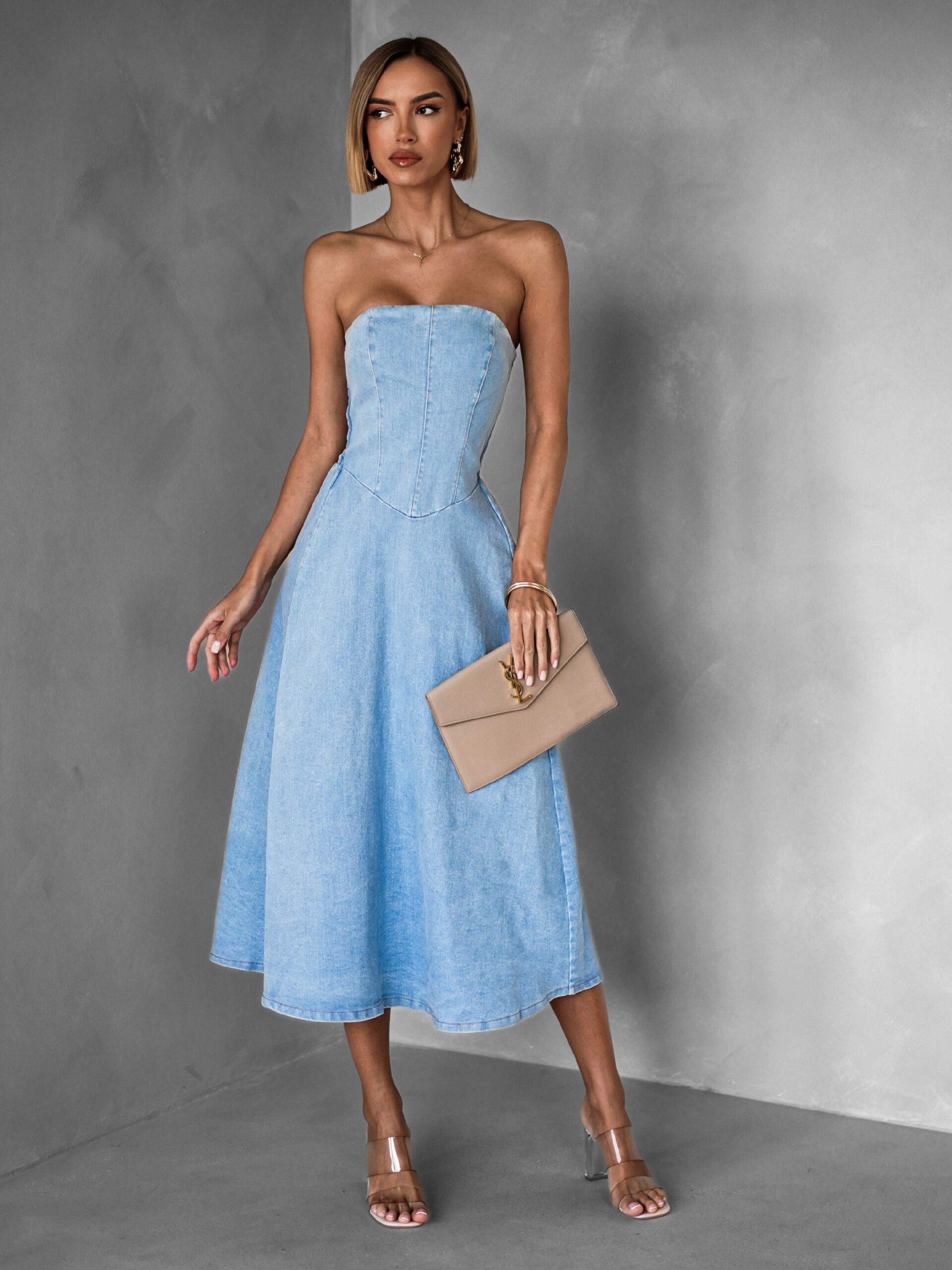 Světle modré džínové dlouhé šaty JEROME bez ramínek Velikost: ONESIZE