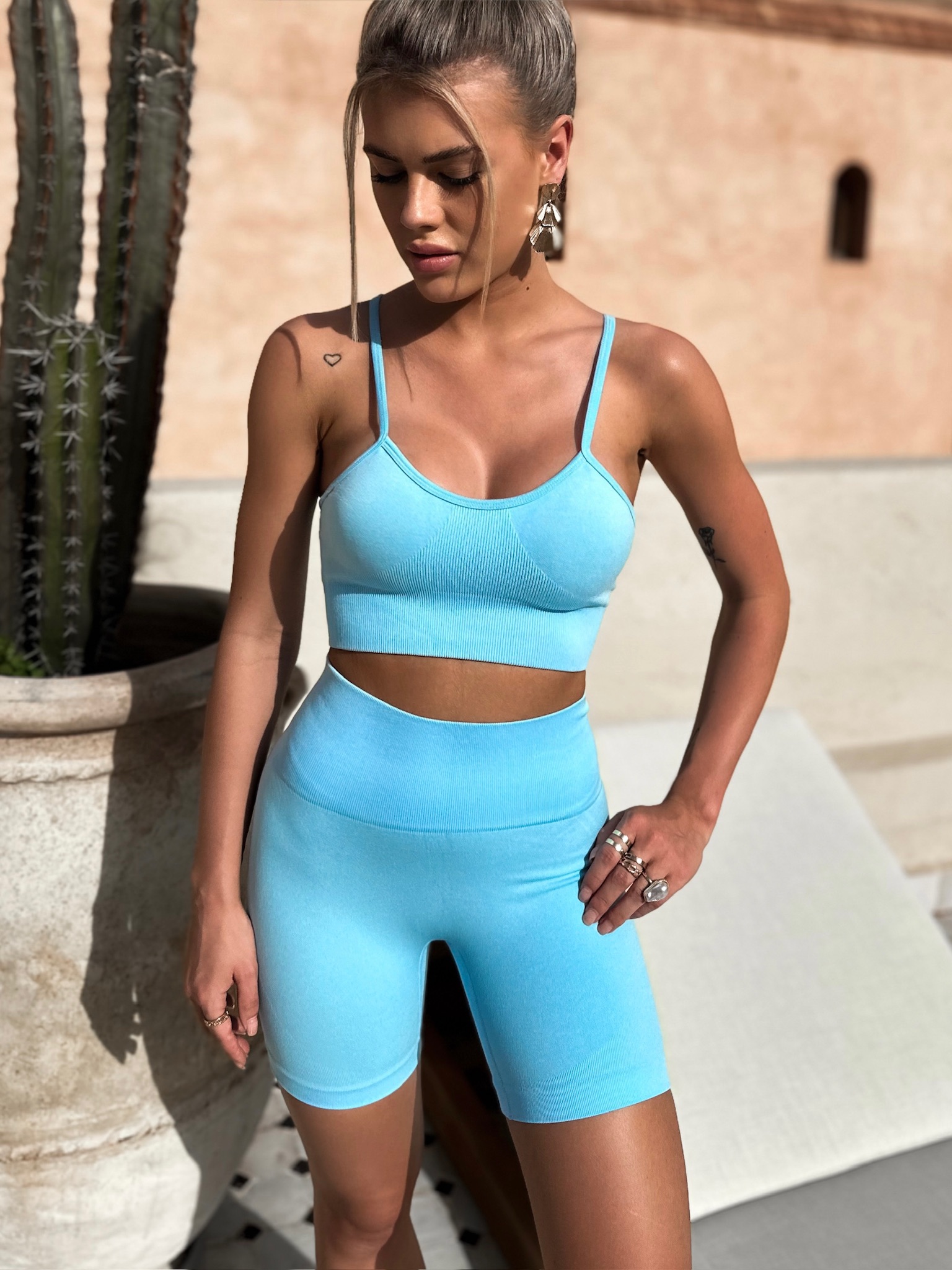 Světle modrý sportovní kraťasový komplet LETIS Velikost: M/L