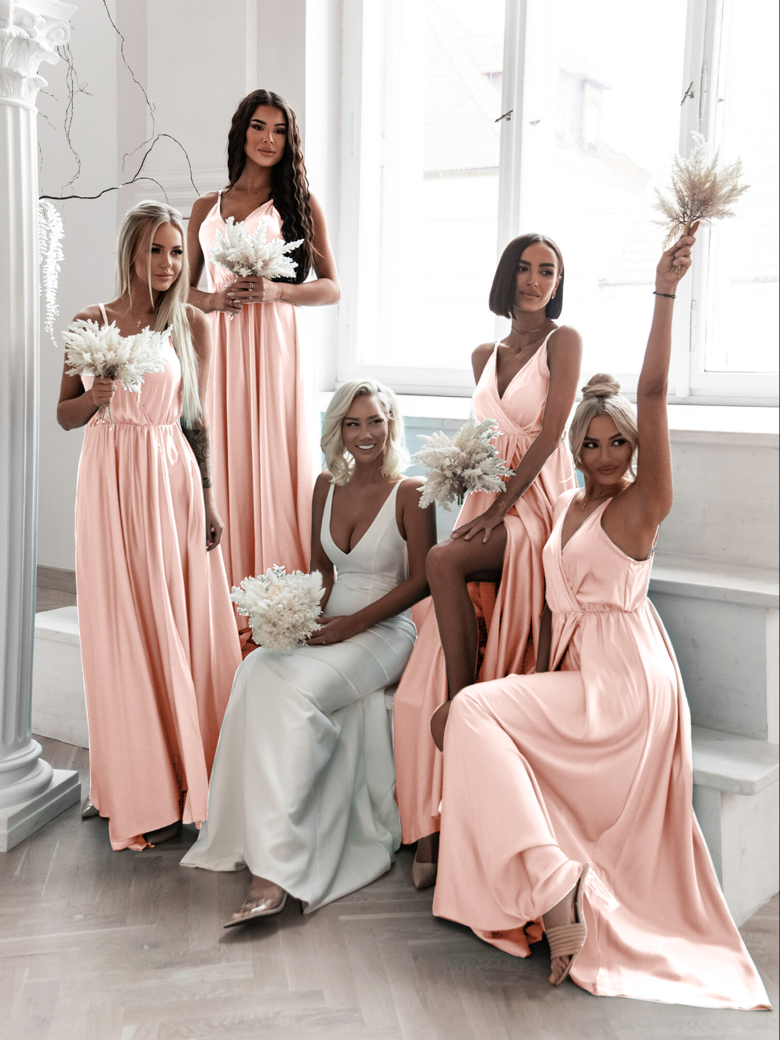 Světle růžové dlouhé lesklé šaty PERFECTLY pro družičky Velikost: ONESIZE