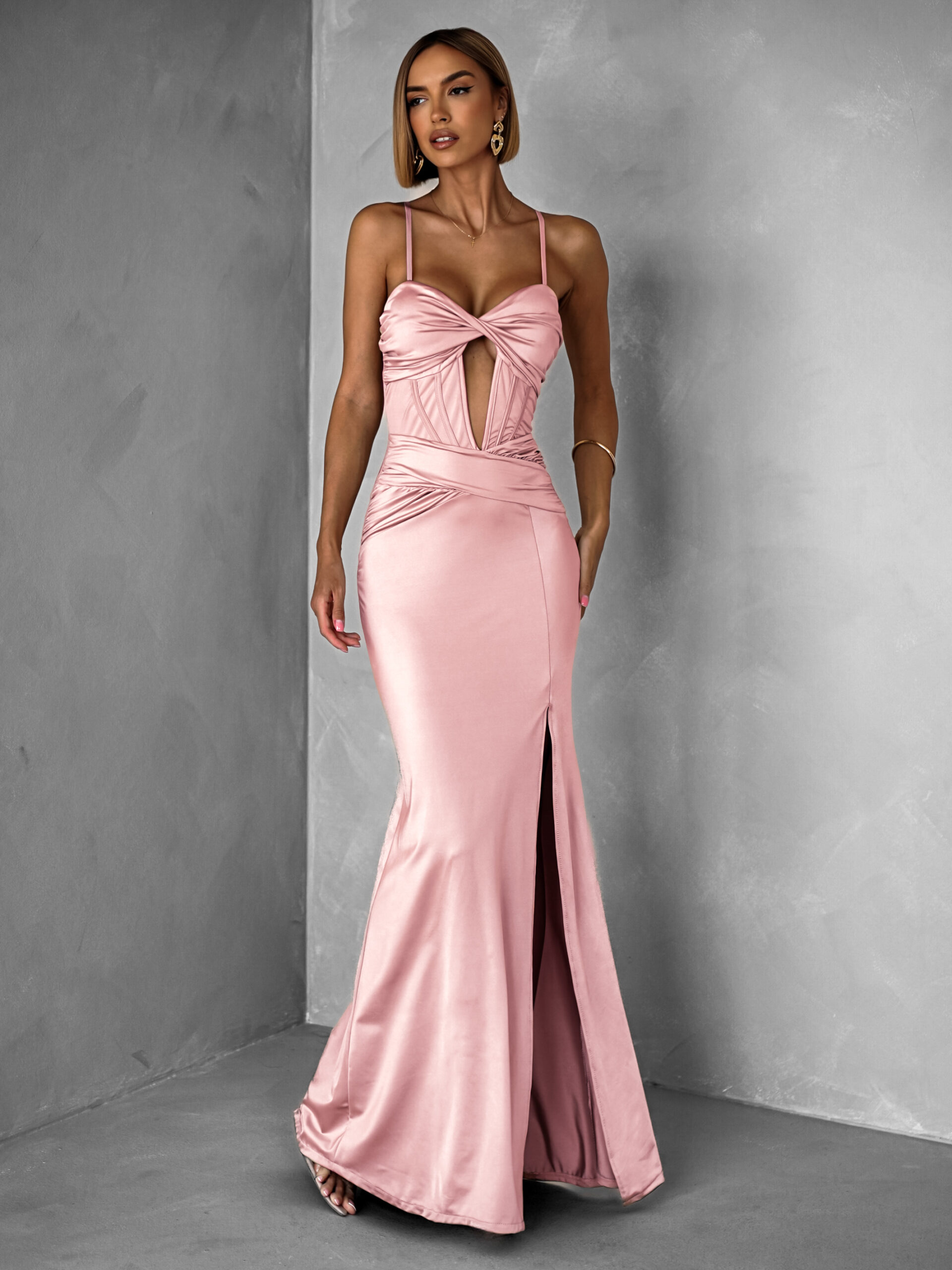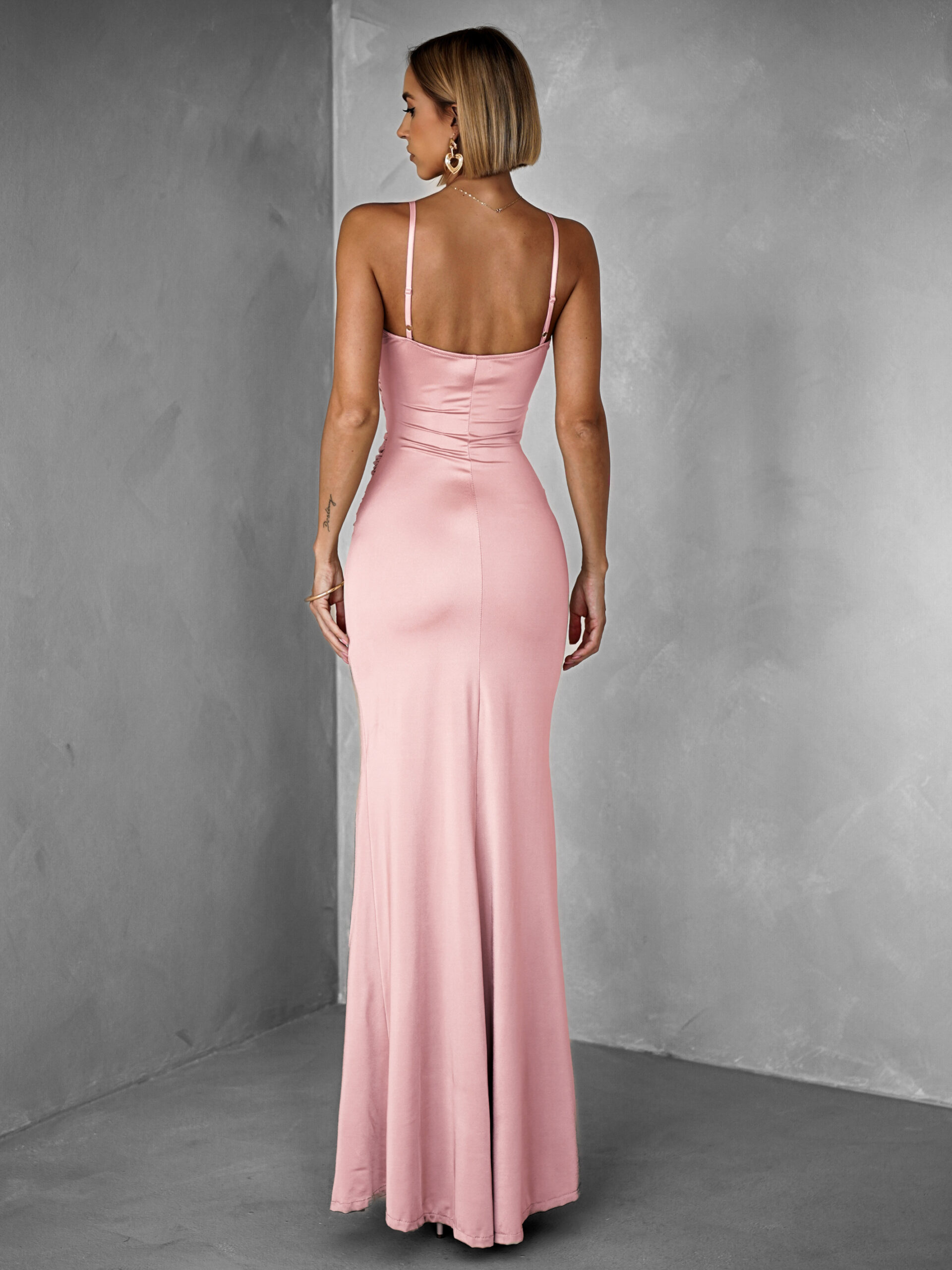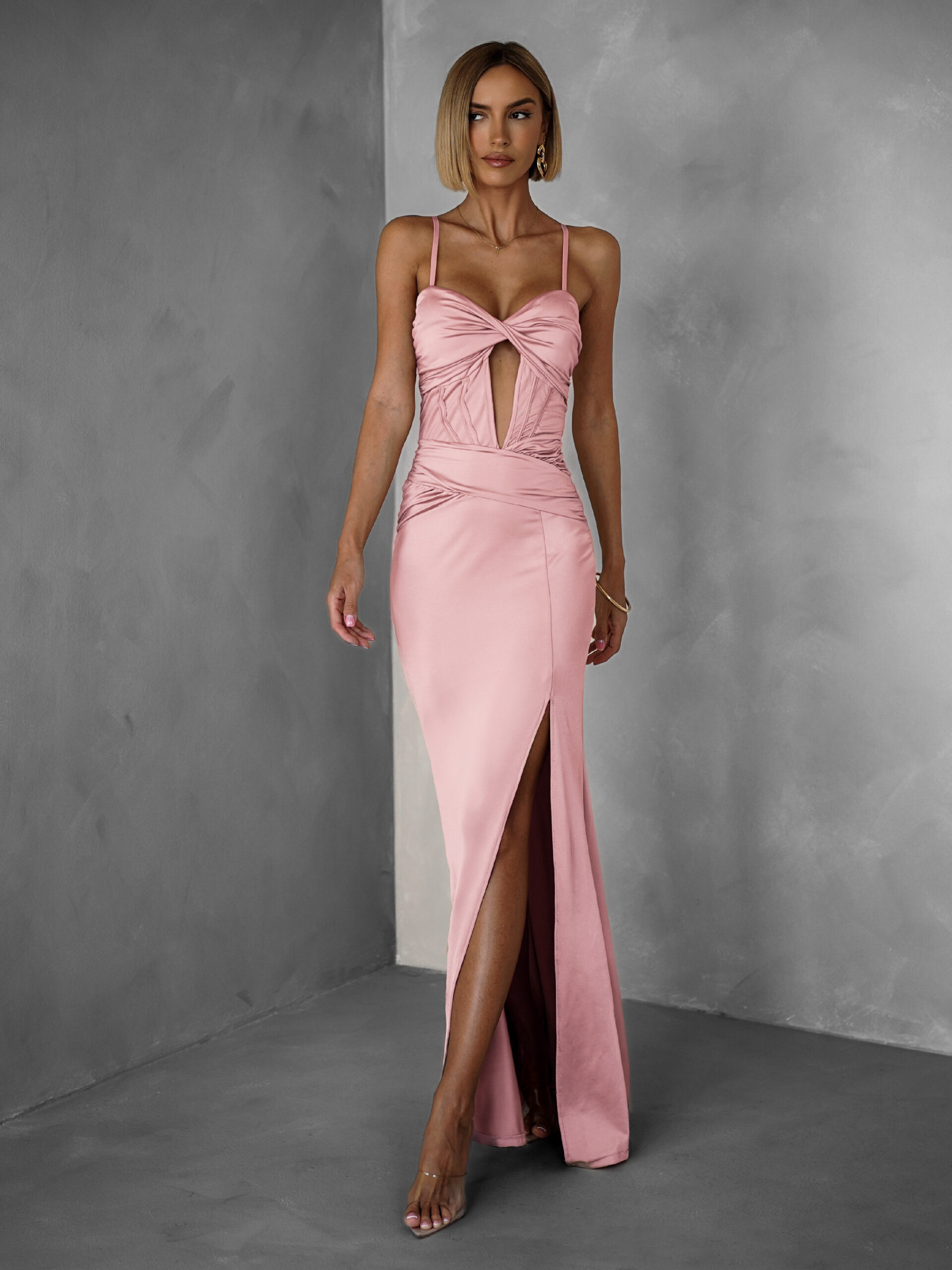Světle růžové dlouhé společenské šaty LIMONA s průstřihy Velikost: ONESIZE