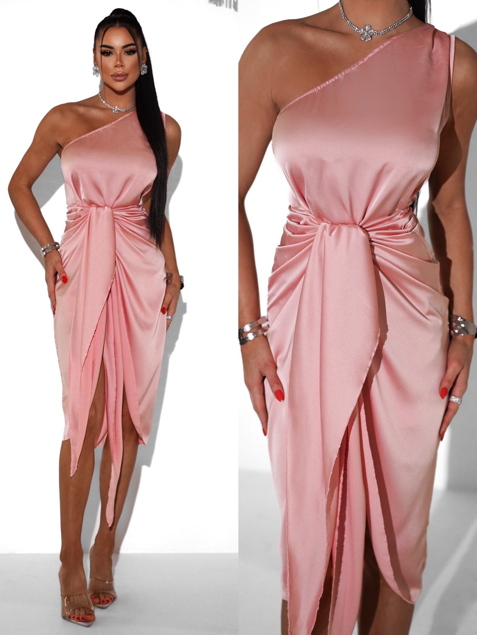 Světle růžové saténové šaty LIBIOSI na jedno rameno Velikost: ONESIZE