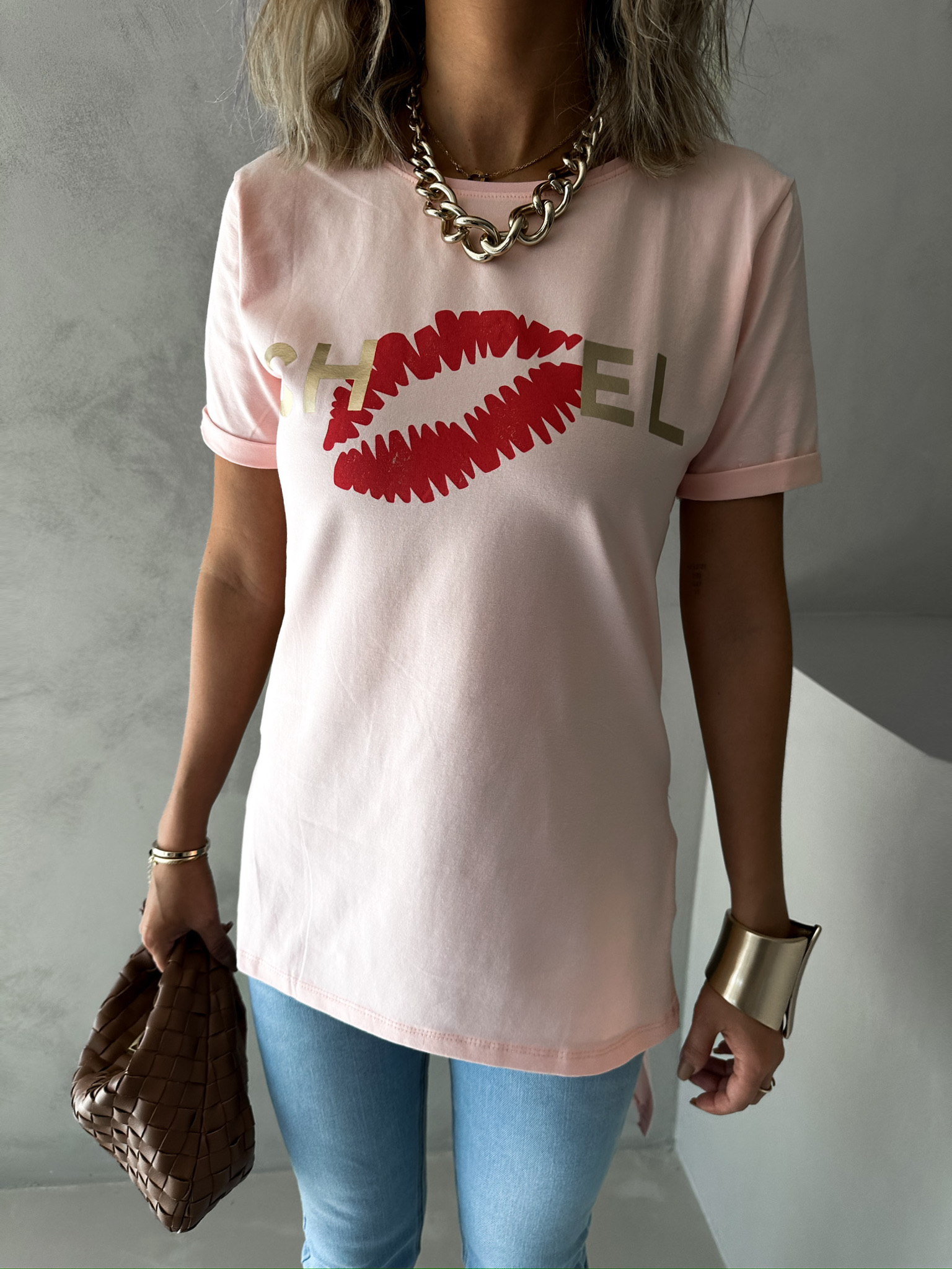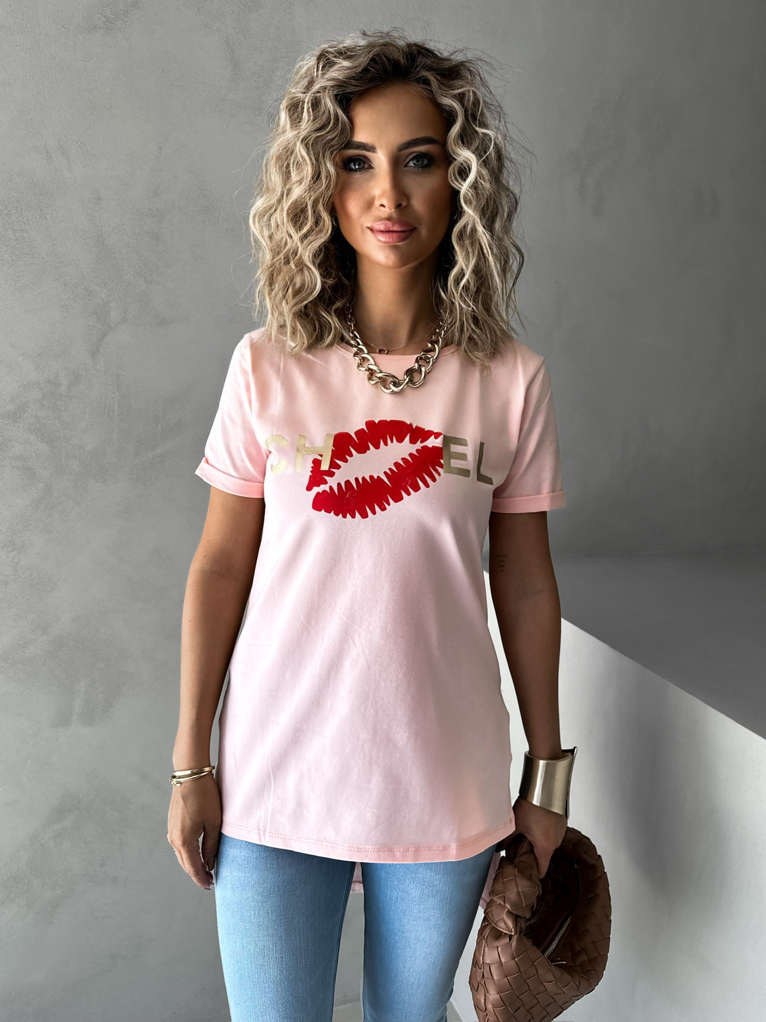 Světle růžové triko CHANELLO s potiskem Velikost: ONESIZE
