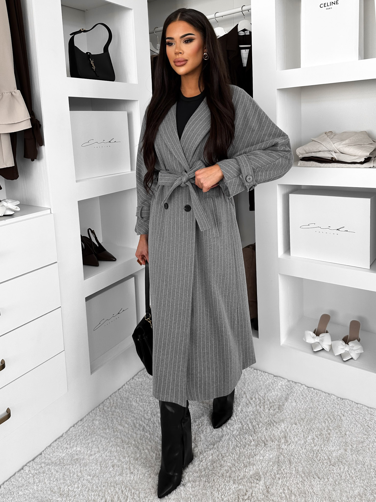Světle šedý dlouhý pruhovaný kabát SEPPY Velikost: ONESIZE