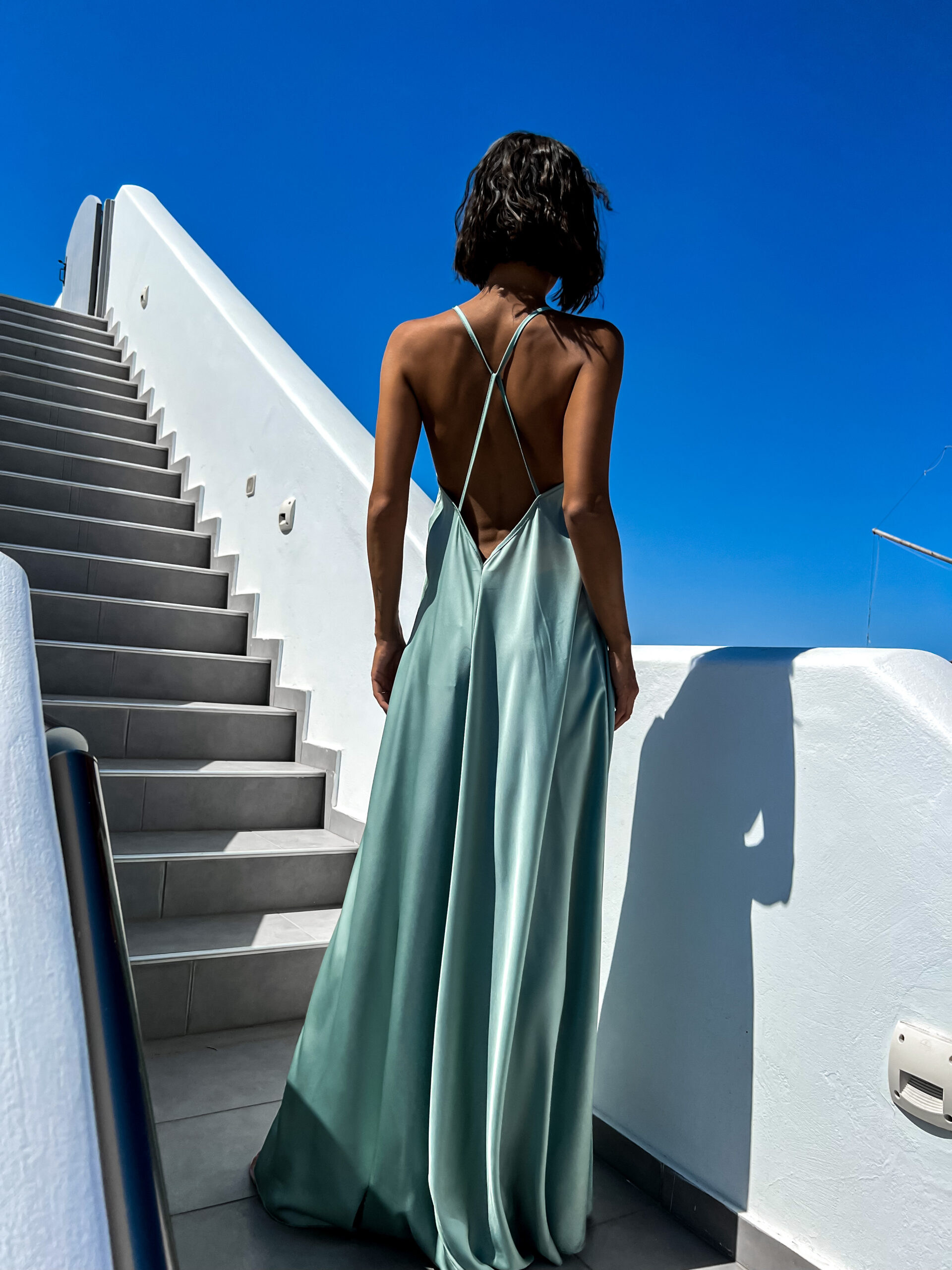 Světle tyrkysové dlouhé lesklé šaty HAYLEY