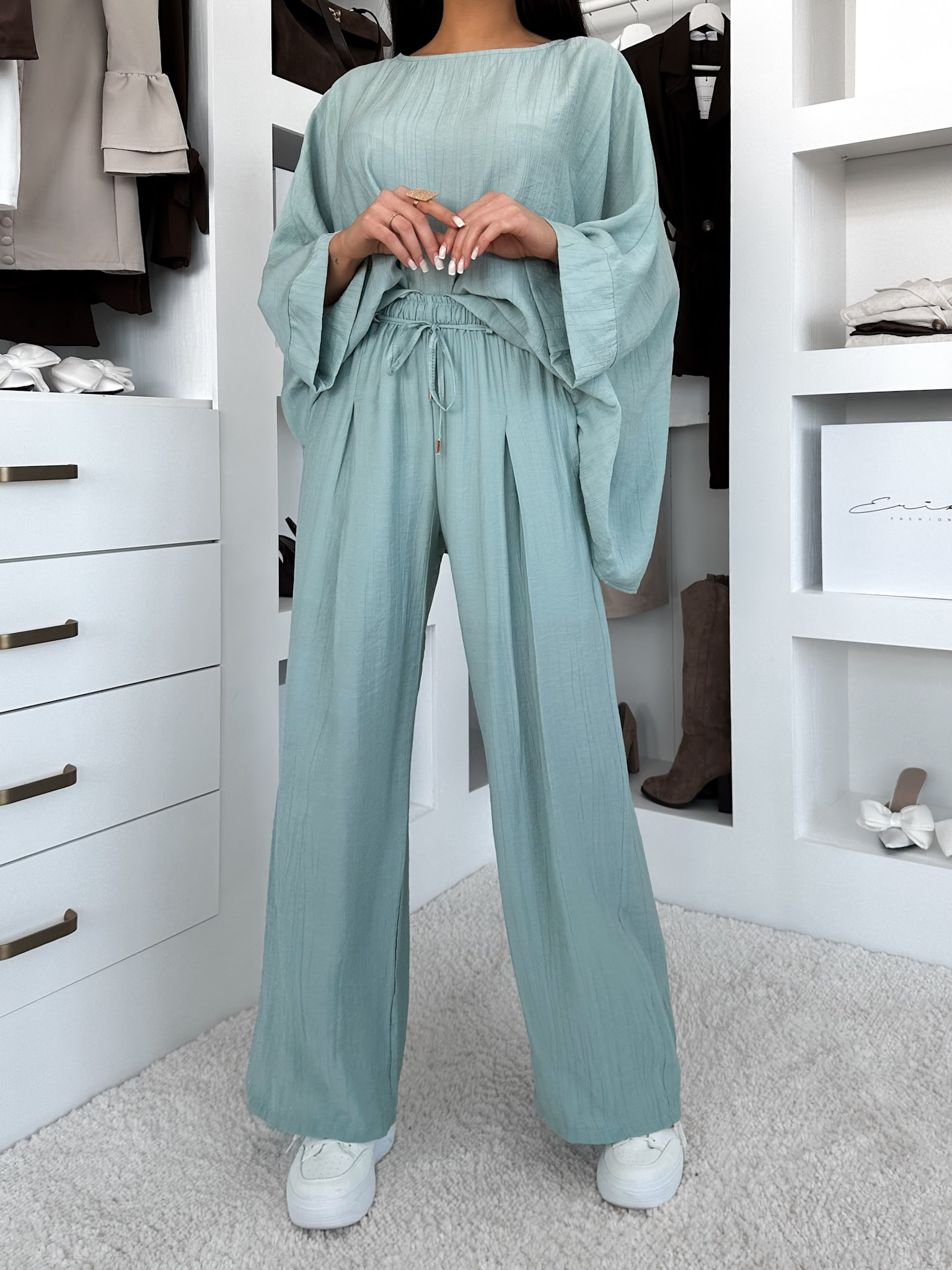 Světle tyrkysové lehké kalhoty LARYS Velikost: ONESIZE
