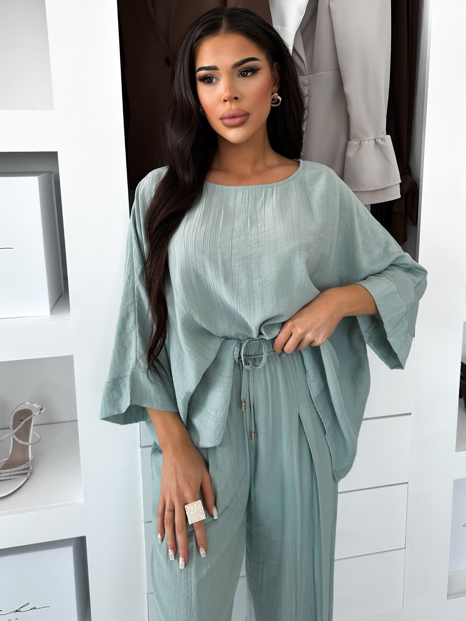Světle tyrkysové oversize triko LYONNEL s dlouhým rukávem Velikost: ONESIZE